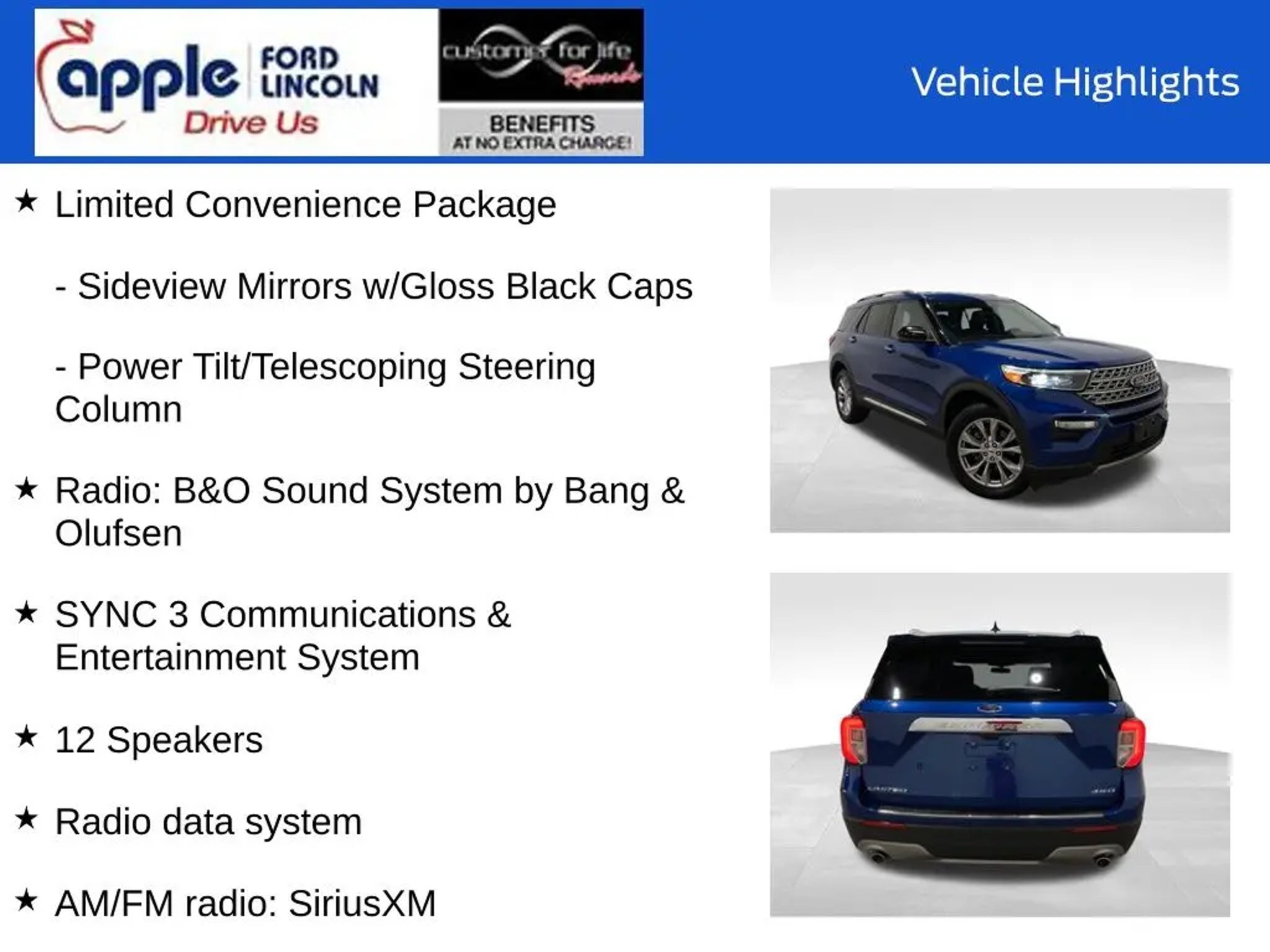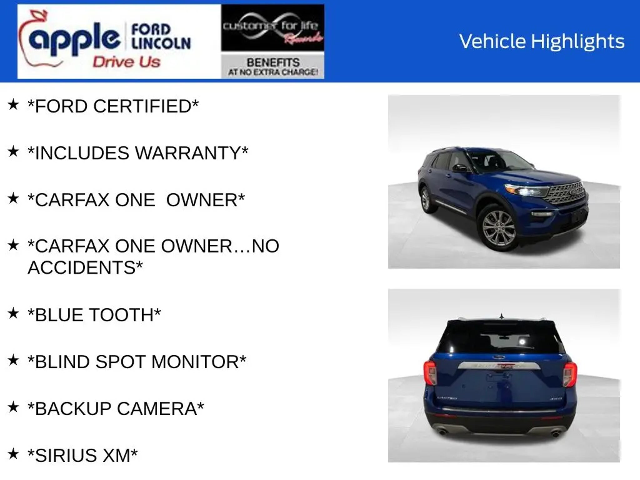 Recent Arrival! *FORD CERTIFIED*, *INCLUDES WARRANTY*, *CARFAX ONE OWNER*, *CARFAX ONE OWNER...NO ACCIDENTS*, *BLUE TOOTH*, *BLIND SPOT MONITOR*, *BACKUP CAMERA*, *SIRIUS XM*, *ALUMINUM ALLOY WHEELS*, *LEATHER*, *HEATED SEATS*, *CRUISE CONTROL*, *PREMIUM WHEELS*, *STEERING WHEEL CONTROLS*, *APPLE CARPLAY/ANDROID AUTO*, *SATELLITE RADIO*, *SUNROOF/MOONROOF*, *NAVIGATION/NAV/GPS*, 12 Speakers, 20 Premium Painted Aluminum Wheels, Alloy wheels, AM/FM radio: SiriusXM, Equipment Group 301A, FordPass Connect, Limited Convenience Package, Radio data system, Radio: B&O Sound System by Bang & Olufsen, SYNC 3 Communications & Entertainment System, Voice-Activated Touchscreen Navigation System. 20/27 City/Highway MPG Ford Blue Certified Details: * and 11,000 FordPass Rewards Points to use toward first maintenance visit * Limited Warranty: 3 Month/4,000 Mile (whichever comes first) after new car warranty expires or from certified purchase date * Warranty Deductible: $100 * Transferable Warranty * 139 Point Inspection * Vehicle History * Roadside Assistance When you purchase a vehicle, we will provide you the following benefits, simply for choosing us... Engine Warranty For Life. Car Washes For Life. Oil Changes For Life. Safety Inspections For Life. Tire Rotations For Life. Customer for Life Program has stipulations, excludes certain vehicles, uses and equipment. See dealer for details. Advertised Price does not include tax, tags, $800 processing fee (Not required by law). Vehicle subject to prior sale. See dealer for complete price details.Certain vehicles may fall under a manufacturer safety recall that based on conditions outside of the dealer's control may not be repaired prior to sale. Please check open recalls using http://www.safercar.gov/