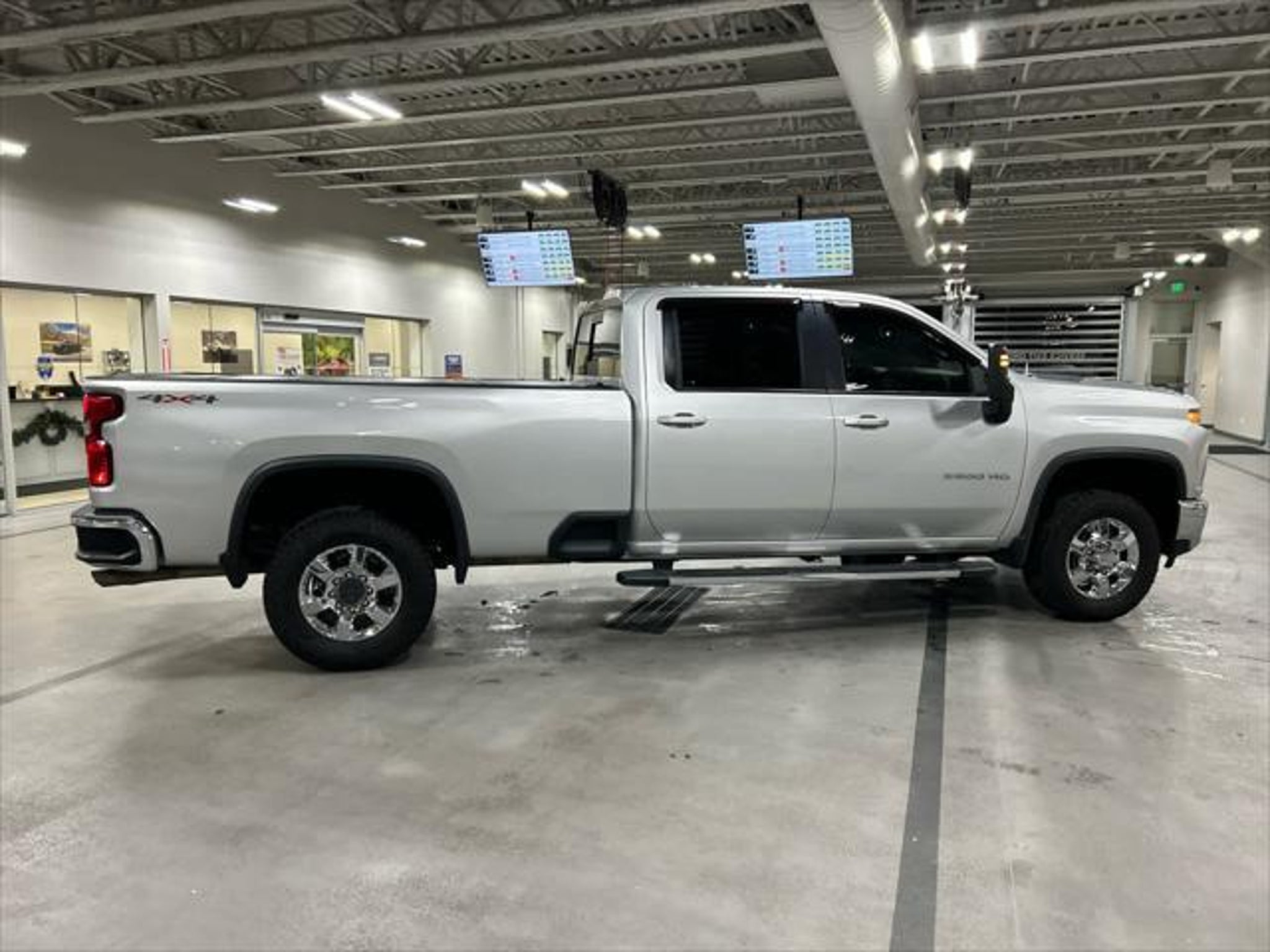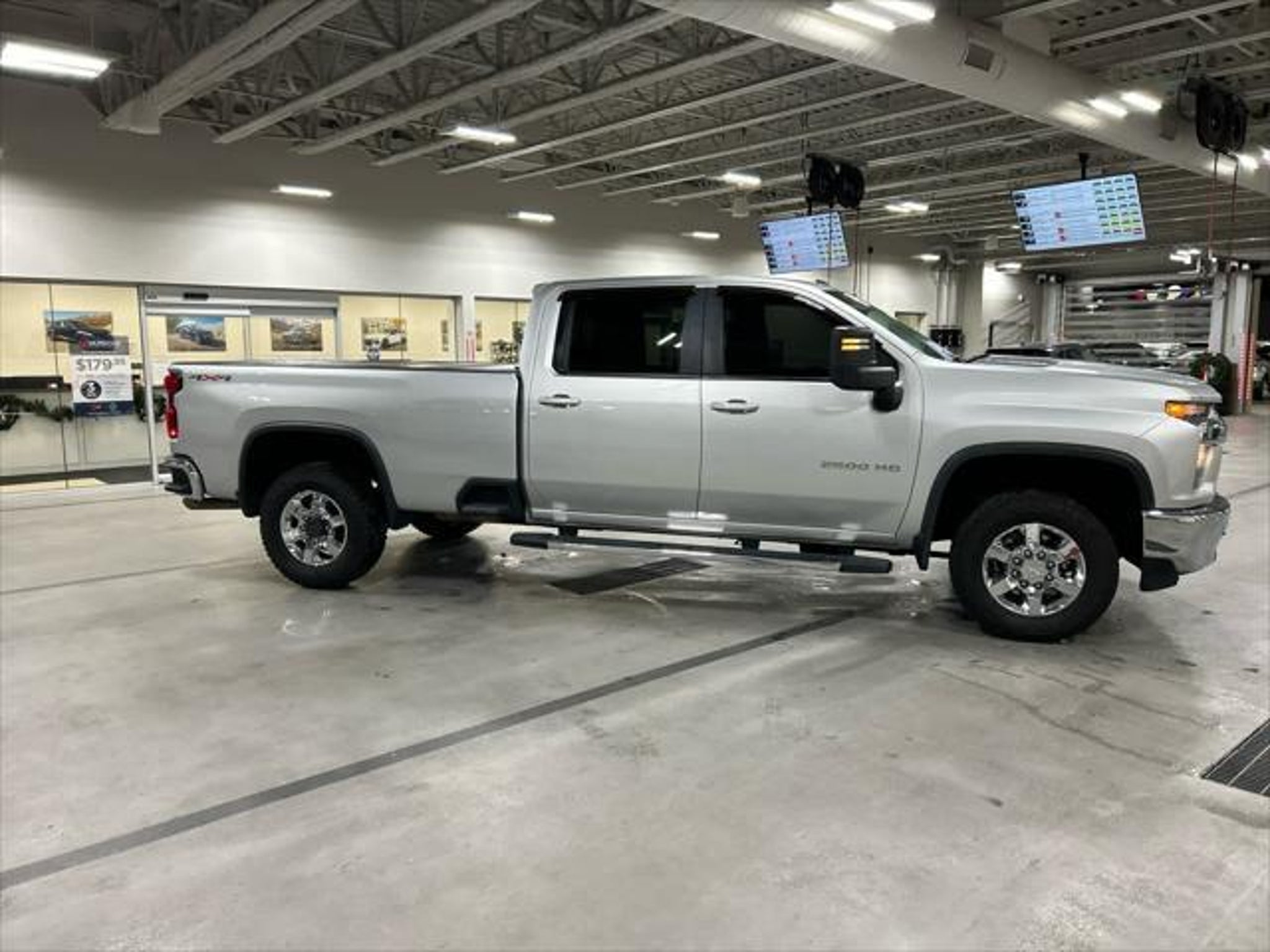 Excellent Condition. SEAT, UP-LEVEL REAR WITH STORAGE PACK... WiFi Hotspot, Onboard Communications System, Cooled Driver Seat, 4x4, Alloy Wheels, Tow Hitch, LPO, HITCH PACKAGE, CONVENIENCE PACKAGE, CONVENIENCE PACKAGE II. KEY FEATURES INCLUDE 4x4, Cooled Driver Seat, Onboard Communications System, Aluminum Wheels, WiFi Hotspot Privacy Glass, Steering Wheel Controls, Electronic Stability Control, 4-Wheel ABS. Non-Smoker vehicle, Clean Title, One Owner, Non-Smoker, Clean Title, Excellent condition, LONG BED! Chevrolet LT with Silver Ice Metallic exterior and Jet Black interior features a 8 Cylinder Engine with 401 HP at 5200 RPM*. OPTION PACKAGES CONVENIENCE PACKAGE includes (CJ2) dual-zone automatic climate control, (A2X) 10-way power driver seat including power lumbar, (KA1) heated driver and passenger seats, (KI3) heated steering wheel, (N37) manual tilt/telescoping steering column, (C49) rear-window defogger, (AVJ) Keyless Open and Start, (NP5) leather-wrapped steering wheel, (N06) steering column lock, (BTV) Remote Start, (UTJ) content theft alarm, (UF2) bed LED cargo area lighting, (T3U) LED fog lamps, (B1J) rear wheelhouse liners, (AZ3) front 40/20/40 split-bench with under-seat storage, (KPA) auxiliary power outlet and (USS) 2 charge-only USB ports for second row (Vehicles built prior to 11-15-2021 and on or after 2-21-2022 through 3-13-2022 and after 4-24-2022 include heated driver and front outboard passenger seats. CONVENIENCE PACKAGE II includes (KI4) 120-volt power outlet, (KC9) 120-volt bed-mounted power outlet, (IOS) Chevrolet Infotainment System with 8 diagonal color touch-screen with (MCR) USB ports, SiriusXM with 360L, (UVB) HD Rear Vision Camera, (PZ8) Hitch Guidance with Hitch View, (U1D) Advanced Trailering System, (A48) rear sliding power window and (UG1) Universal Home Remote Crew Cab models include (R7O) Cloth Rear Seat with Storage Package. SAFETY PACKAGE includes (UD5) Front and Rear Park Assist, (UKC) Lane Change Alert with Side Blind Zone Alert and (UFG) Rear Cross Traffic Alert Vehicles built prior to 12-20-2021 include Front and Rear Park Assist. Certain vehicles built on or after 12-20-2021, will be forced to include (00Z) Not Equipped with Front and Rear Park Assist, which removes Front and Rear Park Assist. See dealer for details or the window label for the features on a specific vehicle.), ASSIST STEPS, CHROMED TUBULAR, 6 RECTANGULAR (factory installed), SEATS, FRONT BUCKET with center console, for Crew Cab and Double Cab models, MIRRORS, OUTSIDE POWER-ADJUSTABLE VERTICAL TRAILERING WITH HEATED AND AUTO-DIMMING UPPER GLASS lower convex mirrors, turn signal indicators, puddle lamps, perimeter lighting, auxiliary lighting, power folding/manual extending (extends 3.31 [84.25mm]) Includes (DD8) auto-dimming rearview mirror. LPO, HITCH PACKAGE Gooseneck ball and chain tiedown kit with case, (dealer-installed), AUDIO SYSTEM, CHEVROLET INFOTAINMENT 3 PLUS SYSTEM 8 diagonal HD color touchscreen, AM/FM stereo, Bluetooth® audio streaming for 2 active devices, wireless Apple CarPlay® and Android Auto® capable, voice recognition, in-vehicle apps, cloud connected personalization for select infotainment and vehicle settings. Subscription required for enhanced and connected services after trial period. Includes (PZ8) Hitch Guidance with Hitch View.), ENGINE, 6.6L V8 with Direct Injection and Variable Valve Timing, gasoline, (401 hp [299 kW] @ 5200 rpm, 464 lb-ft of torque [629 N-m] @ 4000 rpm) (STD), TRANSMISSION, 6-SPEED AUTOMATIC, HEAVY-DUTY (STD), SEAT, UP-LEVEL REAR WITH STORAGE PACKAGE 60/40 folding bench for Crew Cab models, includes full-length bench seat, seatback storage on left and right side, center fold out armrest with 2 cupholders, full cab width under-seat storage, (includes child seat top tether anchor). Pricing analysis performed on 12/24/2025. Horsepower calculations based on trim engine configuration. Please confirm the accuracy of the included equipment by calling us prior to purchase.