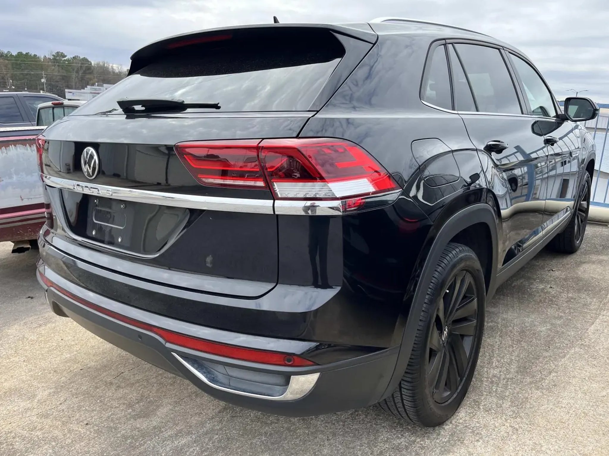 Really good-looking Sporty fun to drive SUV with all kinds of curb appeal. Sporty black wheels really make this black on black unit pop. Great miles for the year. Hits the road great. This package gives the Atlas all kinds of head turning looks. Perfect Carfax history with 8 service records. Really good value in a full size SUV. Whole lot of car for the money.