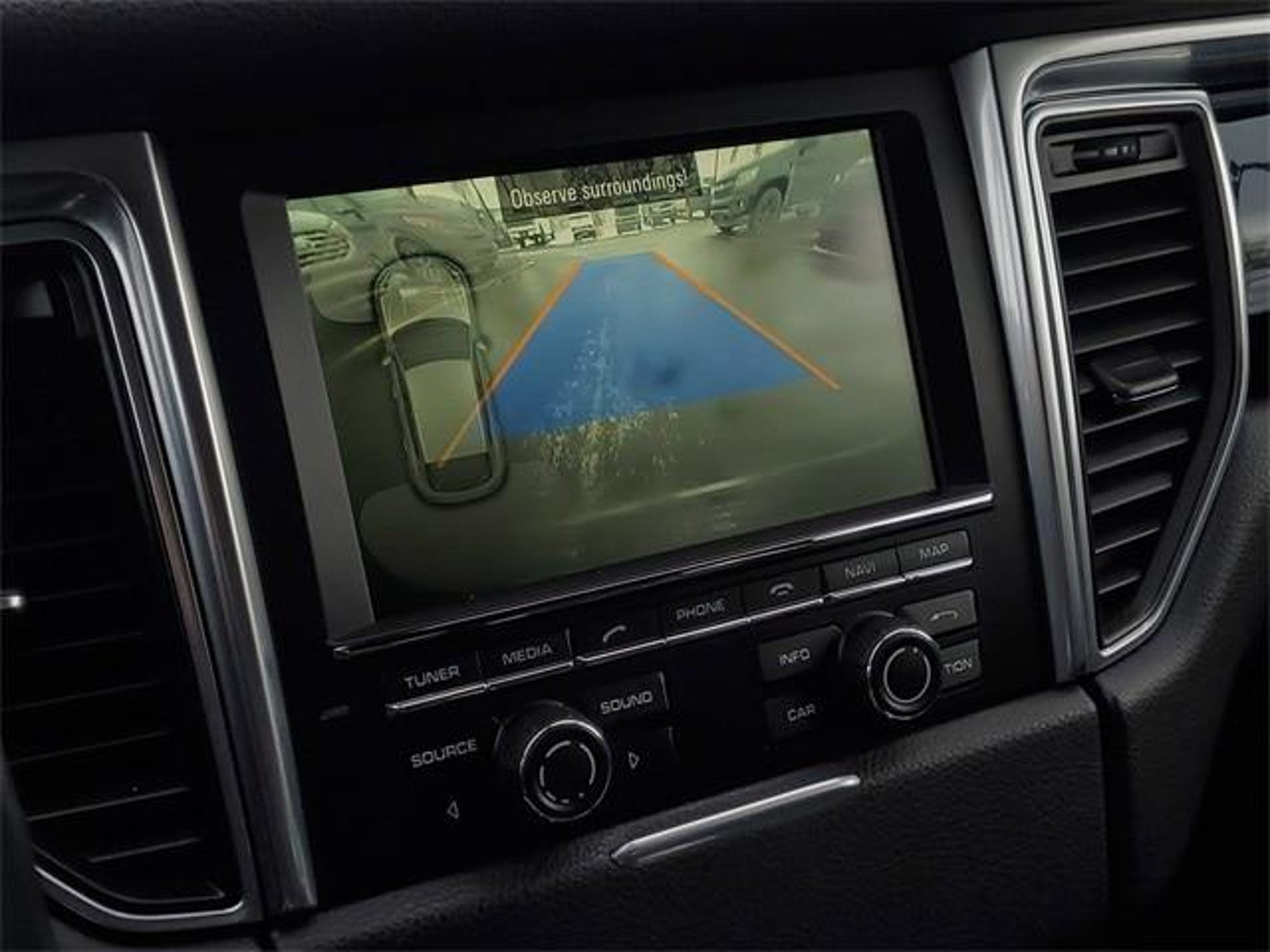 11 Speakers, 4-Wheel Disc Brakes, 4.13 Axle Ratio, 8-Way Power Front Bucket Seats w/Memory, ABS brakes, Air Conditioning, Alcantara/Leather Seat Trim, Alloy wheels, AM/FM radio, Automatic temperature control, Brake assist, Bumpers: body-color, CD player, Delay-off headlights, Driver door bin, Driver vanity mirror, Dual front impact airbags, Dual front side impact airbags, DVD-Audio, Electronic Stability Control, Four wheel independent suspension, Front anti-roll bar, Front Bucket Seats, Front Center Armrest, Front dual zone A/C, Front fog lights, Front reading lights, Fully automatic headlights, Garage door transmitter: HomeLink, Headlight cleaning, Heated door mirrors, High intensity discharge headlights: Bi-Xenon, Illuminated entry, Leather Shift Knob, Low tire pressure warning, Memory seat, Occupant sensing airbag, Outside temperature display, Overhead airbag, Overhead console, Panic alarm, Passenger door bin, Passenger vanity mirror, Power door mirrors, Power driver seat, Power Liftgate, Power passenger seat, Power steering, Power windows, Radio data system, Radio: CDR-Plus Audio System w/MP3/Single CD/DVD, Rain sensing wipers, Rear anti-roll bar, Rear reading lights, Rear seat center armrest, Rear side impact airbag, Rear window defroster, Rear window wiper, Remote keyless entry, Security system, Speed control, Speed-sensing steering, Split folding rear seat, Spoiler, Sport steering wheel, Steering wheel mounted audio controls, Tachometer, Telescoping steering wheel, Tilt steering wheel, Traction control, Trip computer, Variably intermittent wipers, Wheels: 19 Macan Design.