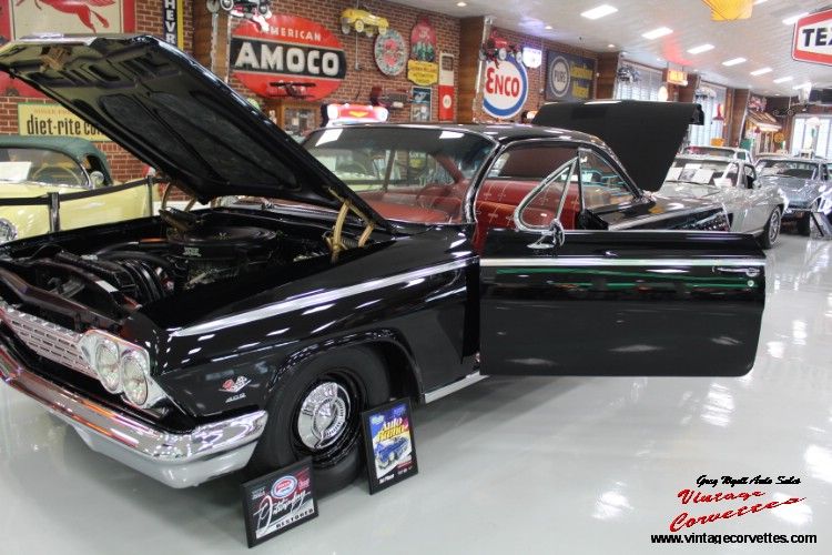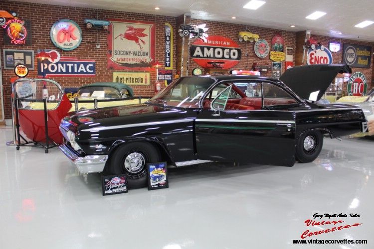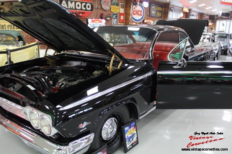 1962 Chevrolet BelAir 2 Door Bubble Top. Tuxedo Black, Red Cloth Bench Seat Interior, All Correct Numbers 409ci/409hp V8, Dual Carbs, 4 Speed, Posi Rear, Complete No Expense spared Frame off restored car to Super Show condition, Some brake upgrades done, 2024 ISCA show car award Restored class, 2024 Auto Rama, Tx 1st Place show Winner! One of the Best '62 BelAir Bubble Top offered for sale today. Trades Considered. www.vintagecorvettes.com or call 706 506-5745 or 706 857-3916.
