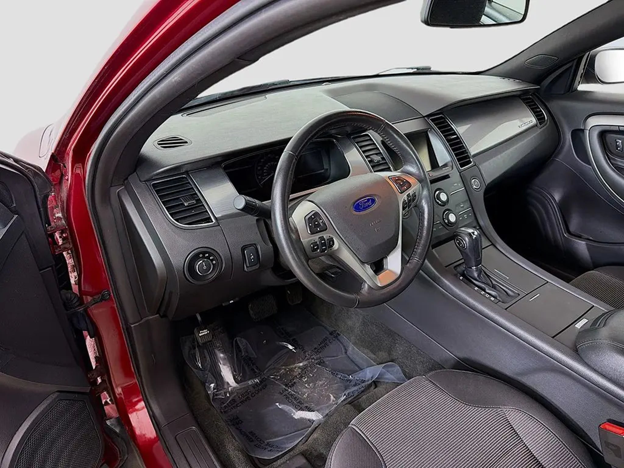 Recent Arrival! Odometer is 22397 miles below market average! Ruby Red Metallic Tinted Clearcoat 2015 Ford Taurus SEL 4D Sedan 3.5L 6-Cylinder SMPI Flex Fuel DOHC FWD Additional IP Center Channel Speaker, Automatic temperature control, Delay-off headlights, Equipment Group 201A, Exterior Parking Camera Rear, Front dual zone A/C, Fully automatic headlights, Intelligent Access w/Push Button Start, Non-Memory Power Adjustable Pedals, Power driver seat, Power passenger seat, Rear Parking Sensors, SYNC w/MyFord Touch & SYNC Services, Wheels: 20 Machined Finish, 4-Wheel Disc Brakes, 6 Speakers, ABS brakes, Air Conditioning, Alloy wheels, AM/FM radio: SiriusXM, AM/FM Stereo/Single CD/MP3 Capable, Auto-dimming Rear-View mirror, Brake assist, Bumpers: body-color, CD player, Compass, Driver door bin, Driver vanity mirror, Dual front impact airbags, Dual front side impact airbags, Electronic Stability Control, Four wheel independent suspension, Front anti-roll bar, Front Bucket Seats, Front Center Armrest, Front License Plate Bracket, Front reading lights, Heated door mirrors, Illuminated entry, Low tire pressure warning, Occupant sensing airbag, Outside temperature display, Overhead airbag, Overhead console, Panic alarm, Passenger door bin, Passenger vanity mirror, Power door mirrors, Power steering, Power windows, Radio data system, Rear anti-roll bar, Rear reading lights, Rear seat center armrest, Rear window defroster, Remote keyless entry, Security system, Speed control, Speed-sensing steering, Speed-Sensitive Wipers, Split folding rear seat, Steering wheel mounted audio controls, SYNC w/MyFord, Tachometer, Telescoping steering wheel, Tilt steering wheel, Traction control, Trip computer, Unique Cloth Bucket Seats, Variably intermittent wipers, Remote start, Keyless start, Bluetooth, Additional IP Center Channel Speaker, Automatic temperature control, Delay-off headlights, Equipment Group 201A, Exterior Parking Camera Rear, Front dual zone A/C, Fully automatic headlights, Intelligent Access w/Push Button Start, Non-Memory Power Adjustable Pedals, Power driver seat, Power passenger seat, Rear Parking Sensors, SYNC w/MyFord Touch & SYNC Services, Wheels: 20 Machined Finish.