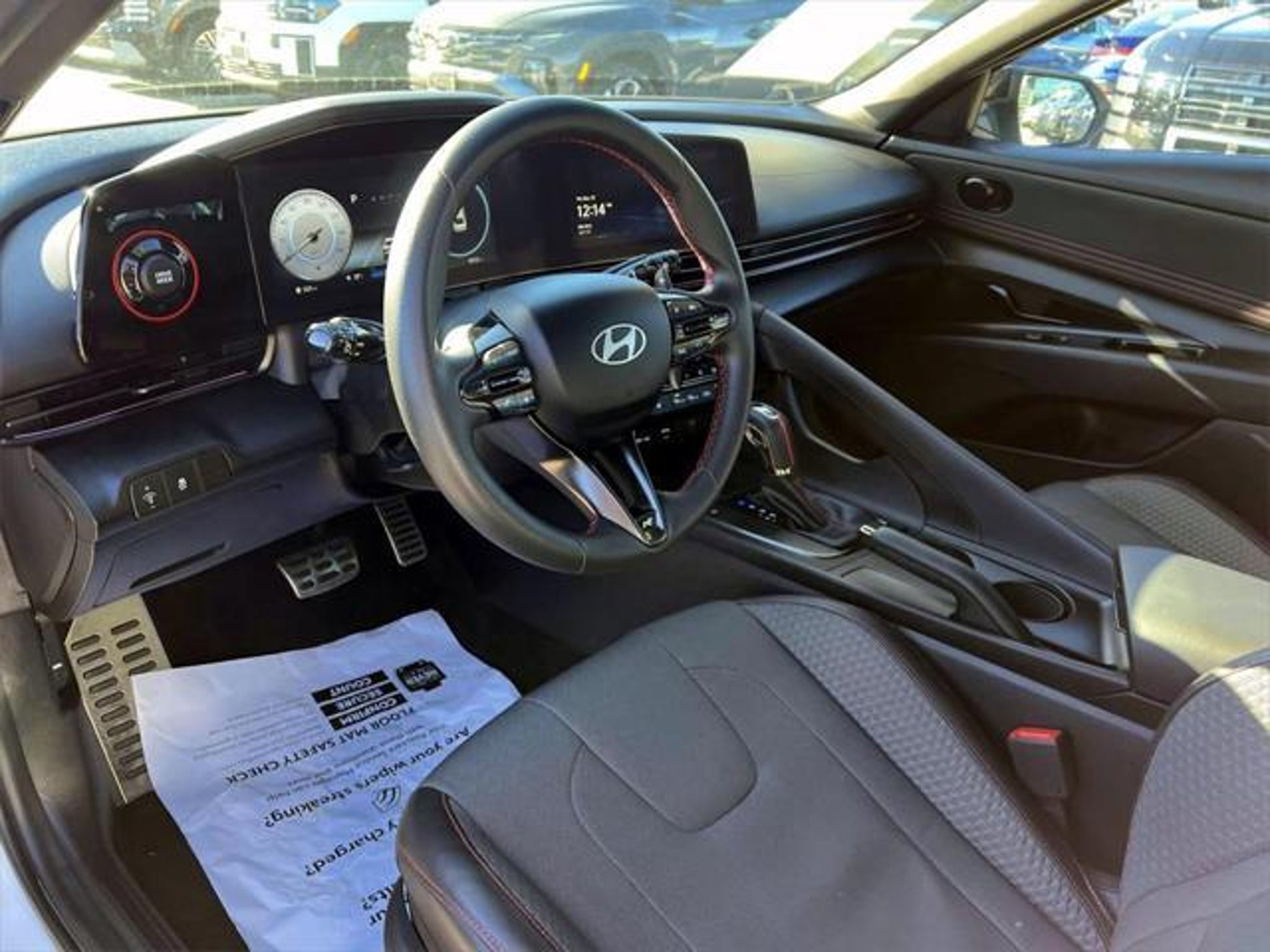 ONE OWNER, 16-way Pwr Driver Seat w/Pwr Lumbar Support; Heated Front Seats, 18 x 7.5J Alloy Wheels, 4-Wheel Disc Brakes, 8 Speakers, 8-Way Driver seat with Height Adjustment; Heated Front Seats, ABS brakes, Air Conditioning, AM/FM radio: SiriusXM, Apple CarPlay & Android Auto, Auto High-beam Headlights, Automatic temperature control, Bumpers: body-color, Carpeted Floor Mats, Combination Cloth & Leatherette Seating Surfaces, Cruise Control, Delay-off headlights,Auto-Leveling Headlights,Dynamic Bending Light (DBL), Driver door bin, Driver vanity mirror, Dual front impact airbags, Dual front side impact airbags, Emergency communication system: Bluelink, Exterior Parking Camera Rear, Forward Collision Avoidance Assist, Four wheel independent suspension, Front anti-roll bar, Front dual zone A/C, Front reading lights, Fully automatic headlights, Heated Side Mirrors, Illuminated entry, Lane Keeping Assist & Driver Attention Warning, Leather-Wrapped Steering Wheel and Shift Knob, Low tire pressure warning, Navigation System With 8' display, Occupant sensing airbag, Outside temperature display, Overhead airbag, Overhead console, Panic alarm, Passenger vanity mirror, Power door mirrors, Power moonroof, Power steering, Power windows, Proximity Key with Push Button Start; Immobilizer, Radio: AM/FM/HD/SiriusXM Display Audio, Rear anti-roll bar, Rear seat center armrest, Rear side impact airbag, Rear window defroster, Remote keyless entry, Reversible Cargo Tray, Security system, Speed-sensing steering, Spoiler, Sport steering wheel, Steering wheel mounted audio controls, Tachometer, Telescoping steering wheel, Tilt steering wheel, Traction control, Trip computer, Turn signal indicator mirrors, Variably intermittent wipers. Certified. FWD 7-Speed Dual Clutch DCT I4 Odometer is 1212 miles below market average! 28/35 City/Highway MPG Atlas White 2025 Hyundai Elantra N Line Hyundai Certified Used Vehicles Details: * Vehicle History * Warranty Deductible: $50 * Limited Warranty: 60 Month/60,000 Mile (whichever comes first) from original in-service date * Powertrain Limited Warranty: 120 Month/100,000 Mile (whichever comes first) from original in-service date * Roadside Assistance * 173 Point Inspection * Includes 10-year/Unlimited Mileage Roadside Assistance with Rental Car and Trip Interruption Reimbursement; Please See Dealers for Specific Vehicle Eligibility Requirements. 10-Year/100,000 Mile Hybrid/EV Battery Warranty. 3-Months SiriusXM Trial Subscription. Complimentary 1 Year (Connected Care & Remote Pkgs). Subject to the primary lender's approval. All prices exclude tax, title, dealer fee of $695, tags, license & DMV. Vehicles are sold cosmetically as is. Not all cars are certified where as many do pass the certification process, the customer does have the right to add an optional extended service agreement.