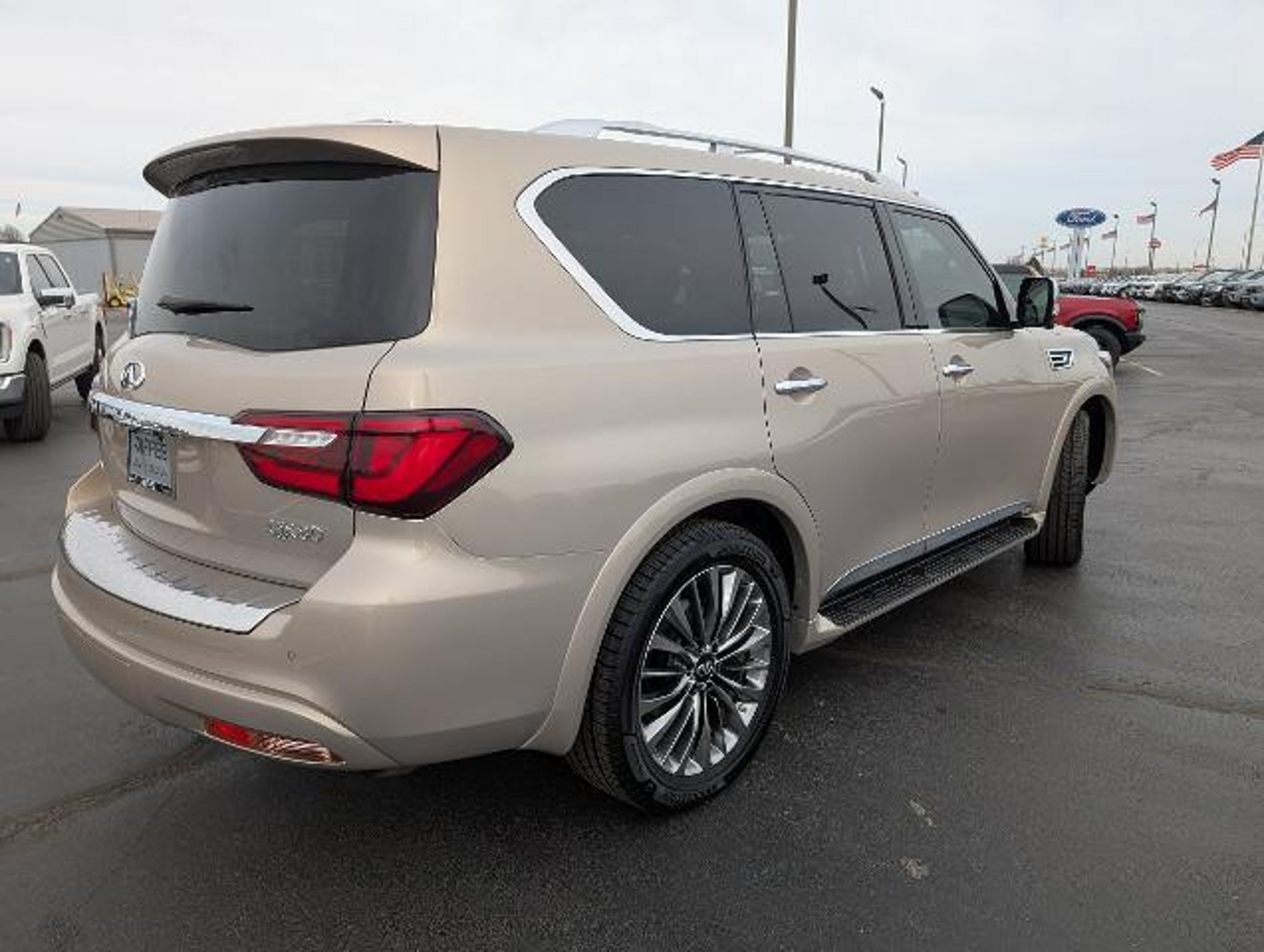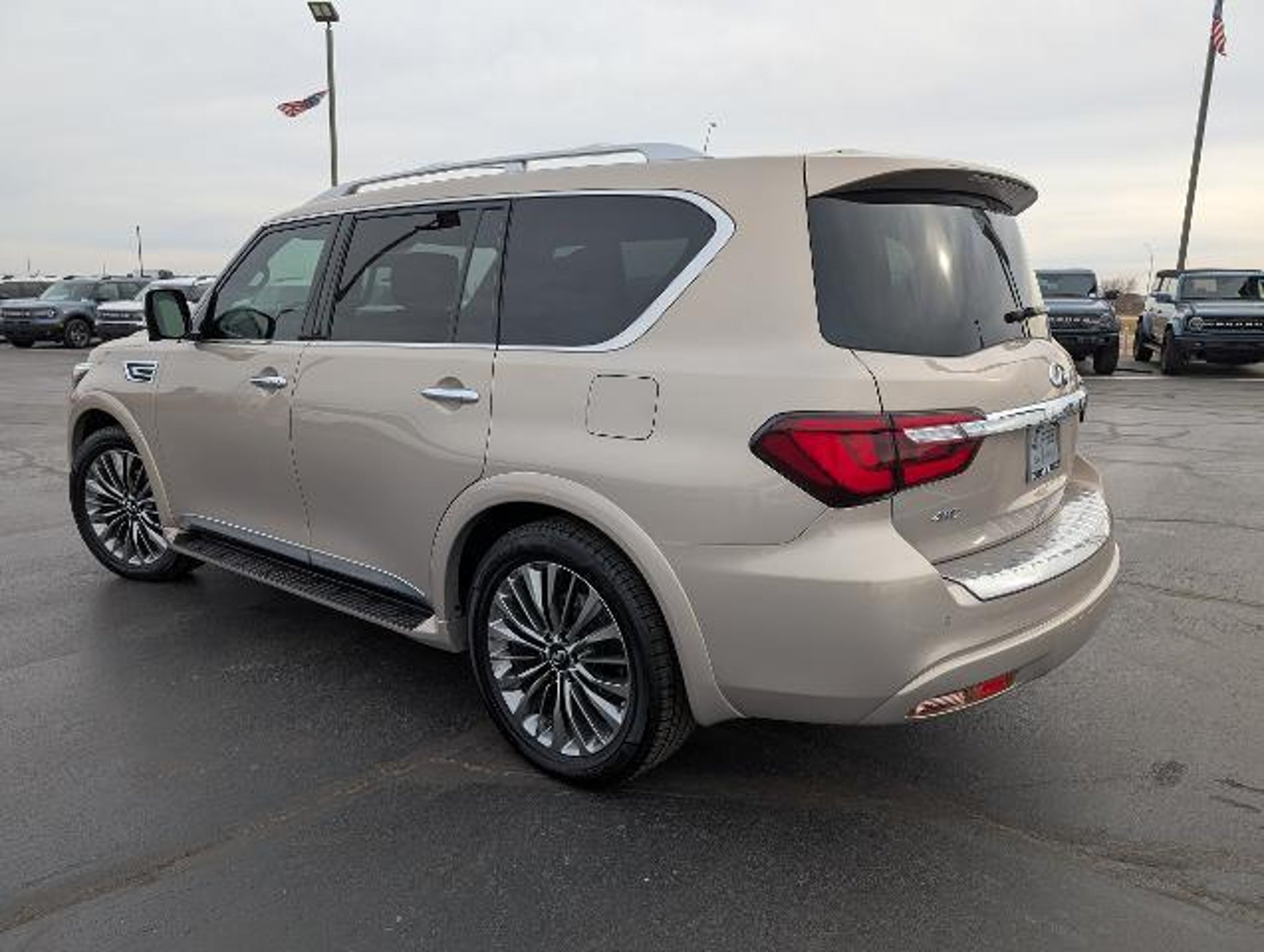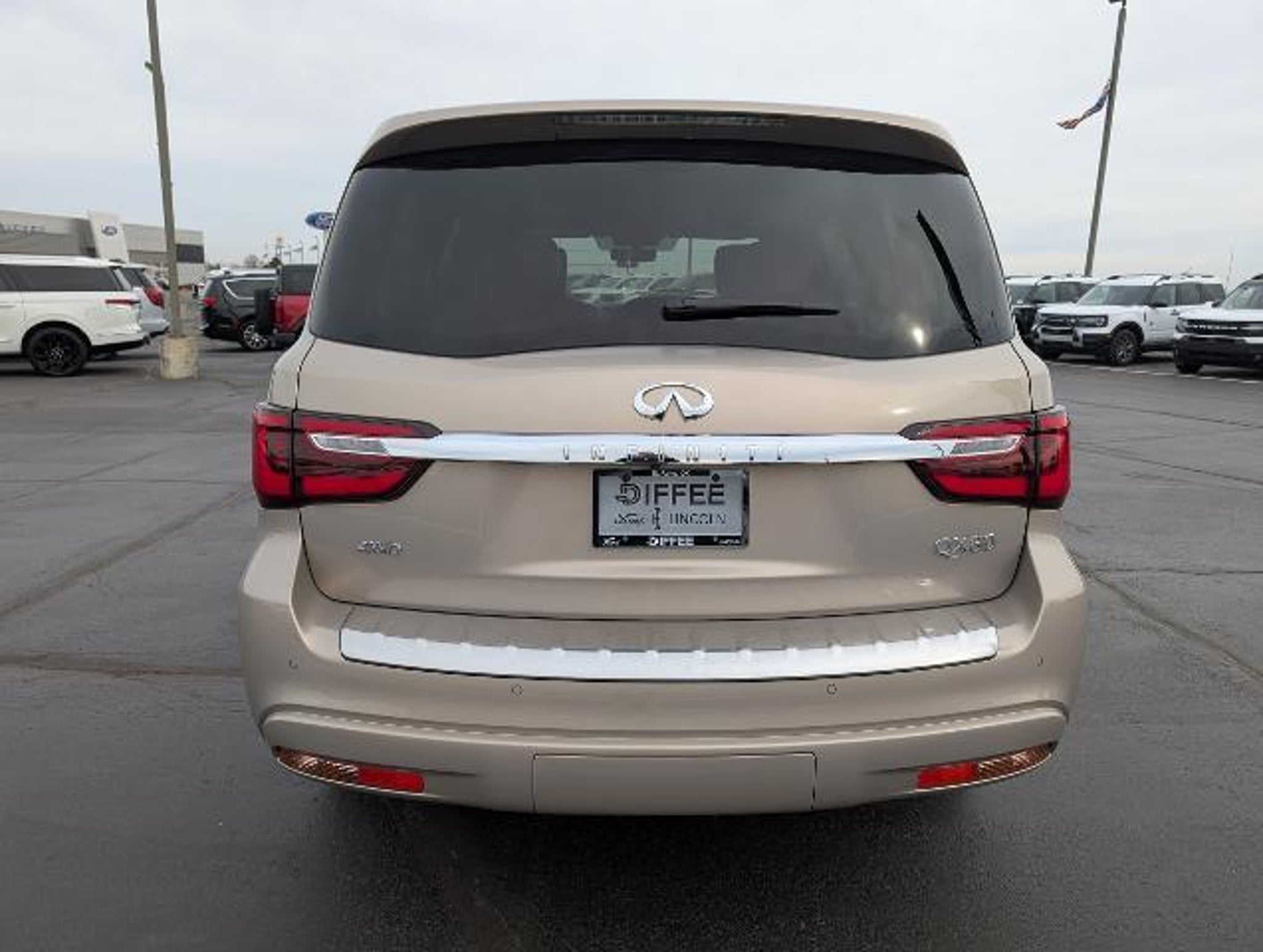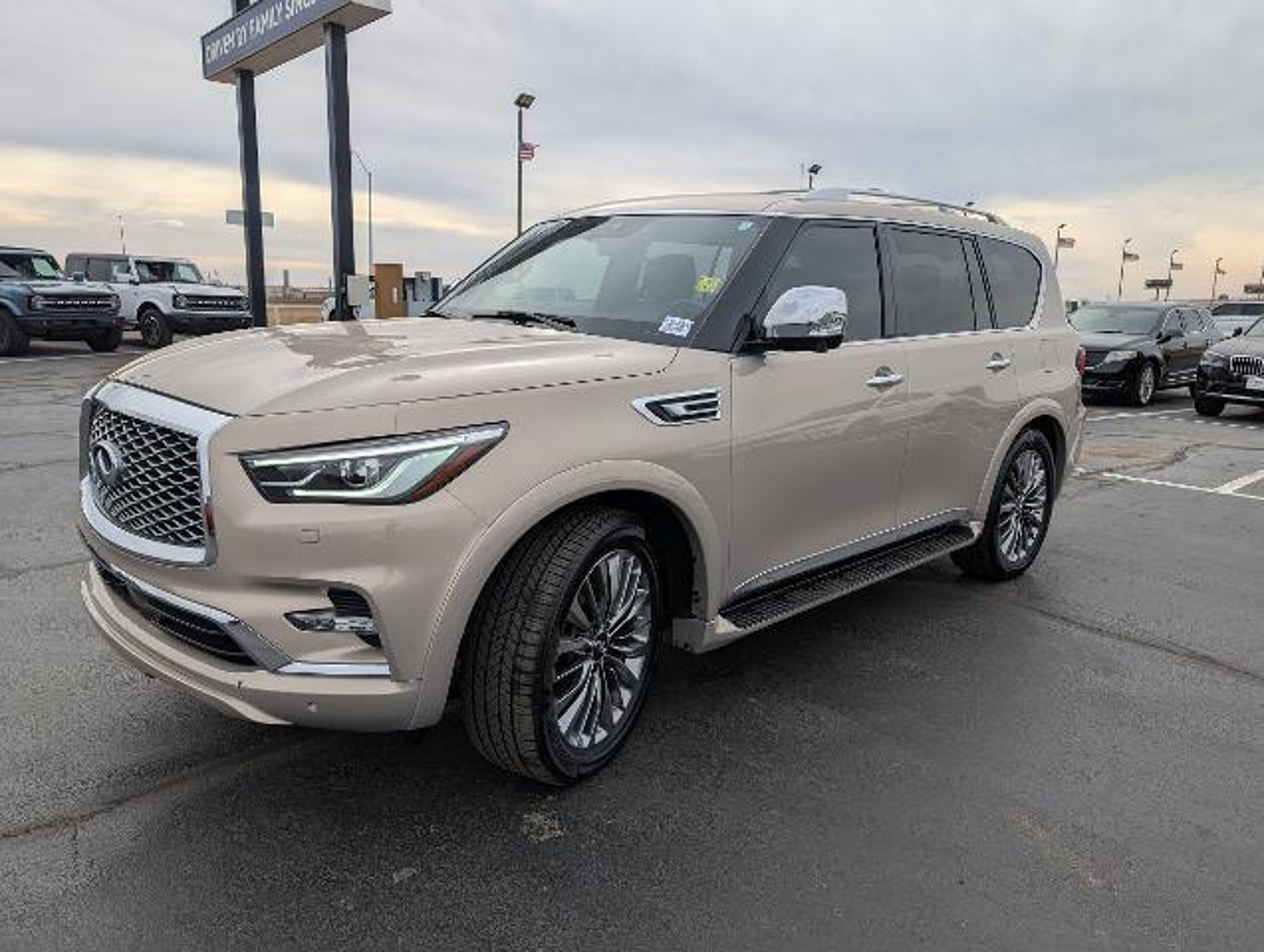 Details > 2021 Infiniti QX80 AWD Sensory 4DR SUV For Sale in El Reno, OK Private Party Sellers Click here to place your ad now! You auta tell them you saw the ad in AutaBuy when you call or email. 1/16 2/16 3/16 4/16 5/16 6/16 7/16 8/16 9/16 10/16 11/16 12/16 13/16 14/16 15/16 16/16 View 16 Photos View All Add to My Garage Parked in Your Garage! Diffee Ford Contact Seller: I would like to: Make Offer Check Availability Ask A Question Request More Photos Check Financing Options Send a copy of this message to me Add this listing to my garage Send to Mobile Mileage 97,612 Exterior Color Champagne Interior Color Saddle Brown Doors 4 Engine 5.6L V8 Transmission 7 Speed Auto Stock # L25430A VIN JN8AZ2BE2M9267712 Estimated Monthly Payment $578 mo Apply Now J.J. Best Banc & Co. 2021 Infiniti QX80 AWD Sensory 4DR SUV Description: · Mileage: 97,612 · Color: Champagne Price: $33,200. Mileage 97,612 Exterior Color Champagne Interior Color Saddle Brown Doors 4 Engine 5.6L V8 Transmission 7 Speed Auto Stock # L25430A VIN JN8AZ2BE2M9267712 Estimated Monthly Payment $578 mo Apply Now J.J. Best Banc & Co. Add to My Garage Parked in Your Garage! Message Seller Diffee Ford Contact Seller: I would like to: Make Offer Check Availability Ask A Question Request More Photos Check Financing Options Send a copy of this message to me Add this listing to my garage Offered for sale by Diffee Ford EL RENO, OK Price: $33,200. Offered for sale by Diffee Ford EL RENO, OK [entire inventory] Ask Auta Intelligence The first collector-car AI built directly into a classic car marketplace What factory options were available on this model? How many of these were produced? How many QX80s were produced in Champagne? What kind of mileage do these get? What engine options did these come with? What trim levels were available for this model? Can you show me more suvs for a similar price? When was this model first introduced? What colors did these come in? What transmission options did these offer? How many passengers can this seat comfortably? How easy are parts to find for this model? Where is this located? What does this VIN number tell me? What safety features does this model offer? How far is this from me? Tell me more about this model Do you have a similar car to sell? List It Now! Questions about this car? Ask Auta Intelligence for production numbers, available options, etc. · Subscribe to AutaBuy! · Send a Gift Subscription Notice to a Friend