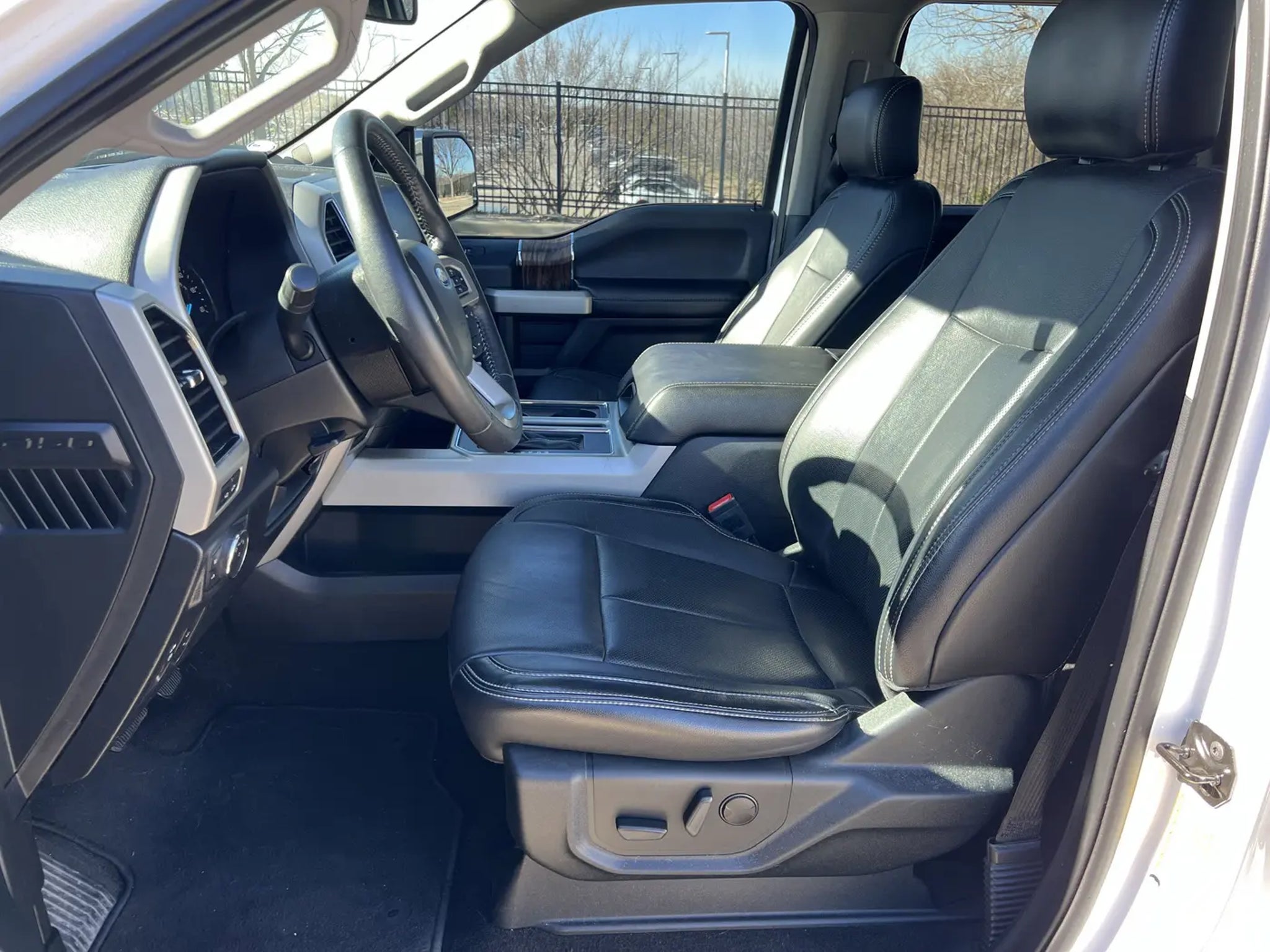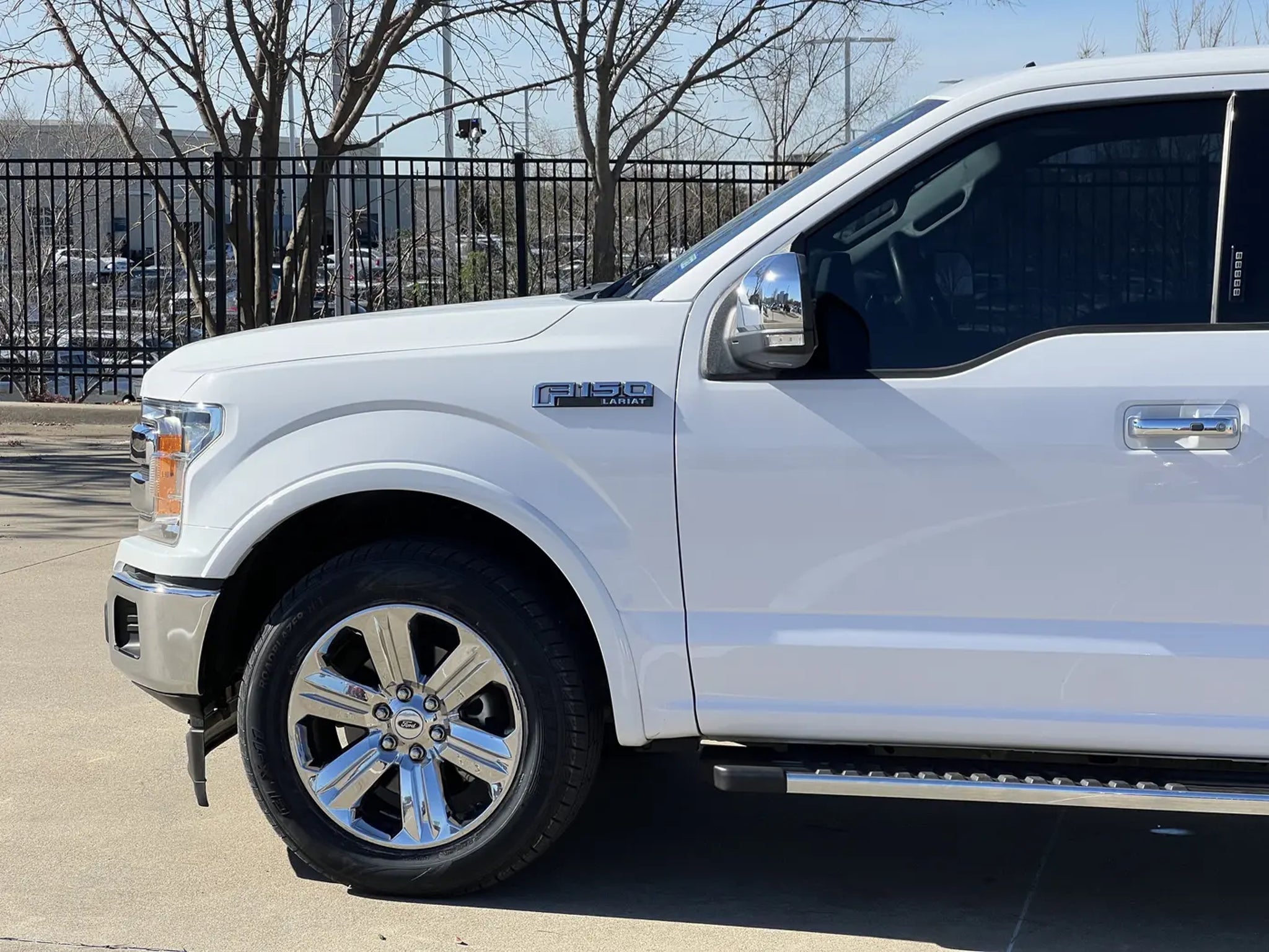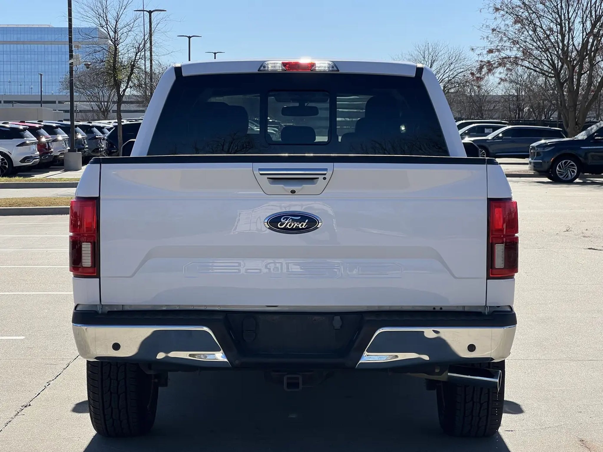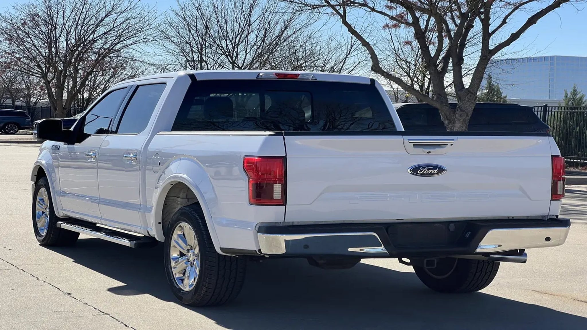 RECALL NOTICE: Some vehicles offered for sale may be subject to unrepaired manufacturer safety recalls. To determine the recall status of a vehicle, visit https:// One-Owner. Clean CARFAX. Oxford White 2019 Ford F-150 Lariat RWD 10-Speed Automatic 5.0L V8 F-150 Lariat, 4D SuperCrew, 5.0L V8, 10-Speed Automatic, RWD, Oxford White, Black Leather, 110V/400W Outlet, 18 Machined-Aluminum Wheels, 7 Speakers, ABS brakes, Adjustable pedals, Air Conditioning, Alloy wheels, AM/FM radio: SiriusXM, AppLink/Apple CarPlay and Android Auto, Auto High-beam Headlights, Auto-dimming door mirrors, Auto-dimming Rear-View mirror, Automatic temperature control, BLIS Blind Spot Information System, Brake assist, Bumpers: chrome, Chrome 2-Bar Grille w/4 Minor Bars, Chrome Angular Step Bars, Chrome Door & Tailgate Handles w/Body-Color Bezel, Chrome Skull Caps on Exterior Mirrors, Class IV Trailer Hitch Receiver, Compass, Delay-off headlights, Driver door bin, Driver vanity mirror, Dual front impact airbags, Dual front side impact airbags, Electronic Stability Control, Emergency communication system: SYNC 3 911 Assist, Engine Oil Cooler, Equipment Group 501A Mid, Extended Range 36 Gallon Fuel Tank, Exterior Parking Camera Rear, Front anti-roll bar, Front Center Armrest w/Storage, Front dual zone A/C, Front fog lights, Front License Plate Bracket, Front reading lights, Front wheel independent suspension, Fully automatic headlights, Heated door mirrors, Heated front seats, Illuminated entry, Lariat Chrome Appearance Package, Leather-Trimmed 40/20/40 Front Seat, LED Sideview Mirror Spotlights, Low tire pressure warning, Memory seat, Occupant sensing airbag, Outside temperature display, Overhead airbag, Overhead console, Panic alarm, Passenger door bin, Passenger vanity mirror, Pedal memory, Power door mirrors, Power driver seat, Power Glass Sideview Mirr w/Body-Color Skull Caps, Power passenger seat, Power steering, Power windows, Pro Trailer Backup Assist, Radio data system, Radio: AM/FM Stereo w/6 Speakers, Rear reading lights, Rear seat center armrest, Rear step bumper, Rear window defroster, Remote keyless entry, Remote Start System w/Remote Tailgate Release, Reverse Sensing System, Security system, Single-Tip Chrome Exhaust, SiriusXM Radio, Speed control, Speed-sensing steering, Split folding rear seat, Steering wheel mounted audio controls, SYNC 3, Tachometer, Telescoping steering wheel, Tilt steering wheel, Traction control, Trailer Tow Package, Trip computer, Turn signal indicator mirrors, Twin Panel Moonroof, Universal Garage Door Opener, Upgraded Front Stabilizer Bar, Variably intermittent wipers, Ventilated front seats, Voice-Activated Touchscreen Navigation, Voltmeter, Wheels: 18 Chrome-Like PVD, Wheels: 20 Chrome-Like PVD.Recent Arrival! Odometer is 90606 miles below market average!