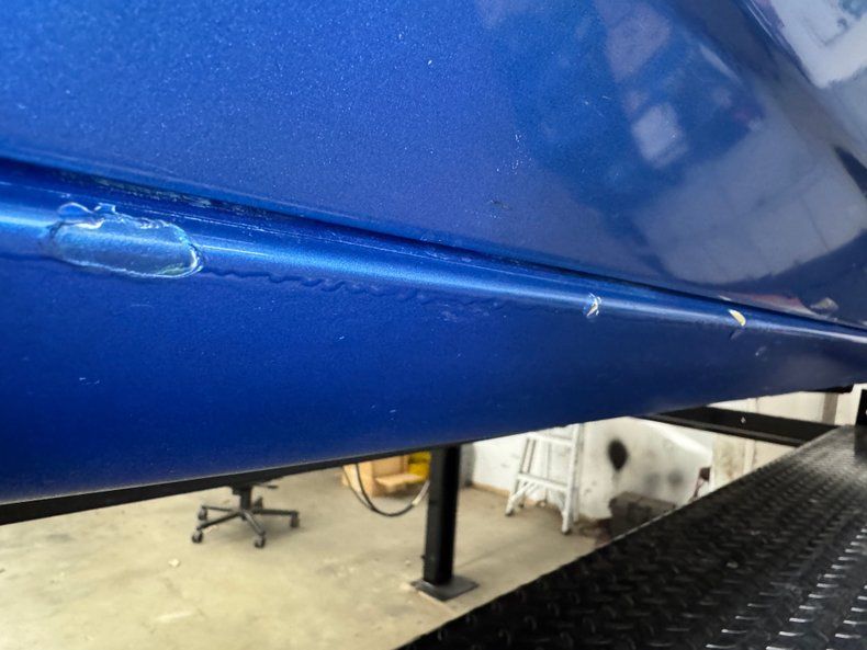 And it is that front end that gets your attention first, not because it's that of a '72 split bumper, but the blacked out trim, dark set LED headlights, and massive, arching cowl hood. While the entire car glistens with two stage medium blue metallic, the hood presents in a more matte blue with multiple dzus pins around the perimeter. In profile, intentions are clear with heavily staggered 15-inch Race Star Industries wheels wrapped in tires no older than mid 2020. The raked stance and the obvious plexiglass side windows plus the bump on the nose just look bad to the bone. Other than the power shut off, fat meats, and visible fuel pump lines, the back is otherwise pedestrian '78 Camaro with of course, the three part wing. Imperfections include chipping on the fiberglass hood, cracking paint by the door handle, various scratches, paint chips and rock chips, and paint runs on rockers.