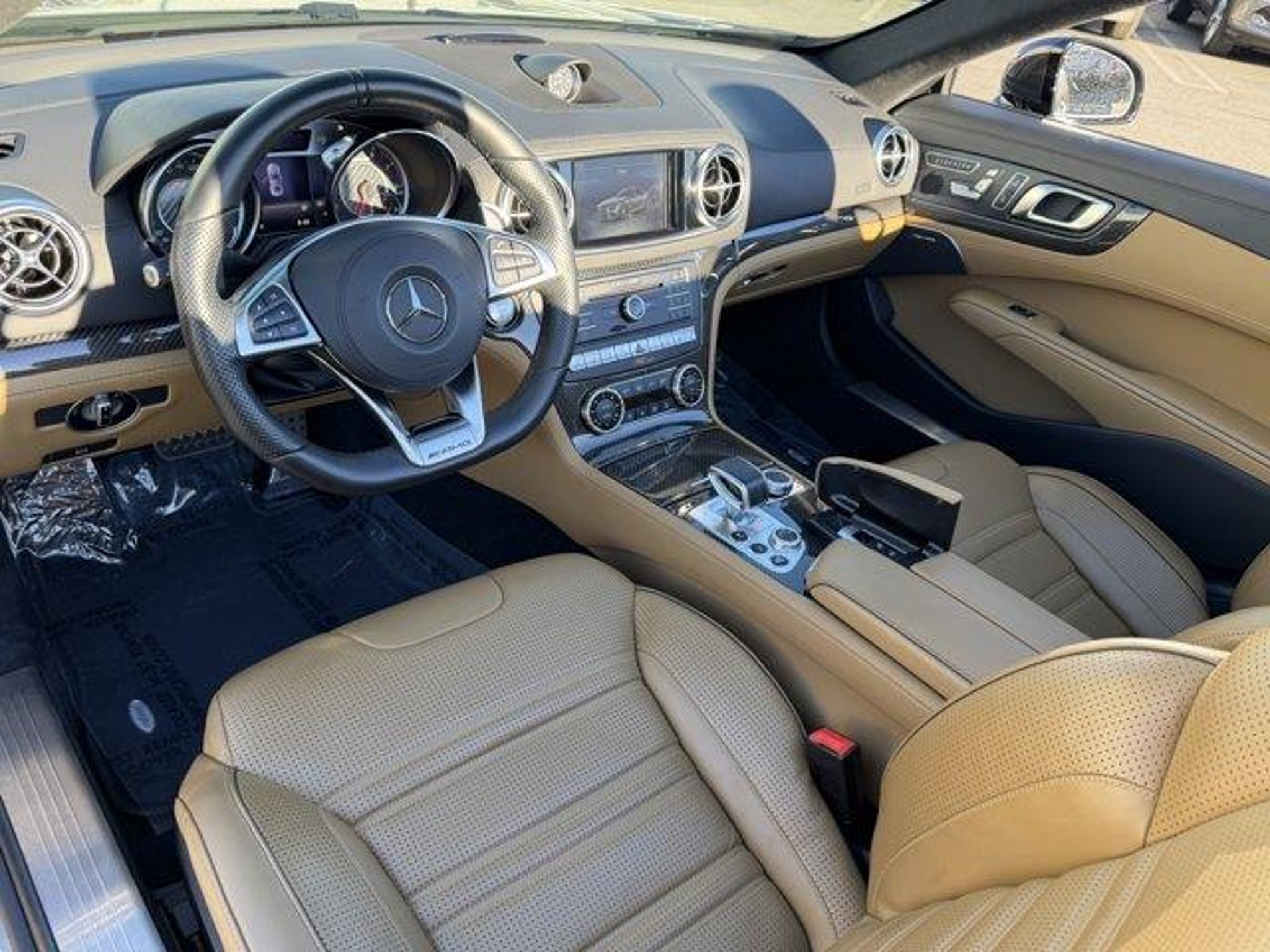[Recent Arrival! Clean CARFAX. Priced below KBB Fair Purchase Price! Odometer is 15146 miles below market average!AMG® Exterior Carbon Fiber Package (Carbon Fiber Front Bumper Cross Strut, Carbon Fiber Mirror Covers, and Carbon Fiber Trunklid Spoiler), designo® Tuscany Beige Pearl Leather Package (designo® Tuscany Beige Pearl Leather Upholstery), Driver Assistance Package (Active Blind Spot Assist, Active Lane Keeping Assist, Badging on Dashboard, Center Console Storage Box, DISTRONIC PLUS® w/Steering Assist, DISTRONIC PLUS® w/Pre-Safe Brake, Parking Brake Warning Buzzer, PRE-SAFE® Plus, and Speed Limit Assist), 11 Speakers, Convertible HardTop, harman/kardon® Logic 7® Surround Sound System, MAGIC SKY CONTROL®, Navigation system: COMAND®, Wheels: 19/20 AMG® Cross-Spoke Forged, Black, 4-Wheel Disc Brakes, ABS brakes, Active Multi-Contour AMG® Performance Seats, Adaptive suspension, Air Conditioning, Alloy wheels, AM/FM radio: SiriusXM, AMG® Premium Leather Upholstery, Anti-whiplash front head restraints, Apple CarPlay, Auto High-beam Headlights, Auto tilt-away steering wheel, Auto-dimming door mirrors, Auto-dimming Rear-View mirror, Auto-leveling suspension, Automatic temperature control, Brake assist, Bumpers: body-color, Carbon Fiber Trim, CD player, Child-Seat-Sensing Airbag, Convertible roof lining, Convertible roof wind blocker, Delay-off headlights, Driver door bin, Driver vanity mirror, Dual front impact airbags, Dual front side impact airbags, DVD-Audio, Electronic Stability Control, Emergency communication system: mbrace2, Exterior Parking Camera Rear, Four wheel independent suspension, Front Bucket Seats, Front Center Armrest, Front dual zone A/C, Front reading lights, Garage door transmitter: Homelink, Glass rear window, harman/kardon® Speakers, Head restraints memory, Headlight cleaning, Heated & Active Ventilated Front Seats, Heated door mirrors, Heated front seats, HVAC memory, Illuminated entry, Integrated roll-over protection, Knee airbag, Leather Shift Knob, Low tire pressure warning, Memory seat, Occupant sensing airbag, Outside temperature display, Overhead airbag, Panic alarm, Passenger door bin, Passenger vanity mirror, Power adjustable front head restraints, Power convertible roof, Power door mirrors, Power driver seat, Power passenger seat, Power steering, Power windows, Premium audio system: COMAND®, Radio data system, Radio: COMAND® 5.1 Infotainment System, Rain sensing wipers, Rear fog lights, Rear window defroster, Remote keyless entry, Security system, SIRIUS XM Satellite Radio, Speed control, Speed-sensing steering, Spoiler, Sport steering wheel, Steering wheel memory, Steering wheel mounted audio controls, Tachometer, Telescoping steering wheel, Tilt steering wheel, Traction control, Trip computer, Turn signal indicator mirrors, Variably intermittent wipers, Ventilated front seats, Weather band radio, and Wheels: 19 AMG® 10-Spoke Light Alloy. 11 Speakers, Active Blind Spot Assist, Active Lane Keeping Assist, AMG® Exterior Carbon Fiber Package, Badging on Dashboard, Carbon Fiber Front Bumper Cross Strut, Carbon Fiber Mirror Covers, Carbon Fiber Trunklid Spoiler, Center Console Storage Box, Convertible HardTop, designo® Tuscany Beige Pearl Leather Package, designo® Tuscany Beige Pearl Leather Upholstery, DISTRONIC PLUS® w/Steering Assist, DISTRONIC PLUS® w/Pre-Safe Brake, Driver Assistance Package, harman/kardon® Logic 7® Surround Sound System, MAGIC SKY CONTROL®, Navigation system: COMAND®, Parking Brake Warning Buzzer, PRE-SAFE® Plus, Speed Limit Assist, Wheels: 19/20 AMG® Cross-Spoke Forged, Black.Reviews:* Effortless acceleration, even in the entry-level SL450; interior is a model of luxury and refinement; excellent handling doesn't come at the expense of comfort; supercool folding hardtop still allows for decent cargo space. Source: EdmundsVisit us at VistaFord.com, call us at|or stop by our showroom at 21501 Ven] [If you need a new automobile to help you live your life in Woodland Hills, Calabasas, Thousand Oaks, Canoga Park, or San Fernando, stopping by Vista Ford is your best option. We have been one of the area's top dealerships for over four decades, and our superb staff is ready to assist you in finding a vehicle that meets all of your needs. ]