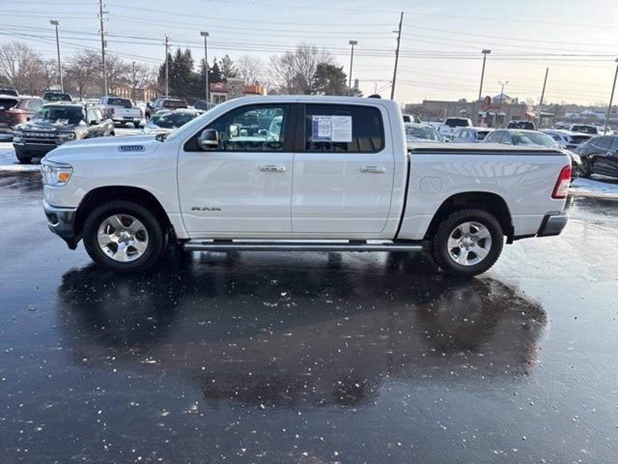 Ram 2019 1500 Big Horn/Lone Star 115V Auxiliary Power Outlet, 115V Auxiliary Rear Power Outlet, 2 USB Full Function/Charge Only Media Hub, 3.21 Rear Axle Ratio, 400W Inverter, 8.4 Touchscreen Display, Air Conditioning ATC w/Dual Zone Control, Apple CarPlay, Auto-Dimming Rear-View Mirror, Big Horn IP Badge, Big Horn Level 2 Equipment Group, Brake assist, Class IV Receiver Hitch, Cluster 7.0 TFT Color Display, Dampened Tailgate, Foam Bottle Insert (Door Trim Panel), Glove Box Lamp, Heated Front Seats, Heated Steering Wheel, Integrated Center Stack Radio, ParkSense Front/Rear Park Assist w/Stop, ParkView Rear Back-Up Camera, Power 4-Way Driver Lumbar Adjust, Power 8-Way Driver Seat, Power Adjustable Pedals, Power Heated Fold Away Mirrors, Quick Order Package 25Z Big Horn/Lone Star, Radio: Uconnect 4 w/8.4 Display, Rear Dome w/On/Off Switch Lamp, Rear Power Sliding Window, Rear Window Defroster, Remote Start System, Security Alarm, Single Disc Remote CD Player, SiriusXM Satellite Radio, Steering Wheel Mounted Audio Controls, Sun Visors w/Illuminated Vanity Mirrors, Universal Garage Door Opener, Wheels: 18 x 8. 4D Crew Cab Bright White Clearcoat HEMI 5.7L V8 Multi Displacement VVT 8-Speed Automatic 4WD Odometer is 7960 miles below market average! Awards: * Motor Trend Automobiles of the year * 2019 KBB.com 10 Best Road Trip Cars * 2019 KBB.com 10 Favorite New-for-2019 Cars * NACTOY 2019 North American Truck of the Year * 2019 KBB.com Best Auto Tech Awards Stop searching, start calling today!