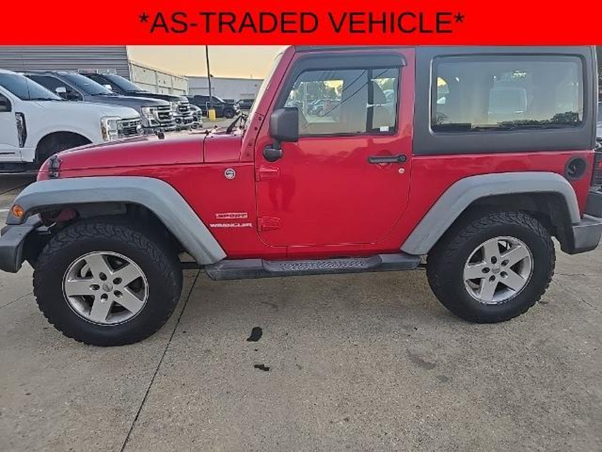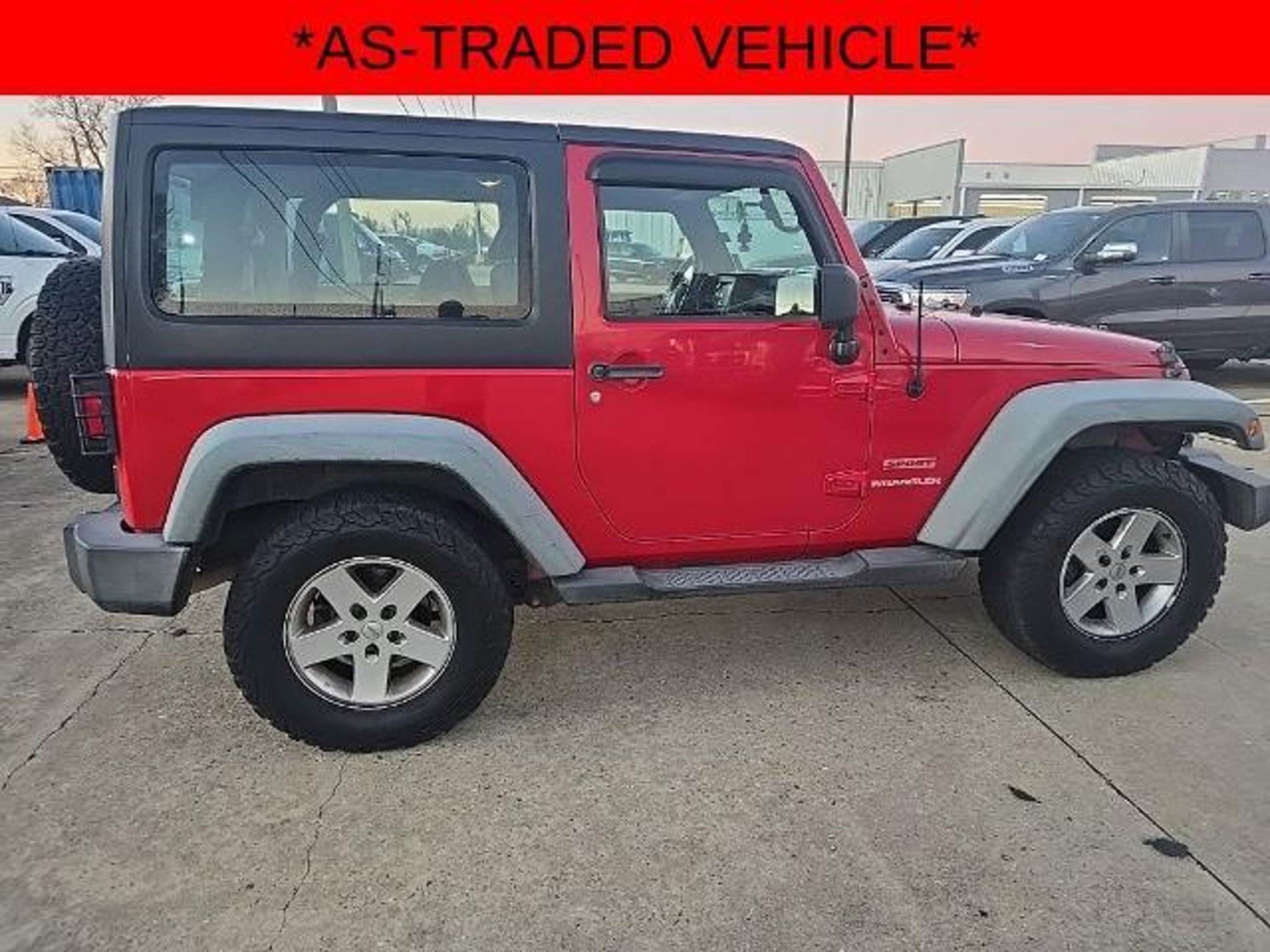This vehicle is a recent trade-in and has not been inspected or serviced by Bayou Automotive. It is offered for sale strictly on an AS-IS basis, with no warranties, guarantees, or assurances of any kind provided by the dealership. This AS-IS sale serves as an alternative to sending the vehicle to auction. Bayou Automotive makes no representations regarding the vehicle?s condition, reliability, or roadworthiness. The vehicle may have known or unknown mechanical, cosmetic, or operational issues. The buyer assumes all responsibility for any repairs or maintenance required after purchase. Wrangler Sport, 2D Sport Utility, 3.8L V6 SMPI, 4-Speed Automatic VLP, 4WD, Flame Red Clearcoat, Black w/Cloth Bucket Seats, 16 x 7.0 Luxury Styled Steel Wheels, 3.21 Rear Axle Ratio, 4-Wheel Disc Brakes, 6 Speakers, ABS brakes, AM/FM radio, Brake assist, CD player, Cloth Bucket Seats, Electronic Stability Control, Front Bucket Seats, Front Center Armrest w/Storage, Front fog lights, Normal Duty Suspension, Passenger door bin, Power steering, Radio: Media Center 130 CD/MP3, Speed control, Variably intermittent wipers. Bayou Automotive is a locally owned and operated dealership committed to providing a no-hassle, transparent car buying experience. Our primary goal is to deliver outstanding service and ensure every customer enjoys a positive and straightforward purchasing process. If you have any questions or concerns regarding your shopping experience, please feel free to contact our owner, Ben Gaiennie, directly at owners@bayouautomotive.com. We value your feedback and are dedicated to making your experience exceptional.