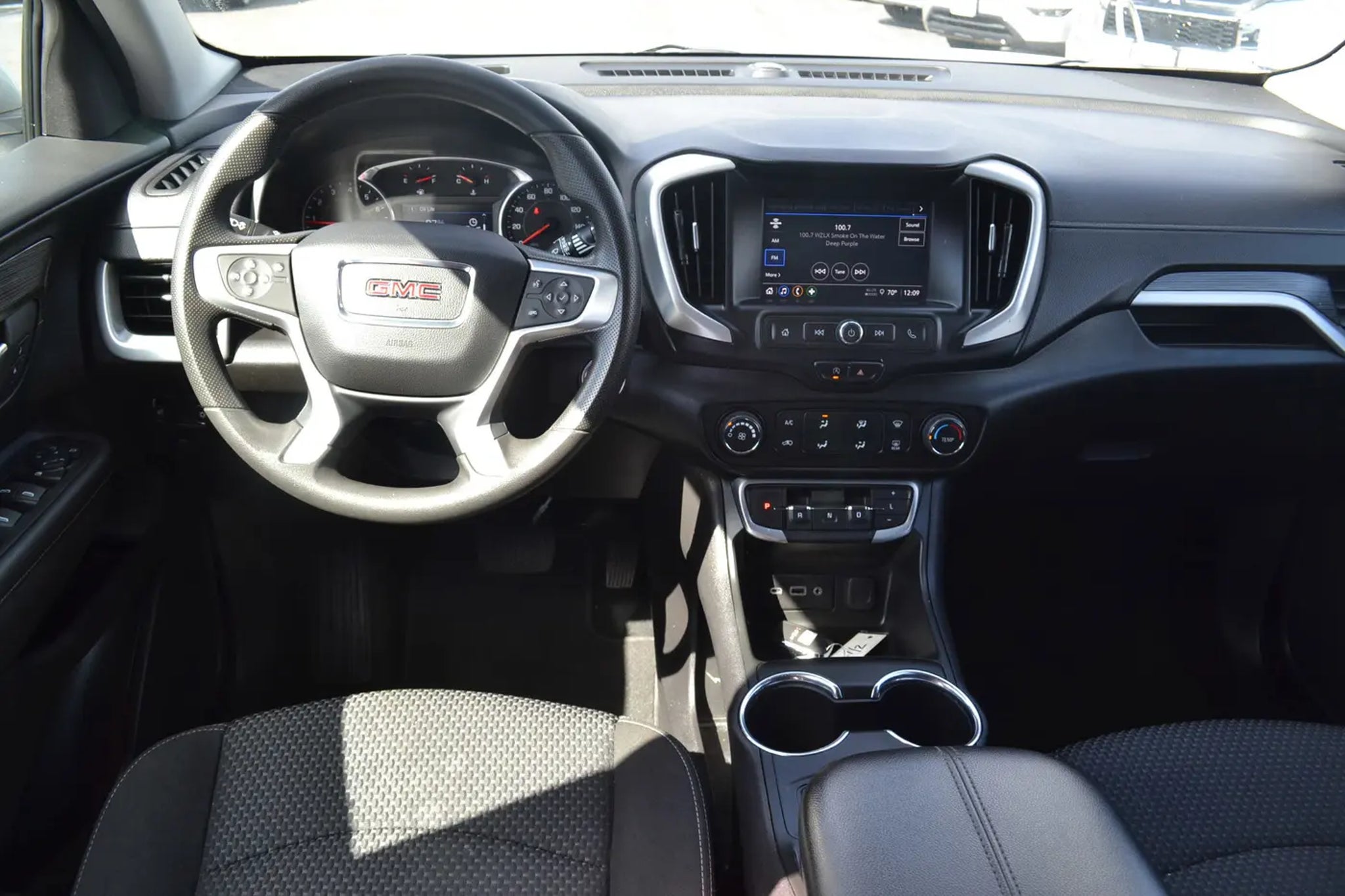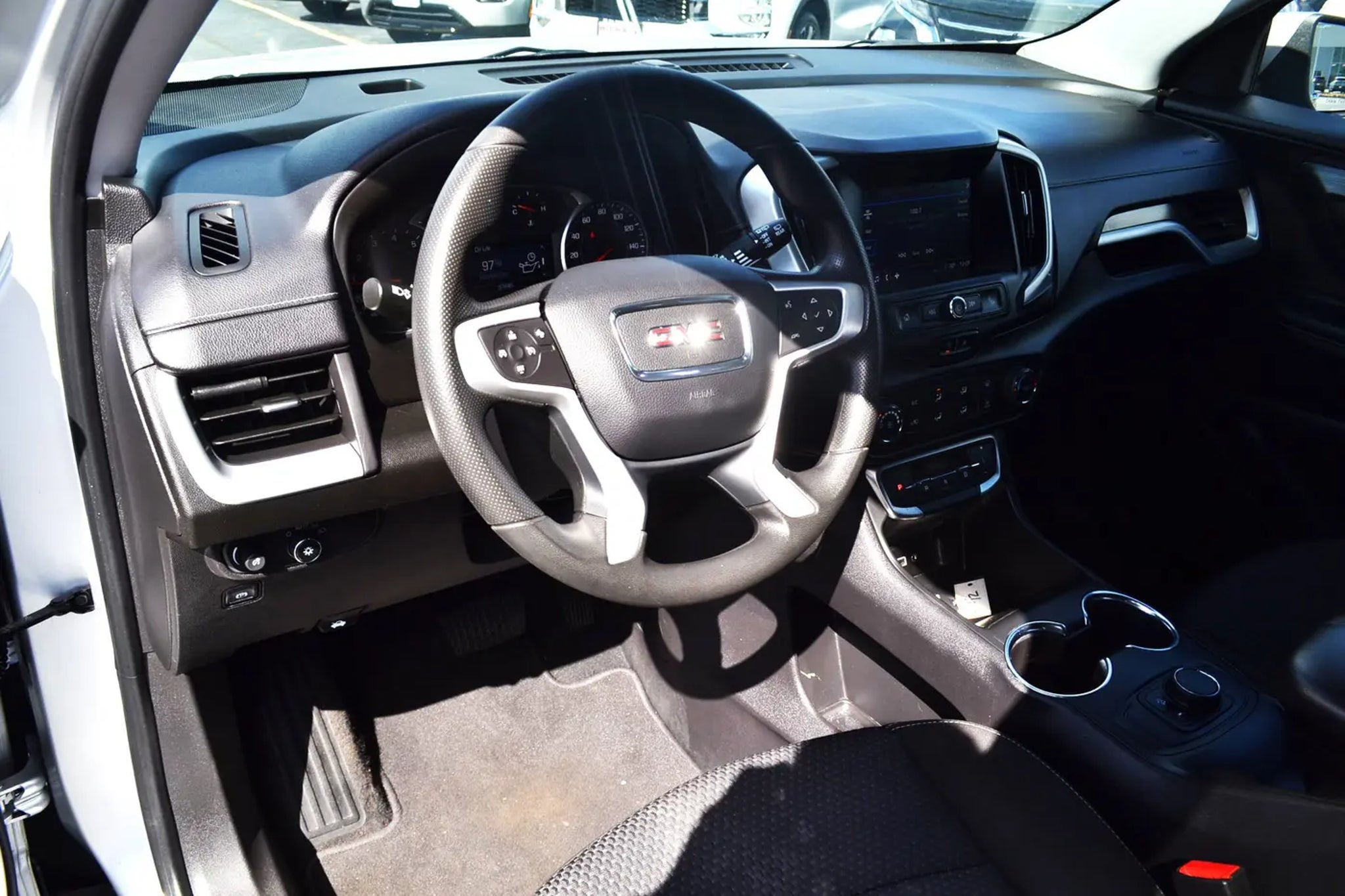 TRANSMISSION, 9-SPEED AUTOMATIC 9T45, ELECTRONICALLY-CONTROLLED WITH OVERDRIVE (STD), SLE PREFERRED EQUIPMENT GROUP includes standard equipment, SEATS, FRONT BUCKET (STD), SAFETY ALERT SEAT, REAR PARK ASSIST, QUICKSILVER METALLIC, MIRRORS, OUTSIDE HEATED POWER-ADJUSTABLE, MANUAL-FOLDING WITH LED TURN SIGNAL INDICATORS, ENGINE, 1.5L TURBO DOHC 4-CYLINDER, SIDI, VVT (170 hp [127.0 kW] @ 5600 rpm, 203 lb-ft of torque [275.0 N-m] @ 2000 - 4000 rpm) (STD), AXLE, 3.47 FINAL DRIVE RATIO, AUDIO SYSTEM, 7 DIAGONAL GMC INFOTAINMENT SYSTEM includes multi-touch display, AM/FM stereo, includes Bluetooth streaming audio for music and most phones; featuring Android Auto and Apple CarPlay capability for compatible phones (STD). This GMC Terrain has a powerful Turbocharged Gas 1.5L/92 engine powering this Automatic transmission.