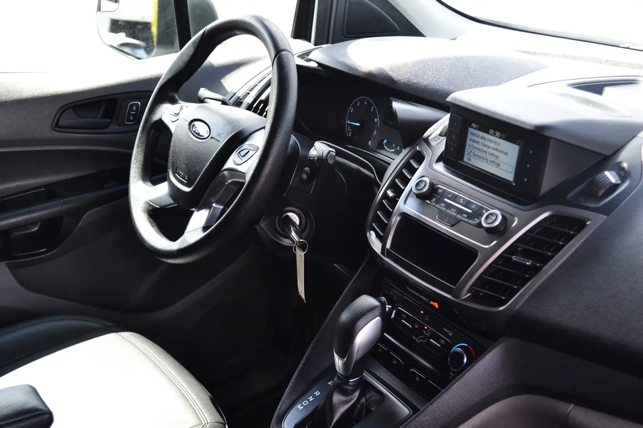 TRANSMISSION: 8-SPEED SELECTSHIFT AUTOMATIC (STD), REVERSE SENSING SYSTEM, REAR WINDOW DEFROSTER, ORDER CODE 100A, HEAVY DUTY BATTERY -inc: (80-amp; 800CCA), FROZEN WHITE, ENGINE: 2.0L GDI I-4 GAS -inc: auto start/stop technology and EcoMode (STD), Wheels: 16 Sparkle Silver-Painted Steel -inc: full wheel covers (non-locking lug nuts), Vinyl/Rubber Floor Trim, Vinyl Front Bucket Seats -inc: 6-way manual driver seat (fore/aft, up/down & lever recline) and 4-way manual passenger seat (fore/aft & lever recline) w/fold-flat back. This Ford Transit Connect Van has a powerful Regular Unleaded I-4 2.0 L/122 engine powering this Automatic transmission.