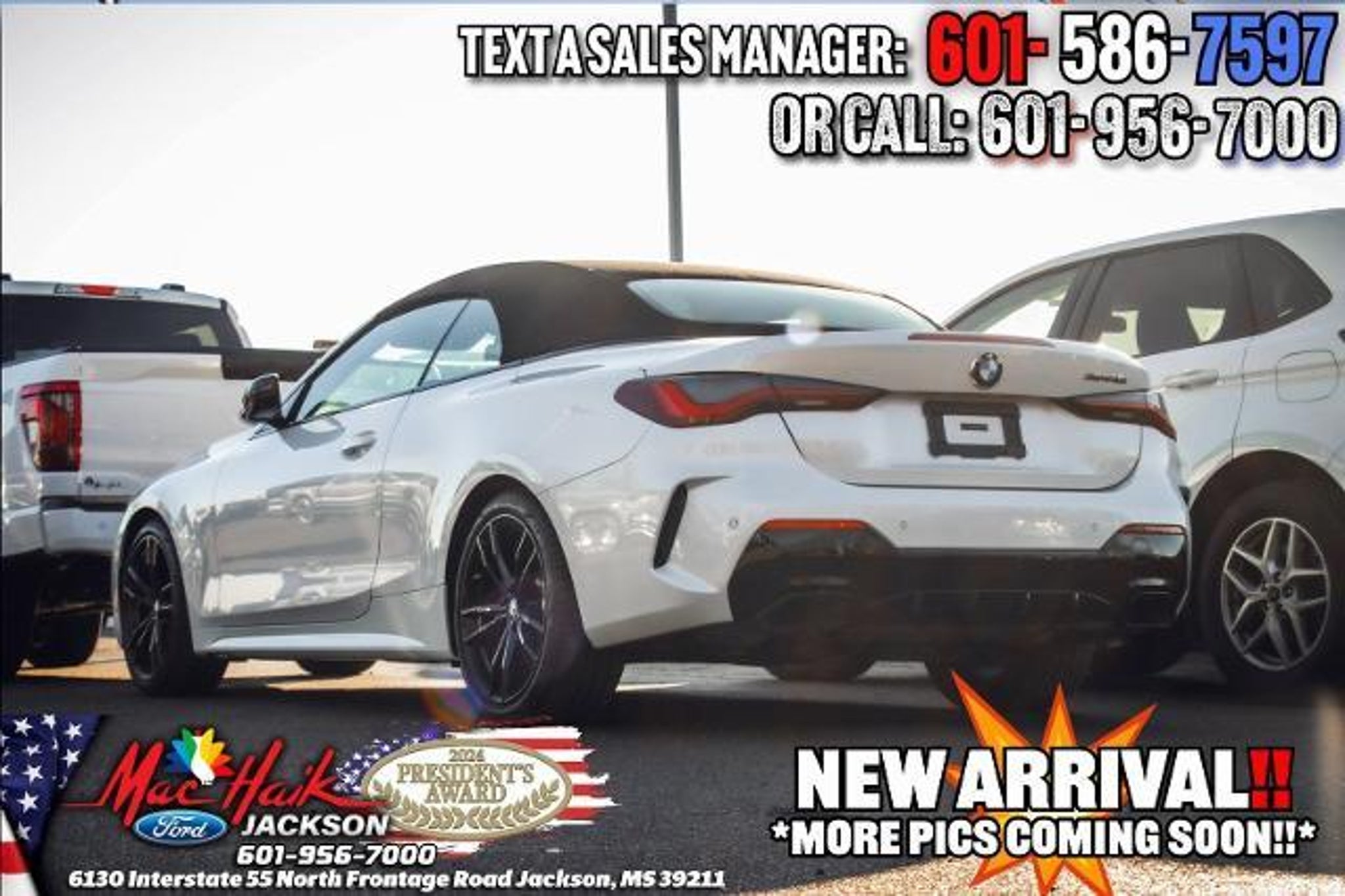Certified. CARFAX One-Owner. Clean CARFAX. Mineral White Metallic 2024 BMW 4 Series M440i RWD 8-Speed Automatic Sport 3.0L I6 4 Series M440i, 2D Convertible, 3.0L I6, 8-Speed Automatic Sport, RWD, 4-Wheel Disc Brakes, Active Park Distance Control, AM/FM radio: SiriusXM with 360L, Auto High-beam Headlights, Automatic temperature control, Black Mirror Caps, BMW Curved Display w/HUD, Connected Package Pro, Driver Width Adjustment, Electronic Stability Control, Extended Shadowline Trim, Exterior Parking Camera Rear, Four wheel independent suspension, Fully automatic headlights, harman/kardon Surround Sound System, Heated Front Seats, Heated Steering Wheel, Hi-Fi Sound System, Lumbar Support, M Shadowline Lights, M Sport Brakes w/Red Calipers, M Sport Package Pro, Memory seat, Navigation System, Parking Assistance Package, Parking Assistant Plus, Premium Package, Rear-View Camera, Shadowline Package, Speed-sensing steering, Steering wheel mounted audio controls, Surround View w/3D View, Traction control, Vernasca Leather Upholstery, Wheels: 19 x 8 Fr & 19 x 8.5 Rr (Style 791M), Wireless Device Charging. Recent Arrival! 23/31 City/Highway MPG Certification Program Details: Ford Blue Certified Details: * Roadside Assistance * Limited Warranty: 3 Month/4,000 Mile (whichever comes first) after new car warranty expires or from certified purchase date * and 11,000 FordPass Rewards Points to use toward first maintenance visit * Transferable Warranty * Vehicle History * 139 Point Inspection * Warranty Deductible: $100