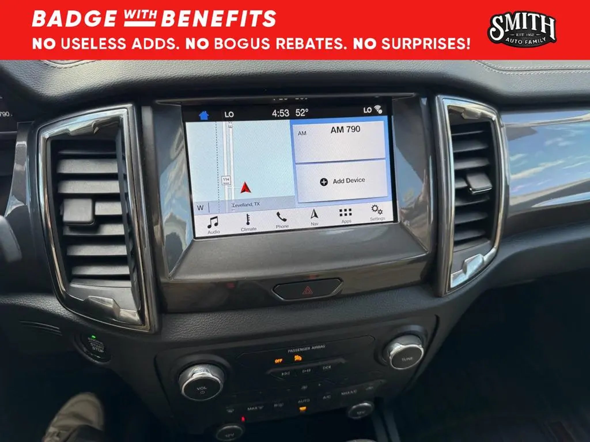 Vehicle Details Discover rugged capability and refined comfort with this 2019 Ford Ranger LARIAT, now available in Levelland, TX. Driven just 46,917 miles, this 4WD midsize pickup combines a fuel-efficient 2.3L 4-cylinder gasoline engine with responsive handling and towing capability, making it ideal for work, weekend adventures, and daily driving. The LARIAT trim delivers premium features and technology without compromising utility. Inside, enjoy Automatic Climate Control for consistent comfort and an intuitive navigation system to guide your travels across Texas and beyond. Connectivity is effortless with Hands-Free Bluetooth and Android Auto, keeping calls, messages, and music accessible while your focus stays on the road. Backup Camera technology enhances safety and confidence when parking or maneuvering in tight spaces. This Ford Ranger LARIAT provides a well-maintained, low-mileage option in the pre-owned truck market, and it's competitively priced to be the best value in the area. Whether you're hauling gear, commuting, or escaping to the outdoors, this truck blends capability, convenience, and modern tech features. Located in Levelland, TX, this 2019 Ford Ranger LARIAT is ready for a test drive. With its combination of performance, comfort, and connectivity "” plus the best price available "” it won't stay on the lot long. Contact us today to schedule your appointment. Equipment This small pickup has automated speed control that adjusts to maintain a safe following distance, enhancing highway driving convenience. The rear parking assist technology on this 2019 Ford Ranger will put you at ease when reversing. The system alerts you as you get closer to an obstruction. The leather seats in it are a must for buyers looking for comfort, durability, and style. Apple CarPlay: Seamless smartphone integration for this unit - stay connected and entertained on the go! This Ford Ranger offers Android Auto for seamless smartphone integration. This vehicle offers Automatic Climate Control for personalized comfort. An off-road package is installed on the Ford Ranger so you are ready for your four-wheeling best. Start the vehicle from inside with remote start. Our dealership has already run the CARFAX report and it is clean. A clean CARFAX is a great asset for resale value in the future. You'll never again be lost in a crowded city or a country region with the navigation system on this small pickup. Packages Chrome Appearance Package: Chrome Door and Tailgate Handles; Chrome Front and Rear Bumpers; Chrome Exhaust Tip; 18 Chrome-Like PVD Wheels; Chrome Tow Hooks; Unique Chrome Grille; Chrome Mirror Caps; Body-Color Wheel-Lip Molding. FX4 Off-Road Package: Terrain Management System; Off-Road Screen in Cluster; Off-Road Tuned Suspension; Exposed Front Tow Hooks; 4x4 FX4 Off-Road Bodyside Decal; Skid Plates. Equipment Group 501A Mid: TBD Axle Ratio; Front Heated Leather-Trimmed Bucket Seats; Electronic 10-Speed SelectShift Automatic Transmission; Rain-Sensing Wipers; Remote Start; 2.3L EcoBoost Engine; 6. 050 lbs GVWR; Windshield Wiper De-Icer; B&O Sound System by Bang and Olufsen. Trailer Tow Package: Class IV Trailer Hitch Receiver. Technology Package: Adaptive Cruise Control; Navigation. 5 Rectangular Chrome Running Boards. White Platinum Tri-Coat. **Equipment listed is based on original vehicle build and subject to change. Please confirm the accuracy of the included equipment by calling the dealer prior to purchase.**
