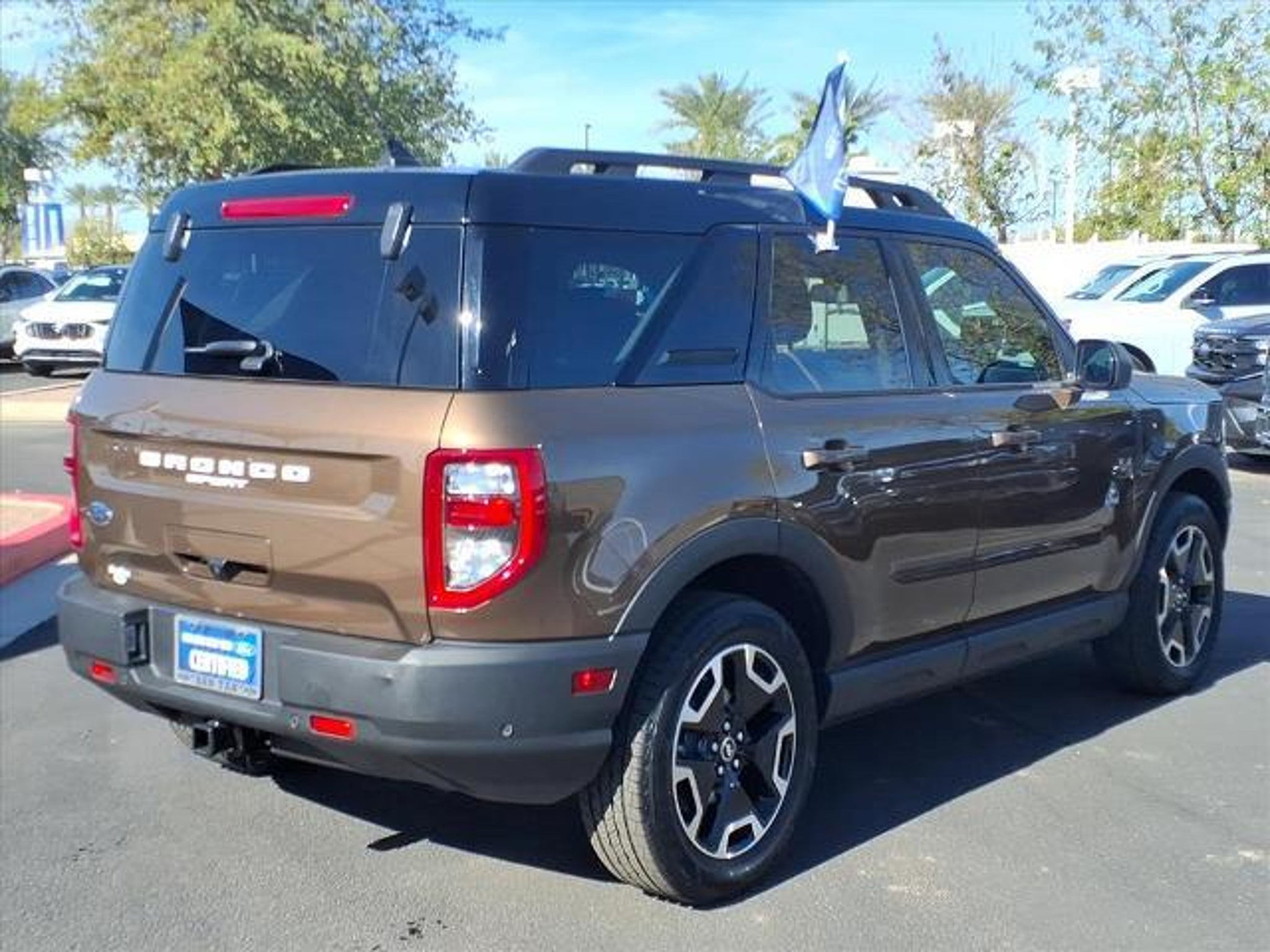 This vehicle is a 2022 Ford Bronco Sport Outer Banks SUV, a certified pre-owned model with 30,309 miles. It has an all wheel drive system and a 1.5 liter 3 cylinder engine with turbocharging, making it an efficient and powerful vehicle. The bronze smoke metallic exterior gives it a sleek look, while the ebony/roast 9p interior provides a comfortable ride. The crash test rating of 5 out of 5 stars ensures that you and your passengers are safe while driving. Other features include blind spot sensor, hill start assist, and on demand four wheel drive for added convenience. This vehicle is sure to turn heads on the road! Contact Details: San Tan Ford, 1429 East Motorplex Loop, Gilbert, AZ, 85297, dustinduff@santanford.com, 4808213200.