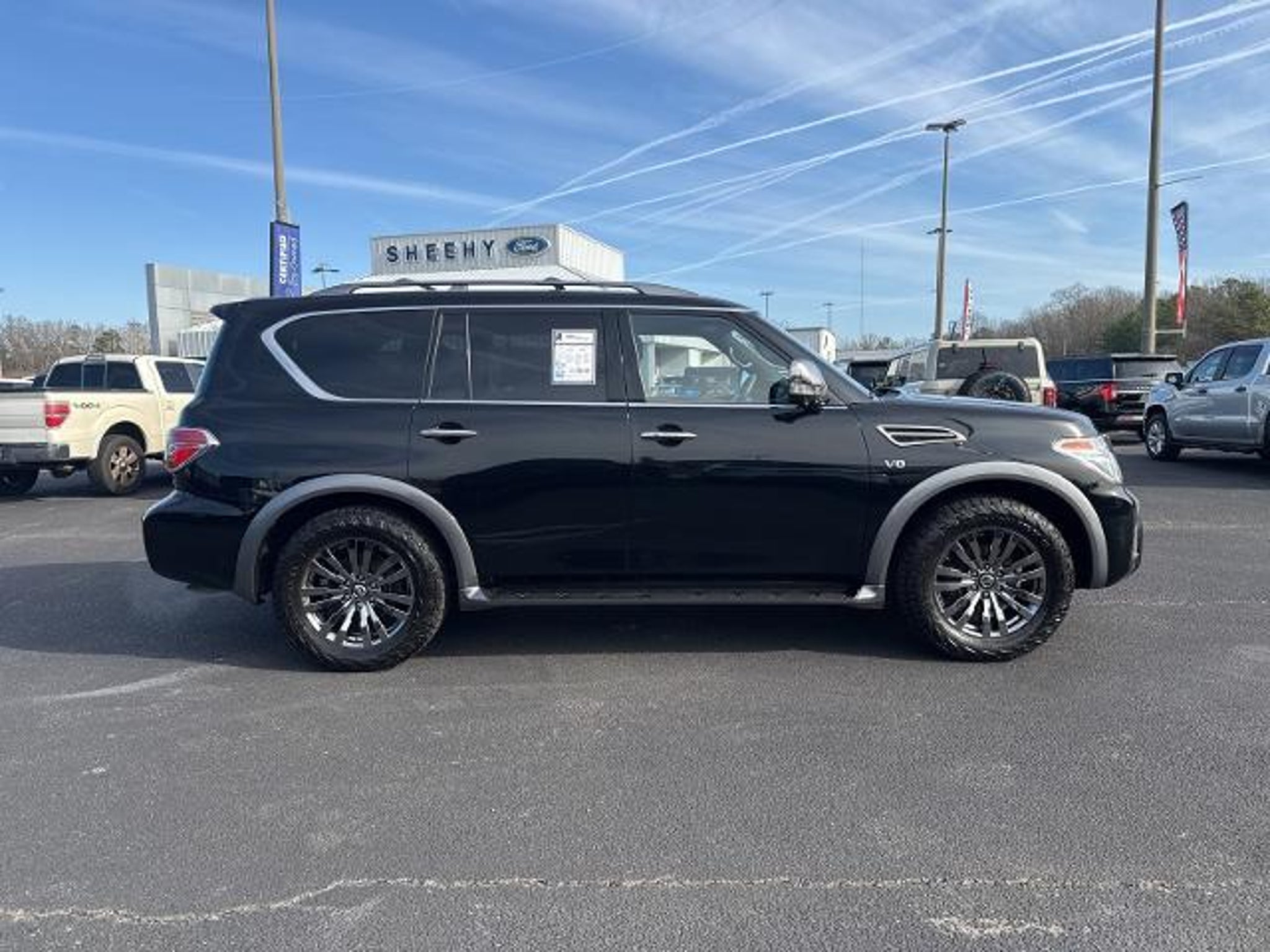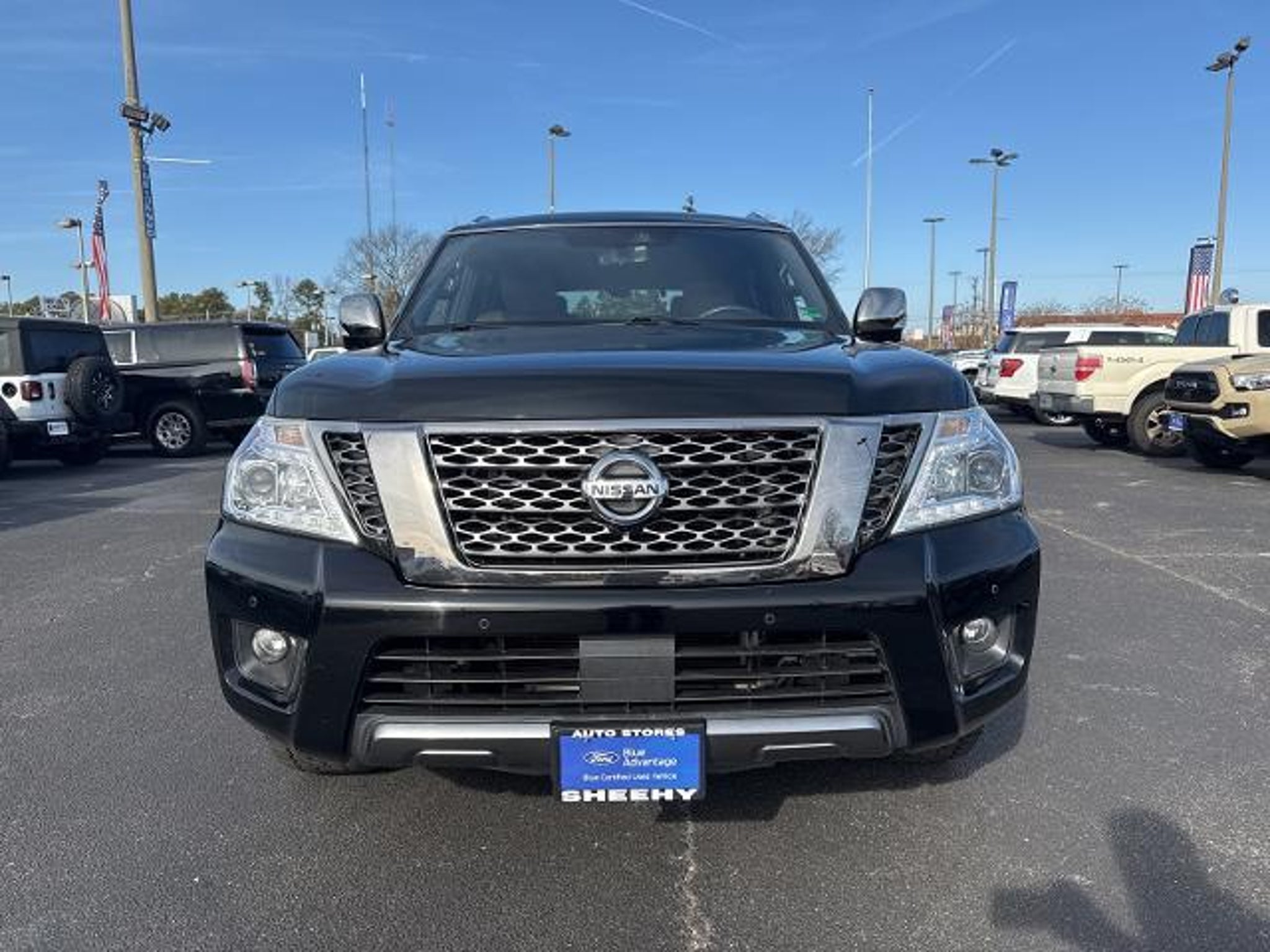 2018 Nissan Armada Platinum RWD at Sheehy Ford Lincoln of Richmond! This Armada has an exterior color of Super Black with Charcoal Leather interior. This preowned Nissan Armada is equipped with amazing options like: Navigation System. Certification Program Details: Sheehy Value Car located at Sheehy Ford Lincoln of Richmond only! All our Sheehy Value Cars come with a 30 Day/1,000-mile warranty, upfront clear and Sheehy-It?s Easy Pricing, CarFax history report, backed by our 5 day/300 mile money-back guarantee and pass Virginia inspection. See Sheehy Ford Lincoln of Richmond for details. This vehicle is non-transferable to other Sheehy Locations. Some vehicles may have unrepaired safety recalls. Sheehy Auto Stores is not a manufacturer-authorized repair facility for all brands, but your local same-brand dealer will provide recall repair services for free. To check for open recalls please visit https://www.nhtsa.gov/recalls?vin=JN8AY2NF1J9332875#vin.