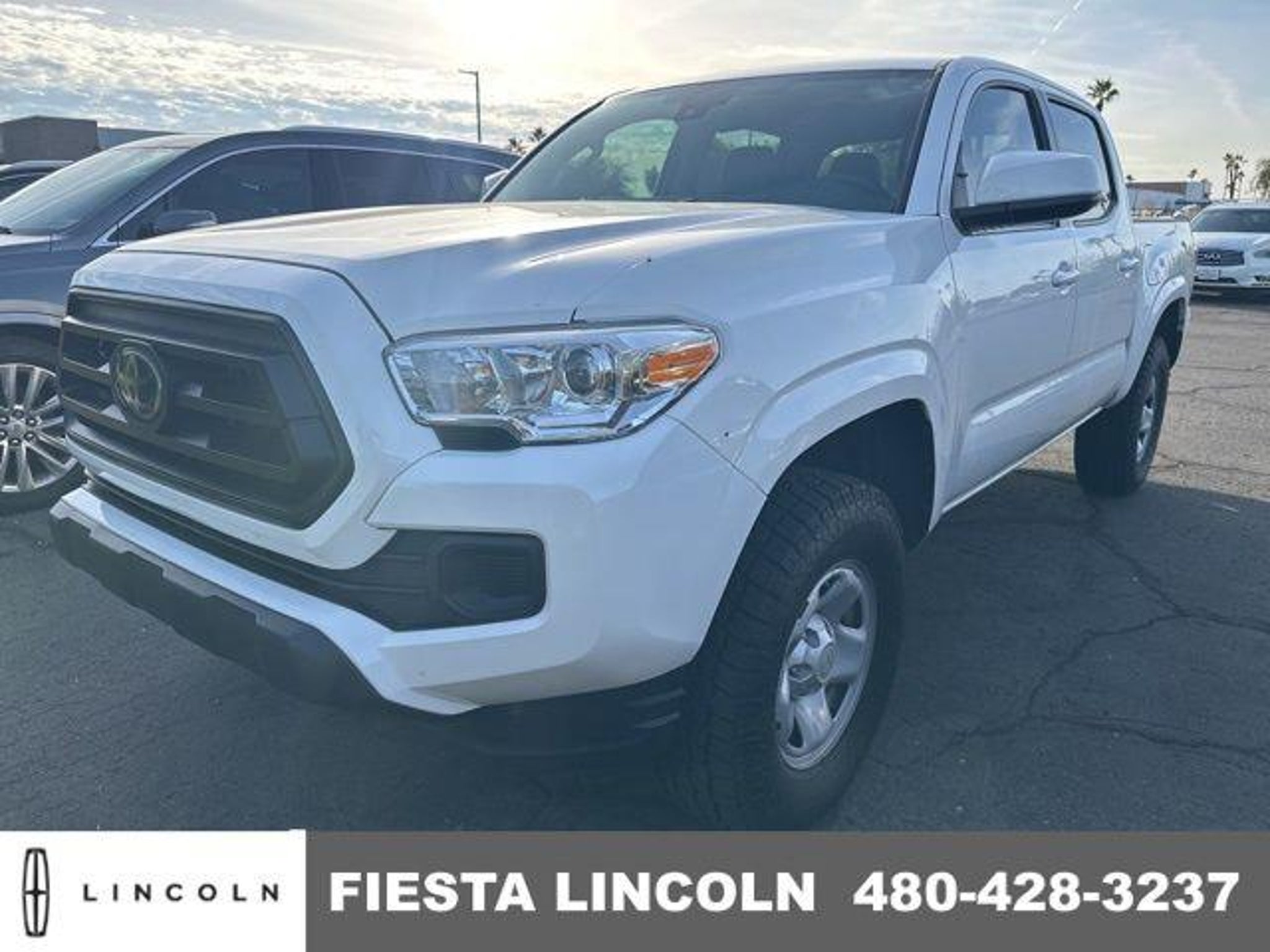 White 2022 Toyota Tacoma SR RWD 6-Speed Automatic 2.7L SMPI DOHC ABS brakes, Active Cruise Control, Electronic Stability Control, Illuminated entry, Low tire pressure warning, Traction control. This Toyota Tacoma is equipped with ABS brakes, Active Cruise Control, Electronic Stability Control, Illuminated entry, Low tire pressure warning, Traction control, 6 Speakers, Air Conditioning, AM/FM radio: SiriusXM, AM/FM Stereo, Anti-whiplash front head restraints, Apple CarPlay/Android Auto, Auto High-beam Headlights, Axle Ratio: 4.30, Brake assist, Bumpers: body-color, Driver door bin, Dual front impact airbags, Dual front side impact airbags, Emergency communication system: Safety Connect with 1-year trial, Exterior Parking Camera Rear, Fabric Seat Trim (FB), Front anti-roll bar, Front Bucket Seats, Front Center Armrest, Front reading lights, Front Seats, Front wheel independent suspension, Knee airbag, Occupant sensing airbag, Outside temperature display, Overhead airbag, Overhead console, Passenger door bin, Power door mirrors, Power steering, Power windows, Rear step bumper, Speed control, Speed-sensing steering, Split folding rear seat, Steering wheel mounted audio controls, Tachometer, Telescoping steering wheel, Tilt steering wheel, Variably intermittent wipers, and Wheels: 16 x 7J Style Steel Disc. Odometer is 3679 miles below market average! Established in 1984, Fiesta Lincoln has been providing Mesa, AZ drivers with the outstanding customer service they deserve. Visit us today and see!