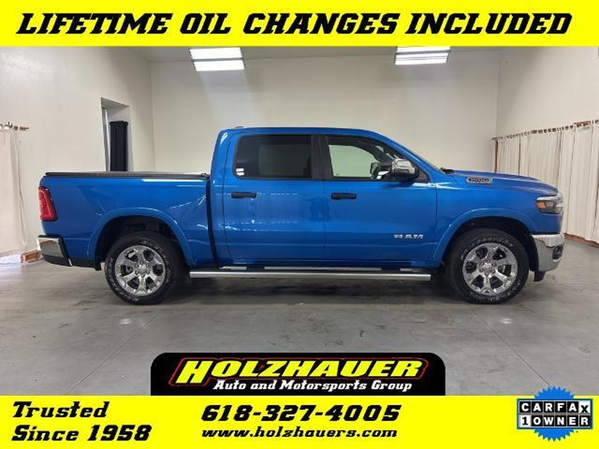 2025 Ram 1500 Big Horn/Lone Star 3.0L I6 4WD Hydro Blue Pearlcoat ONE OWNER!!, MOSTPLUS Folding Bedcover, LASFIT Rubber Bed Mat, 115V Auxiliary Power Outlet, 115V Auxiliary Rear Power Outlet, 12 Touchscreen Display, 2nd Row In Floor Storage Bins, 3.55 Rear Axle Ratio, 400W Inverter, 4G LTE Wi-Fi Hot Spot, 9 Amplified Speakers w/Subwoofer, Air Conditioning ATC w/Dual Zone Control, Anti-Spin Differential Rear Axle, Apple CarPlay/Android Auto, Auto High-beam Headlights, Auto Power-Folding Mirrors, Big Horn Level 2 Equipment Group, Black Premium Power Mirrors, Deluxe Cloth Bucket Seats, Dual Rear Exhaust w/Bright Tips, Front fog lights, HD Radio, Heated Front Seats, Heated Steering Wheel, MOPAR Front & Rear Rubber Floor Mats, Navigation System, ParkView Rear Back-Up Camera, Power Adjust 8-Way Driver Seat, Quick Order Package 21Z Big Horn, Radio: Uconnect 5 Nav w/12.0 Display, Rear Power Sliding Window, Remote Tailgate Release, SiriusXM w/360L, Trailer Brake Control, Universal Garage Door Opener, Wheel to Wheel Side Steps, Wheels: 20 x 9 Aluminum Chrome Clad (WRK). CARFAX One-Owner. Our incredible selection, our low overhead and low prices simply cannot be matched. Teamed with our friendly small town service you'll see why Holzhauer Auto Group is one of the Midwest's largest and fastest growing dealerships. We dont just compete. We blow the competition away with selection, service and price. Before you buy a car, truck, van or SUV from anywhere else you owe it to yourself to visit Holzhauer Auto Group. Odometer is 18682 miles below market average!