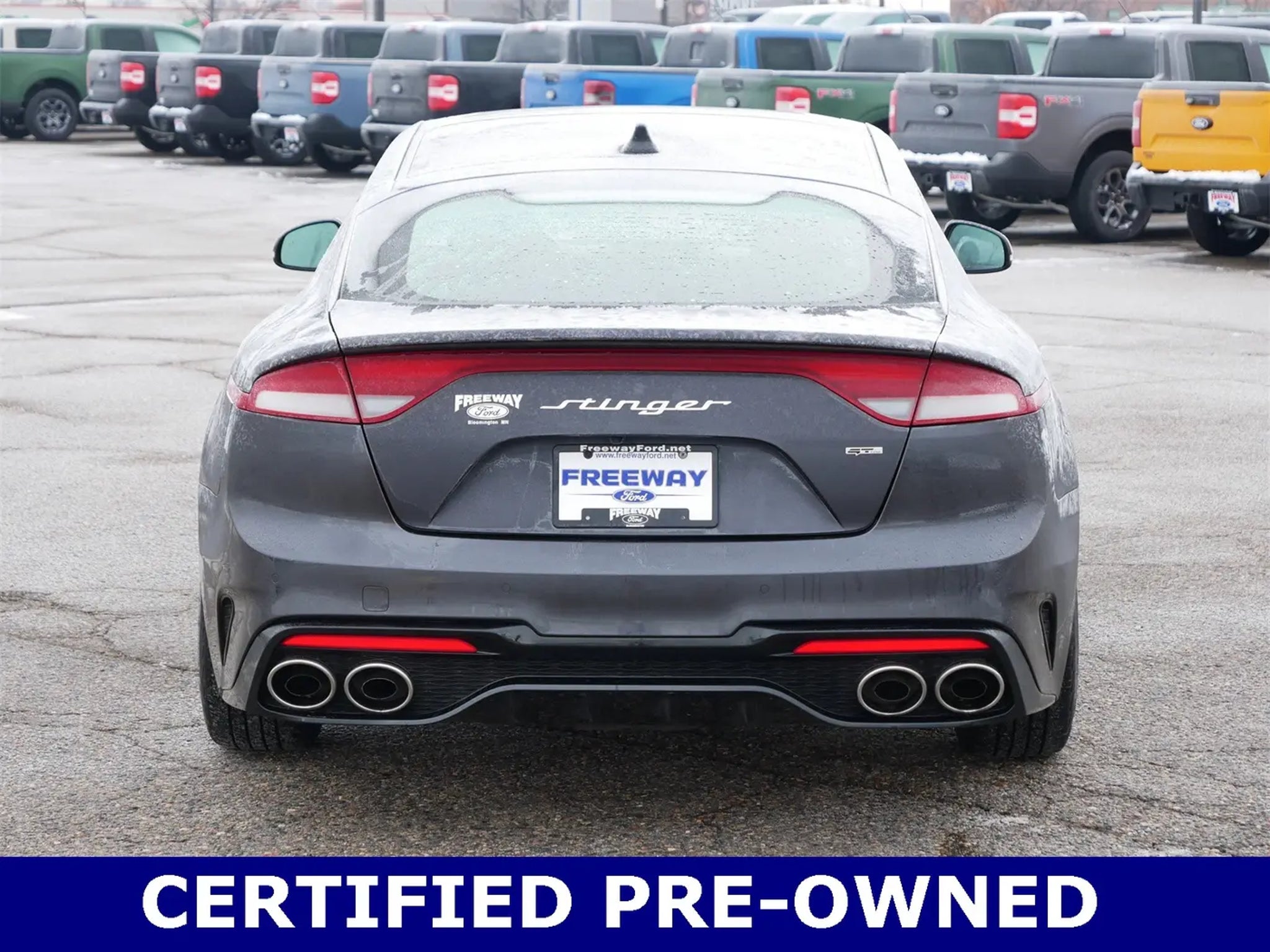 ONE OWNER--, --NO ACCIDENTS - CLEAN VEHICLE HISTORY--, --BLUE CERTIFIED--, Stinger GT-Line, AWD, Panthera Metal, 8-Way Power Adjustable Passenger Seat, Alloy wheels, Apple CarPlay & Android Auto, Exterior Parking Camera Rear, Heated Front Bucket Seats, Heated steering wheel, Leather Seat Trim, Navigation System, Power Tilt & Slide Sunroof w/One-Touch, Radio: harmon/kardon AM/FM/MP3/HD Audio System, Sun & Sound Package. 2023 Kia Stinger GT-Line Panthera Metal AWD 8-Speed Automatic I4 21/29 City/Highway MPG WHY BUY FROM US: Freeway Ford in MN has a strong and committed sales staff with many years of experience satisfying our customers needs. Freeway Ford is located in the heart of Bloomington, MN. We are about 3 miles from the Mall Of America. We have been providing Quality Care in our sales and servicing of Ford cars and trucks for over 40 years. Please confirm the accuracy of the included equipment by calling us prior to purchase.