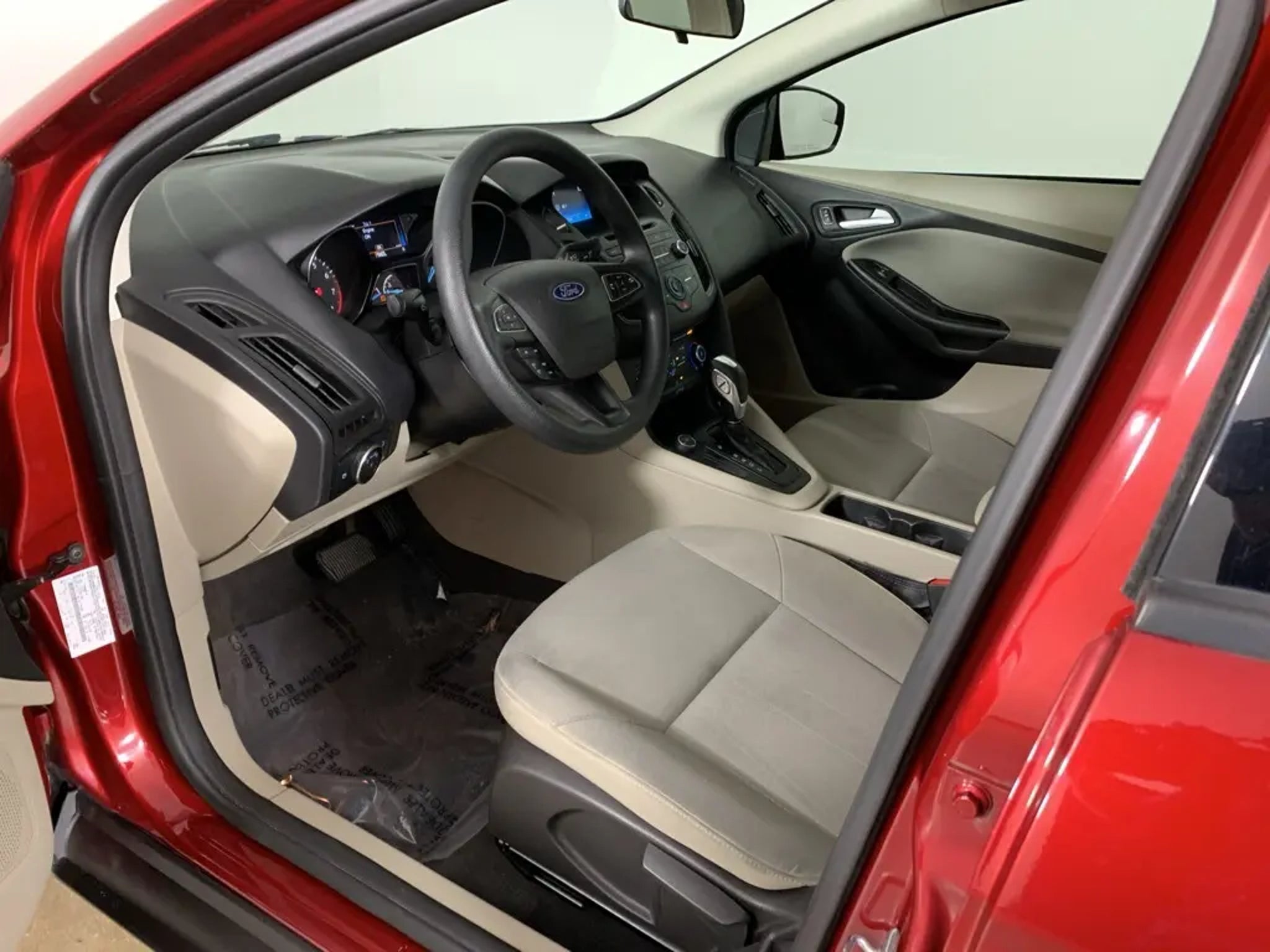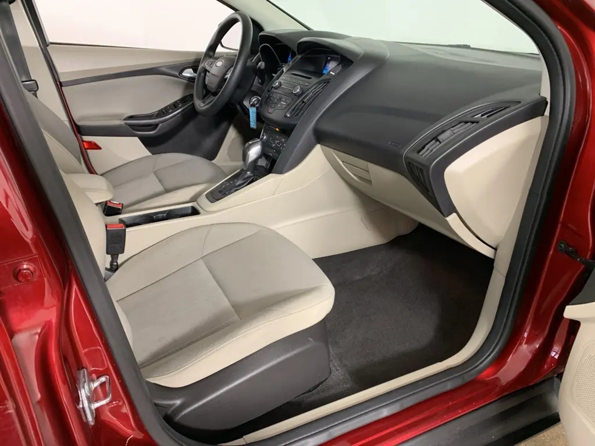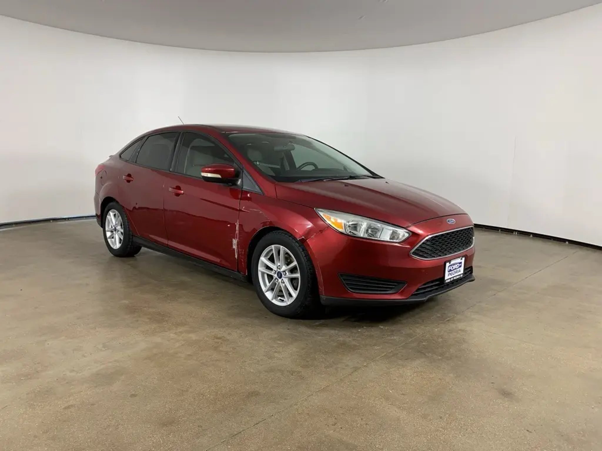 Ruby Red Tinted Clearcoat 2015 Ford Focus SE Sedan with Medium Light Stone cloth interior - available now at Ford of Peoria in Peoria, IL. This Ford Focus SE offers sporty styling, excellent fuel efficiency, and easy-to-drive performance, making it a smart choice for commuters, students, or anyone looking for reliable transportation with modern features.Powered by a 2.0-liter 4-cylinder engine paired with a 6-speed automatic transmission, the Focus delivers smooth acceleration and impressive efficiency for daily driving. Its compact size makes it easy to maneuver in city traffic and parking lots while still providing a comfortable and composed ride on the highway.Performance and efficiency2.0-liter 4-cylinder engine provides responsive and efficient performance6-speed automatic transmission for smooth shiftingFront-wheel drive offers predictable handling and everyday confidenceExcellent fuel economy ideal for commuting and daily useExterior featuresRuby Red Tinted Clearcoat exterior with sleek, modern designAutomatic headlamps and body-color exterior mirrorsChrome grille accents add a refined touchCompact sedan profile for easy parking and urban drivingInterior comfort and technologyMedium Light Stone cloth seating with supportive front bucketsAir conditioning and power windows for everyday comfortTilt-and-telescoping steering wheel with audio controlsSYNC voice-activated system with Bluetooth connectivityAM/FM/CD audio system with steering-wheel-mounted controlsRear seat folds down to expand cargo versatilitySafety and driver assistanceAdvanceTrac with Electronic Stability ControlAnti-lock braking system with brake assistDual front, side, and side-curtain airbagsTire Pressure Monitoring SystemRearview camera functionality depending on equipmentConditionThis Focus SE presents in solid overall condition and offers a dependable, fuel-efficient driving experience with proven Ford engineering.Why buy from Ford of PeoriaFamily-owned Bob Loquercio Auto Group dealershipTransparent, no-pressure buying experienceOn-site finance professionals ready to assistConvenient Peoria location with full sales, service, and parts supportCall Ford of Peoria today at 309-693-2525 to schedule your test drive, or visit us at 2211 W Pioneer Parkway in Peoria, IL. This 2015 Ford Focus SE is ready to hit the road - stop by and check it out today.