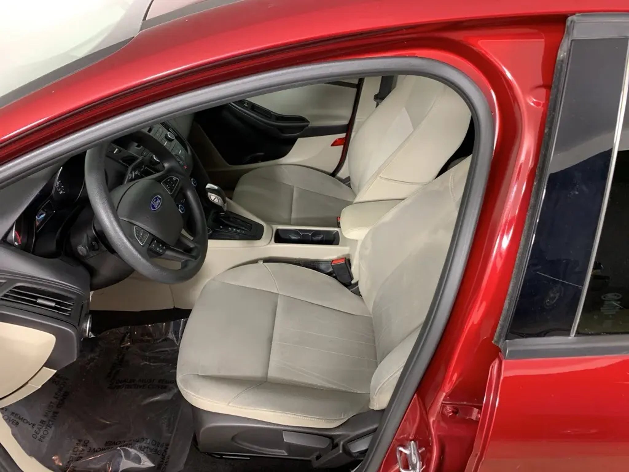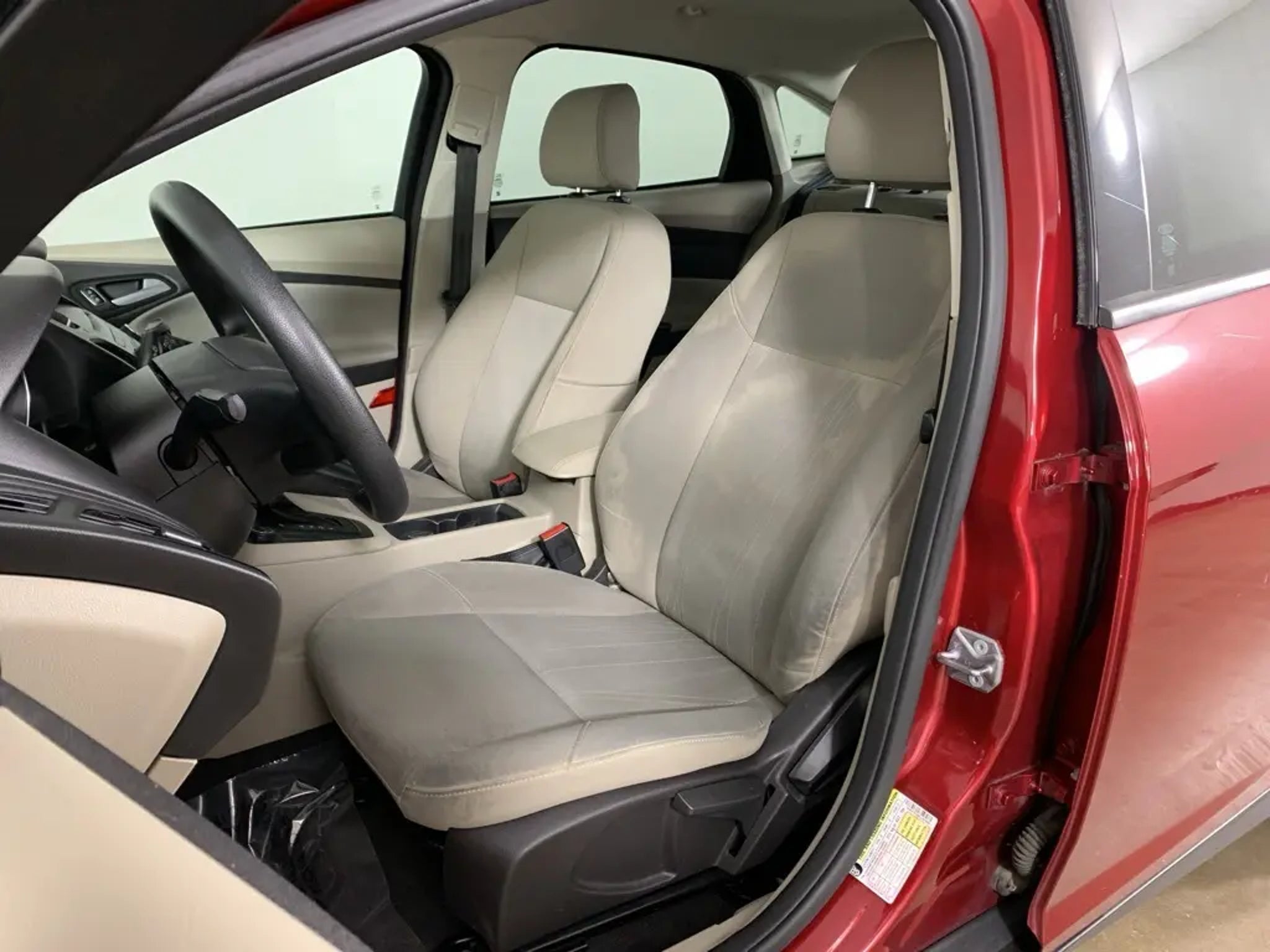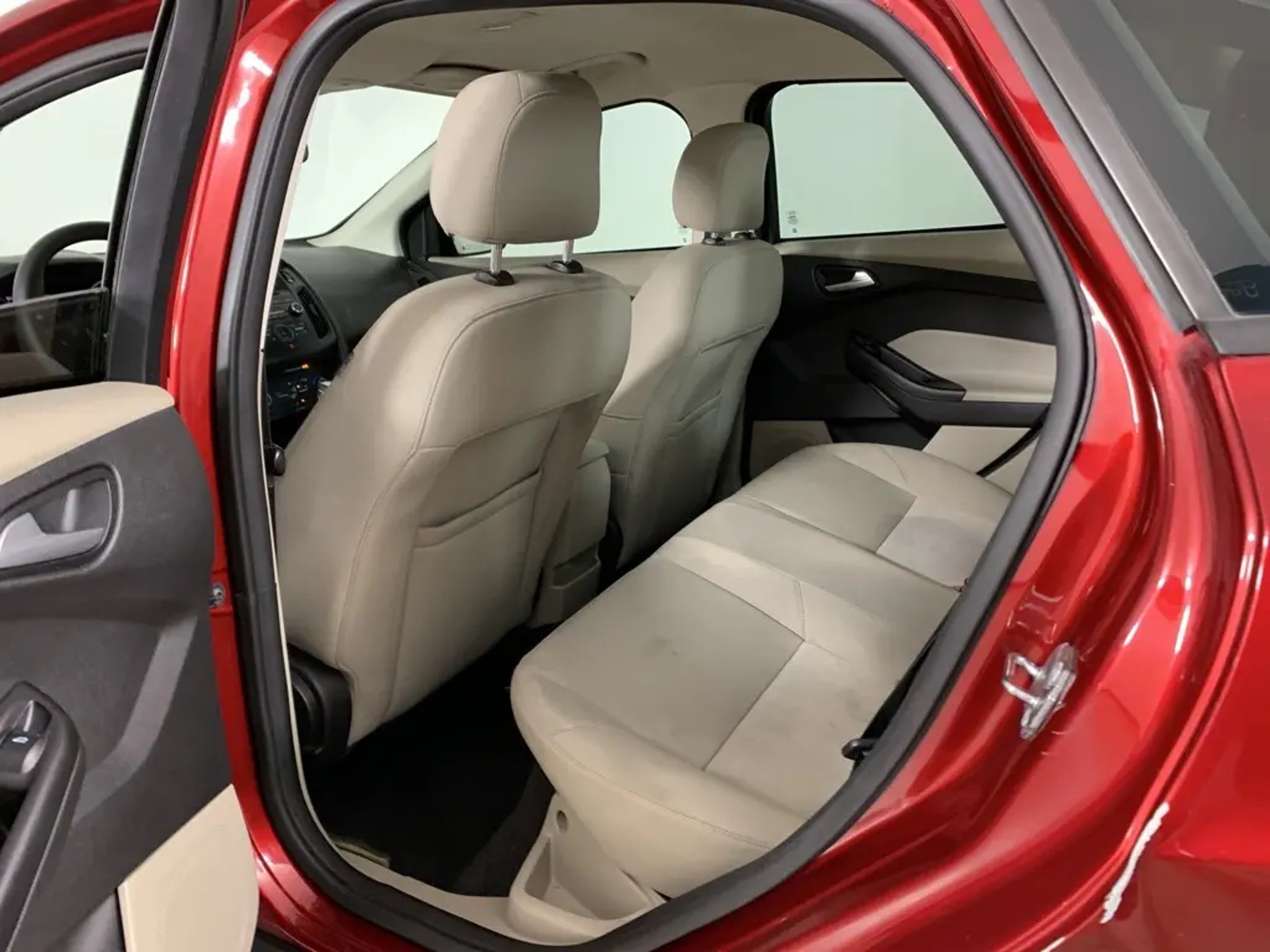 Ruby Red Tinted Clearcoat 2015 Ford Focus SE Sedan with Medium Light Stone cloth interior - available now at Ford of Peoria in Peoria, IL. This Ford Focus SE offers sporty styling, excellent fuel efficiency, and easy-to-drive performance, making it a smart choice for commuters, students, or anyone looking for reliable transportation with modern features.Powered by a 2.0-liter 4-cylinder engine paired with a 6-speed automatic transmission, the Focus delivers smooth acceleration and impressive efficiency for daily driving. Its compact size makes it easy to maneuver in city traffic and parking lots while still providing a comfortable and composed ride on the highway.Performance and efficiency2.0-liter 4-cylinder engine provides responsive and efficient performance6-speed automatic transmission for smooth shiftingFront-wheel drive offers predictable handling and everyday confidenceExcellent fuel economy ideal for commuting and daily useExterior featuresRuby Red Tinted Clearcoat exterior with sleek, modern designAutomatic headlamps and body-color exterior mirrorsChrome grille accents add a refined touchCompact sedan profile for easy parking and urban drivingInterior comfort and technologyMedium Light Stone cloth seating with supportive front bucketsAir conditioning and power windows for everyday comfortTilt-and-telescoping steering wheel with audio controlsSYNC voice-activated system with Bluetooth connectivityAM/FM/CD audio system with steering-wheel-mounted controlsRear seat folds down to expand cargo versatilitySafety and driver assistanceAdvanceTrac with Electronic Stability ControlAnti-lock braking system with brake assistDual front, side, and side-curtain airbagsTire Pressure Monitoring SystemRearview camera functionality depending on equipmentConditionThis Focus SE presents in solid overall condition and offers a dependable, fuel-efficient driving experience with proven Ford engineering.Why buy from Ford of PeoriaFamily-owned Bob Loquercio Auto Group dealershipTransparent, no-pressure buying experienceOn-site finance professionals ready to assistConvenient Peoria location with full sales, service, and parts supportCall Ford of Peoria today at 309-693-2525 to schedule your test drive, or visit us at 2211 W Pioneer Parkway in Peoria, IL. This 2015 Ford Focus SE is ready to hit the road - stop by and check it out today.