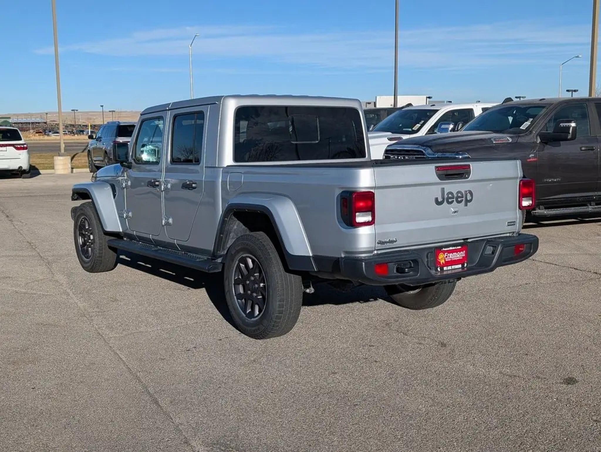 Certified. Silver Zynith Clearcoat 2023 Jeep Gladiator Overland 4WD 8-Speed Automatic 3.6L V6 24V VVT Well Maintained Badge, Clean Carfax No Accident, Carfax One Owner, 3.6L V6 24V VVT, 8-Speed Automatic, 4WD, Silver Zynith Clearcoat, Quick Order Package 24G Overland (DISC). Quick Order Package 24G Overland (DISC), Fremont Certified Certified, 3.6L V6 24V VVT, 8-Speed Automatic, 4WD, Silver Zynith Clearcoat, 3.73 Rear Axle Ratio, 4-Wheel Disc Brakes, 9 Speakers, ABS brakes, Air Conditioning, Alloy wheels, AM/FM radio: SiriusXM, Apple CarPlay/Android Auto, Auto-dimming Rear-View mirror, Automatic temperature control, Body Color 3-Piece Hard Top, Brake assist, Compass, Delay-off headlights, Driver door bin, Driver vanity mirror, Dual front impact airbags, Dual front side impact airbags, Electronic Stability Control, Emergency communication system, Freedom Panel Storage Bag, Front anti-roll bar, Front Bucket Seats, Front Center Armrest w/Storage, Front dual zone A/C, Front fog lights, Front License Plate Bracket, Front reading lights, Fully automatic headlights, Garage door transmitter, Heated door mirrors, Illuminated entry, Integrated roll-over protection, Low tire pressure warning, MOPAR Black Tubular Side Steps (DISC), MOPAR Spray In Bedliner, Navigation System, No Soft Top, Normal Duty Plus Suspension (DISC), Occupant sensing airbag, Outside temperature display, Overland Cloth Bucket Seats (DISC), Panic alarm, ParkView Rear Back-Up Camera, Passenger door bin, Passenger vanity mirror, Power door mirrors, Power steering, Power windows, Radio data system, Radio: Uconnect 4C Nav w/8.4 Display, Rear anti-roll bar, Rear reading lights, Rear Sliding Window, Rear Window Defroster, Remote keyless entry, Security system, Selec-Speed Control, Speed control, Split folding rear seat, Steering wheel mounted audio controls, Tachometer, Telescoping steering wheel, Tilt steering wheel, Traction control, Trip computer, Variably intermittent wipers, Voltmeter, and Wheels: 18 x 7.5 Granite Crystal Aluminum (DISC) Recent Arrival! Certification Program Details: FREMONT CERTIFIED 3 months/3,000 miles Limited Powertrain Warranty VISIT US TODAY At Fremont Motor Companies, We Are Wyoming! We're not just about cars; we're about growing people and communities through relationship-driven transportation. Reach out to see what we offer and discover the perfect vehicle for you. Note: Prices exclude additional fees such as government taxes, finance charges, a dealer documentation fee of $599, emissions testing fees, and others. Prices and details might change, so please contact us for the latest information. WE DELIVER, INQUIRE FOR DETAILS!