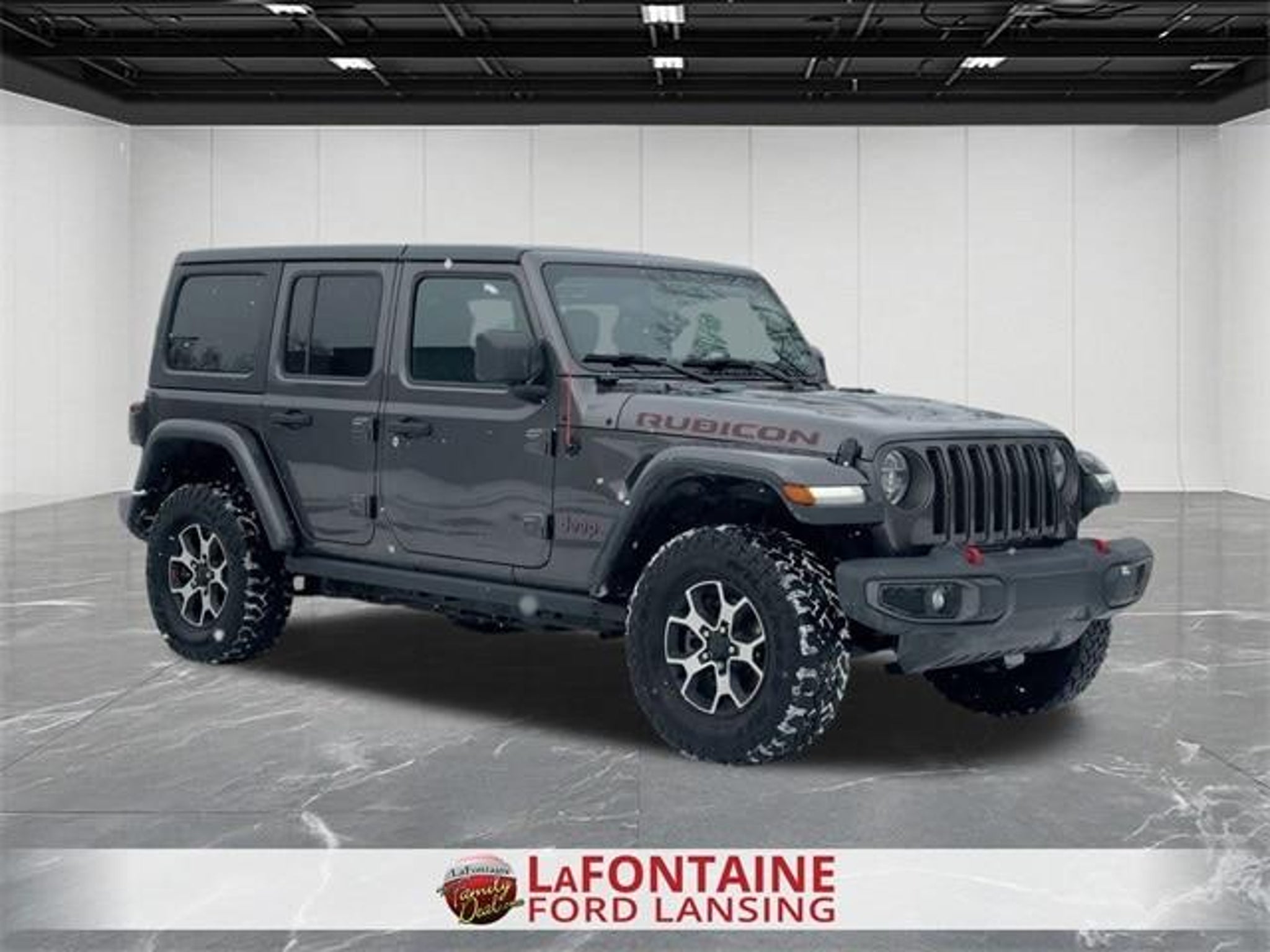 2020 Jeep Wrangler Unlimited Rubicon 4WD Granite Crystal Metallic Clearcoat Odometer is 22770 miles below market average! Clean CARFAX. Back-Up Camera, Push Button Start, 8.4 Radio & Premium Audio Group, 8.4 Touchscreen Display, Alpine Premium Audio System, Apple CarPlay/Android Auto, BF Goodrich Brand Tires, Black 3-Piece Hard Top, Blind Spot & Cross Path Detection, Cold Weather Group, Delay-off headlights, Freedom Panel Storage Bag, Front LED fog lights, Fully automatic headlights, Garage door transmitter, GPS Navigation, HD Radio, Heated door mirrors, Heated Front Seats, Heated Steering Wheel, LED Taillamps, No Soft Top, ParkSense Rear Park Assist System, ParkView Rear Back-Up Camera, Performance Suspension, Quick Order Package 23R, Quick Order Package 24R, Radio: Uconnect 4C Nav w/8.4 Display, Rear Window Defroster, Rear Window Wiper/Washer, Remote keyless entry, Remote Proximity Keyless Entry, Remote Start System, Safety Group, SiriusXM Traffic Plus, SiriusXM Travel Link, Speed control, Variably intermittent wipers, Wheels: 17 x 7.5 Machined w/Black Pockets. Settle into the season with a winter-ready ride from LaFontaine Ford Lansing. Our selection of quality pre-owned vehicles is built for comfort, confidence, and everyday dependability. Each one is carefully inspected and priced with your budget in mind ? all backed by the Family Deal, where you?re treated with honesty and genuine care. Find the vehicle that helps you feel at home on every snowy Michigan road.