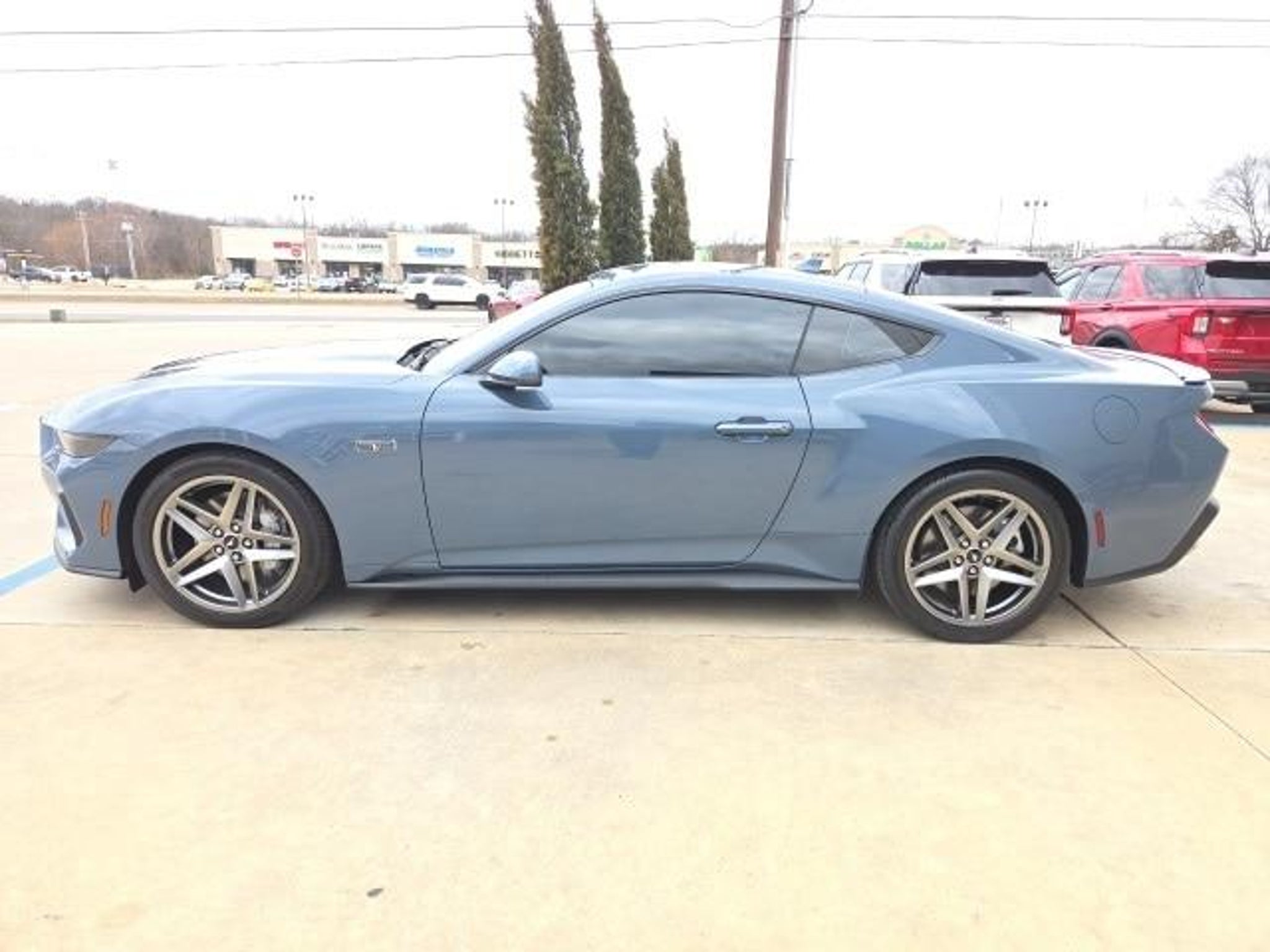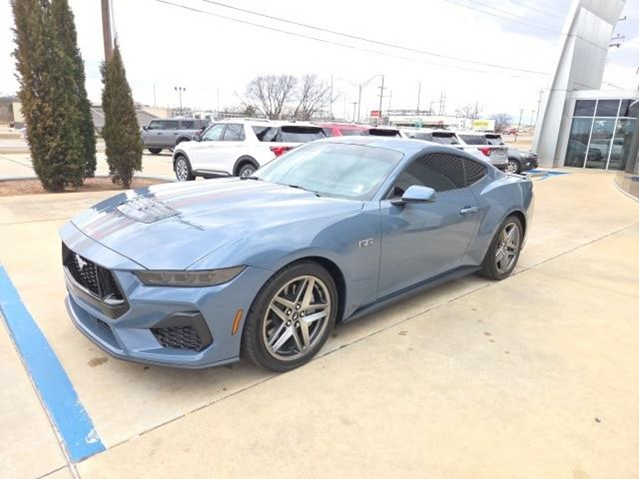 Recent Arrival! 2025 Ford Mustang GT Premium ONE OWNER, CLEAN CARFAX, LOCAL TRADE, NAVIGATION, LEATHER SEATS, BLUETOOTH, REAR VIEW CAMERA, REMOTE START, KEYLESS ENTRY, BLIND SPOT MONITOR, SATELLITE RADIO, KEYLESS IGNITION, 3.55 LIMITED SLIP, OVER THE TOP RACING STRIPE, 19X8.5 PREMIER POLISHED ALUMINUM WHEEL, Integrated Turn Signals, Over-the-Top Racing Stripe, Wheels: 19 x 8.5 Premier Polished Aluminum. 5.0L V8 Ti-VCT RWD Equipment Group 401A High Package (Integrated Turn Signals, Driver Seat & Mirrors Memory, Illuminated Door-Sill Scuff Plates, and Leather-Trimmed Bucket Seats w/Color Accents), Ford Co-Pilot360 Assist (Connected Navigation and Pre-Collision Assist w/Automatic Emergency Braking), Security Package (Active Anti-Theft System, Locking Center Console, and Wheel Locking Kit), Over-the-Top Racing Stripe, Wheels: 19 x 8.5 Premier Polished Aluminum, 3.55 Limited Slip Rear Axle, 4-Wheel Disc Brakes, 9 Speakers, ABS brakes, Air Conditioning, Alloy wheels, AM/FM radio: SiriusXM with 360L, AM/FM Stereo, Auto High-beam Headlights, Auto-dimming Rear-View mirror, Automatic temperature control, Brake assist, Bumpers: body-color, Climate Controlled Heated/Cooled Front Seats, Compass, Delay-off headlights, Driver door bin, Driver vanity mirror, Dual front impact airbags, Dual front side impact airbags, Electronic Stability Control, Emergency communication system: 911 Assist, Exterior Parking Camera Rear, Four wheel independent suspension, Front anti-roll bar, Front Bucket Seats, Front Center Armrest, Front dual zone A/C, Front reading lights, Fully automatic headlights, Garage door transmitter, HD Radio, Heated door mirrors, Heated front seats, Heated steering wheel, Illuminated entry, Instrument Panel w/Accent Stitch, Internet access capable: FordPass Connect, Knee airbag, Leather Shift Knob, Leather steering wheel, Leather-Trimmed Bucket Seats, Low tire pressure warning, Occupant sensing airbag, Outside temperature display, Overhead airbag, Overhead console, Panic alarm, Passenger door bin, Passenger vanity mirror, Power door mirrors, Power driver seat, Power passenger seat, Power steering, Power windows, Radio data system, Rain sensing wipers, Rear anti-roll bar, Rear Parking Sensors, Rear window defroster, Remote keyless entry, SiriusXM w/360L, Speed control, Speed-sensing steering, Speed-Sensitive Wipers, Split folding rear seat, Spoiler, Sport steering wheel, Steering wheel mounted audio controls, SYNC 4, Tachometer, Telescoping steering wheel, Tilt steering wheel, Traction control, Trip computer, Tu