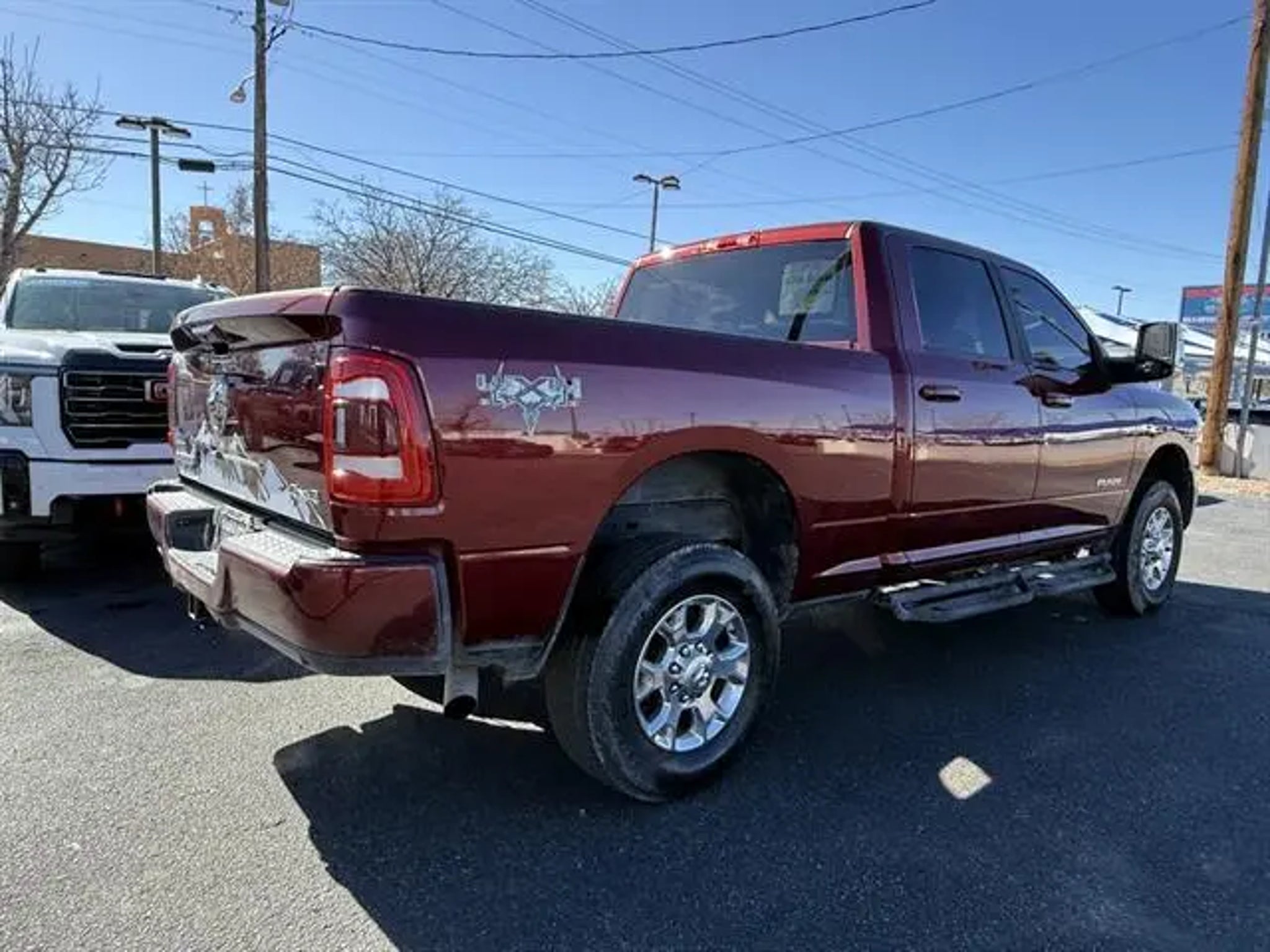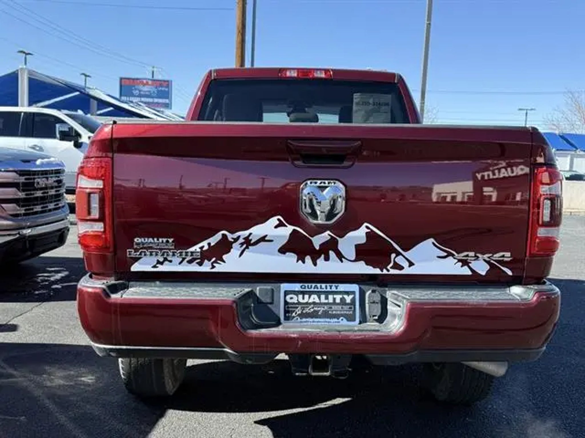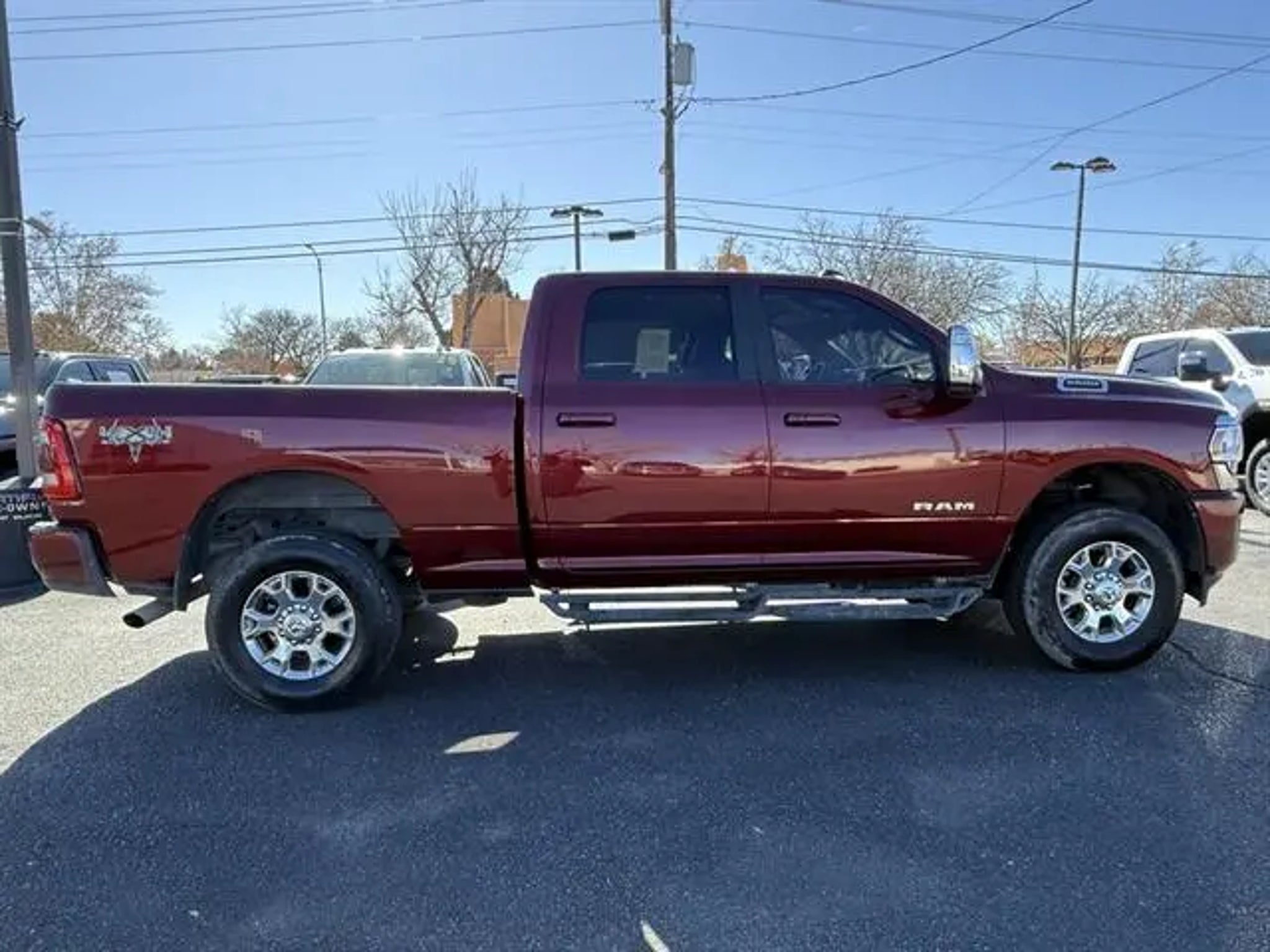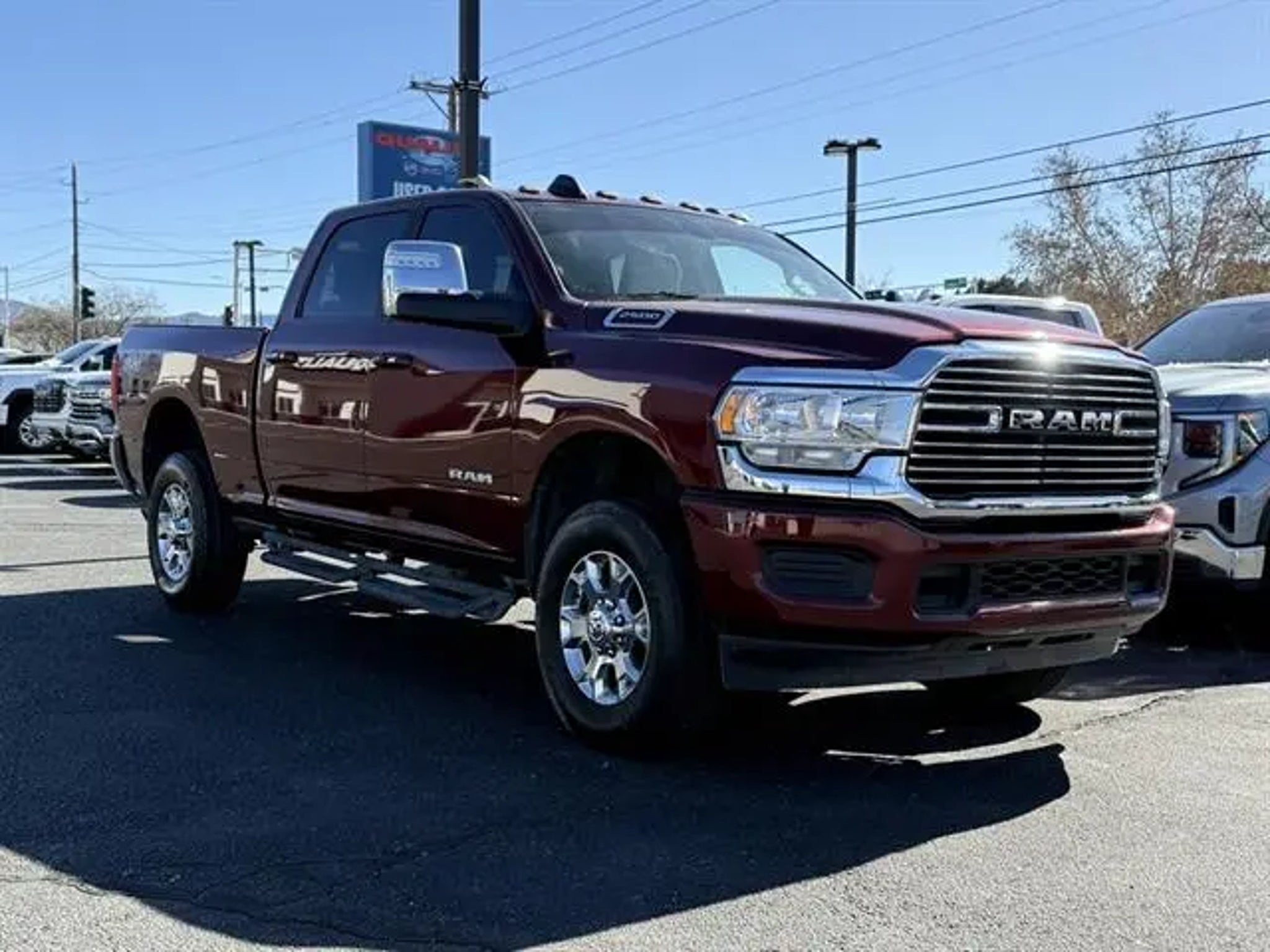 Family Owned and Operated Since 1957! Clean CARFAX. Odometer is 11998 miles below market average! Delmonico Red Pearlcoat 2023 Ram 2500 Laramie 4WD 8-Speed Automatic 6.4L V8 10 Speakers, 115V Auxiliary Rear Power Outlet, 2 Way Rear Headrest Seat, 3.73 Axle Ratio, 4 Way Front Headrests, 4-Wheel Disc Brakes, 4G LTE Wi-Fi Hot Spot, ABS brakes, Active Noise Control System, Air Conditioning, Alloy wheels, AM/FM radio: SiriusXM with 360L, Apple CarPlay, Apple CarPlay/Android Auto, Auto-dimming Rear-View mirror, Automatic temperature control, Brake assist, Bumpers: body-color, Chrome Exterior Mirrors, Clearance Lamps, Compass, Connectivity - US/Canada, Delay-off headlights, Driver door bin, Driver vanity mirror, Dual front impact airbags, Dual front side impact airbags, Electronic Stability Control, Electronically Controlled Throttle, Exterior Mirrors w/Heating Element, Front anti-roll bar, Front Center Armrest w/Storage, Front dual zone A/C, Front License Plate Bracket, Front reading lights, Front Seat Back Map Pockets, Fully automatic headlights, Garage door transmitter, Global Telematics Box Module (TBM), Google Android Auto, GPS Antenna Input, Heated door mirrors, Heated Front Seats, Heated front seats, Heated Steering Wheel, Heated steering wheel, Illuminated entry, Integrated Voice Command w/Bluetooth, Leather steering wheel, Leather Trim 40/20/40 Bench Seat, Low tire pressure warning, Navigation System, Occupant sensing airbag, Outside temperature display, Overhead airbag, Overhead console, Panic alarm, ParkView Rear Back-Up Camera, Passenger door bin, Passenger vanity mirror, Power 2-Way Driver Lumbar Adjust, Power 2-Way Passenger Lumbar Adjust, Power Adjust 8-Way Driver Seat, Power Adjust 8-Way Front Passenger Seat, Power Adjust Mirrors, Power door mirrors, Power driver seat, Power passenger seat, Power steering, Power windows, Quick Order Package 2GH Laramie, Radio data system, Radio: Uconnect 5 Nav w/8.4" Display, Rear 60/40 Folding Seat, Rear anti-roll bar, Rear reading lights, Rear seat center armrest, Rear step bumper, Rear window defroster, Remote keyless entry, Security system, SiriusXM Radio Service, Speed control, Split folding rear seat, Steering wheel mounted audio controls, Tachometer, Tilt steering wheel, Tip Start, Traction control, Trip computer, Turn signal indicator mirrors, Variably intermittent wipers, Vendor Painted Cargo Box, Vendor Painted Cargo Box Tracking, Voltmeter, Wheels: 18" x 8.0" Polished Aluminum. Home of the One-Owner Trade! Great effort is made to make sure all equipment is accurately described. All equipment must be verified by purchaser. Vehicle Price does not change based on vehicle description and equipment listed.