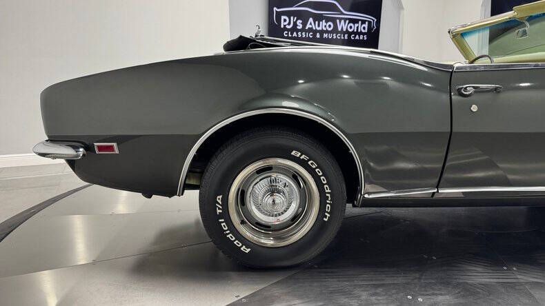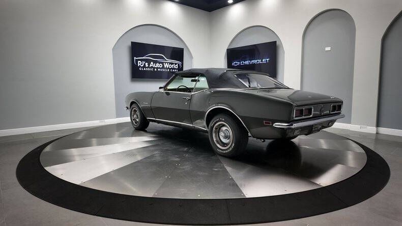 PJ's Auto World is pleased to offer this 1968 Chevrolet Camaro Rally Sport Convertible for Sale. Numbers Matching 327 Cu In ME Suffix Code V8 engine, detailed engine bay, detailed undercarriage with painted frame, frame-off restoration in 2014, Powerglide automatic transmission, power steering, 14 Rally Wheels with BF Goodrich white letter Radial T/A Tires, Code V Sequoia Green exterior, working vacuum hideaway headlights, driver's chrome mirror, black power convertible top with gold boot cover, Code 721 gold custom bucket seats, center console with staple shifter, 3-spoke wood steering wheel, Restosound AM/FM radio. Here is one of the BEST looking cars GM ever put on the road! Don't miss your opportunity to own this American Icon and be the envy of your neighborhood! With over 45 years of dedicated service to the Collector Car Community, our team is eager to answer any questions you may have. Finance options available and worldwide shipping can easily be arranged. Interesting trade-ins will also be considered.