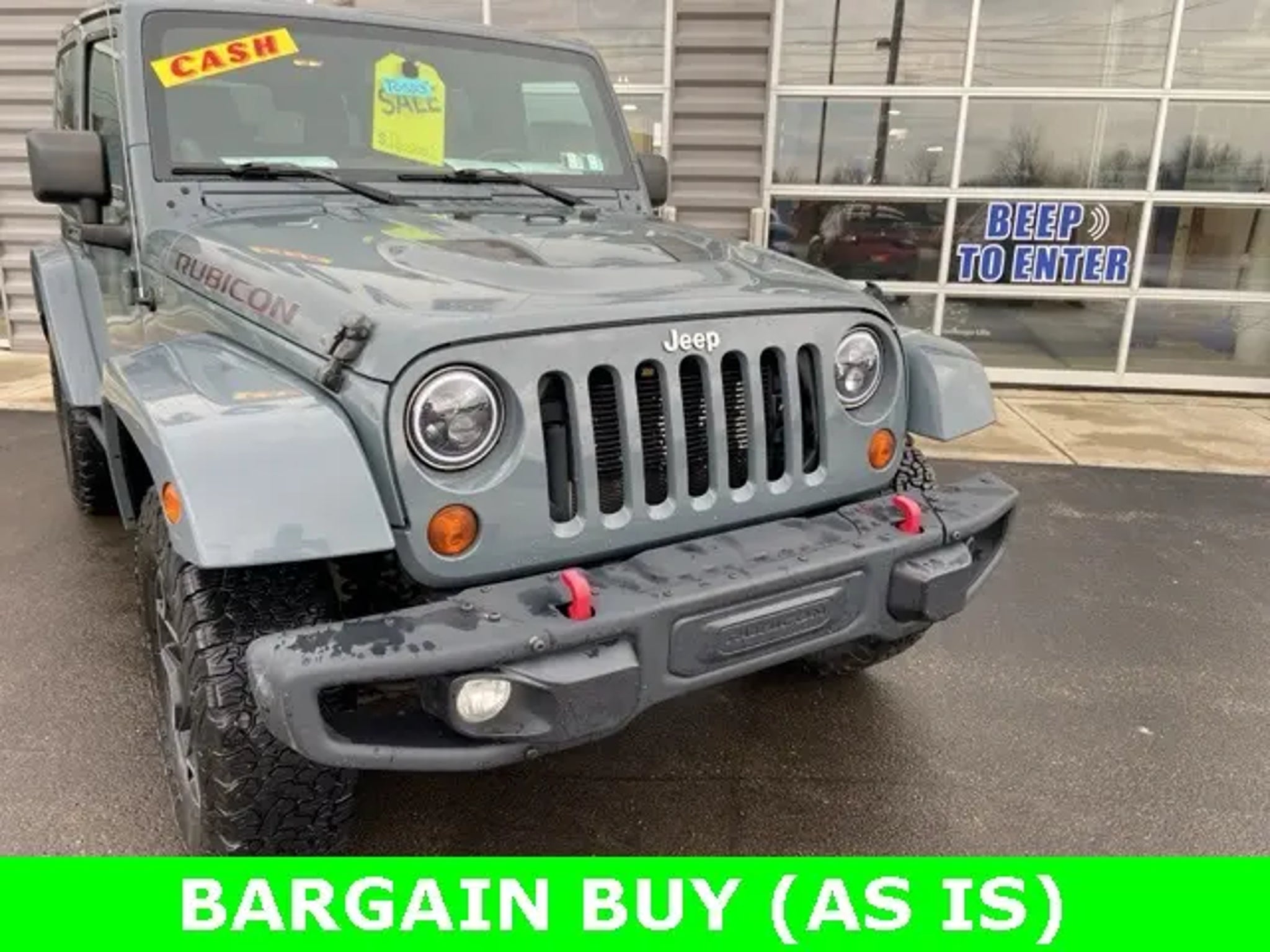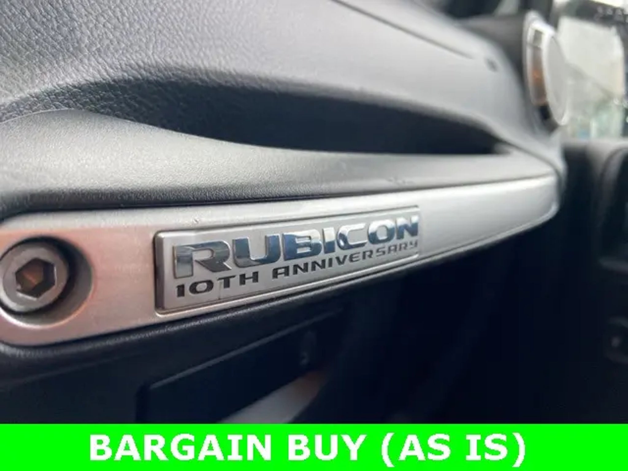 Recent Arrival! Priced below KBB Fair Purchase Price! 2013 Jeep Wrangler Rubicon Rubicon 3.6L V6 24V VVT 5-Speed Automatic 4WD RECENT TRADE IN, GOOD TIRES, GOOD BRAKES, BARGAIN BUY UNIT, AS IS, 40GB Hard Drive w/28GB Available, AM/FM radio: SIRIUS, Auto-Dimming Mirror w/Reading Lamp, Black Fuel Filler Door, CD player, Chrome/Leather Wrapped Shift Knob, Connectivity Group, Deep Tint Sunscreen Windows, Dual Top Group, Front 1-Touch Down Power Windows, GPS Navigation, Heated Front Seats, Hood w/Power Dome, IP Grab Handle w/10TH Anniversary, MOPAR Rock Rails, MOPAR Slush Mats, Power Convenience Group, Power Heated Mirrors, Power Locks, Premium Black Sunrider Soft Top, Premium EVIC Message Center, Quick Order Package 24J 10th Anniversary, Radio data system, Red Front & Rear Tow Hooks, Red Trail Rated Badge, Remote Keyless Entry, Rubicon 10TH Anniversary Badge, Rubicon 10TH Anniversary Edition, Rubicon 10TH Anniversary Leather Seats, Rubicon 4X4 Specs Plate, Rubicon Hood Decal, Security Alarm, Silver Interior Accents, Steel Front Bumper, Steel Rear Bumper, Sunrider Soft Top, Tire Pressure Monitoring Display, Trailer Tow Group, Trailer Tow w/4-Pin Connector Wiring, Vehicle Information Center, Wheels: 17 x 7.5 Rubicon 10TH Anniversary RD. Clean CARFAX. Awards: * 2013 KBB.com Best Resale Value Awards All prices are plus tax, title, license fee, and doc fee ($477).