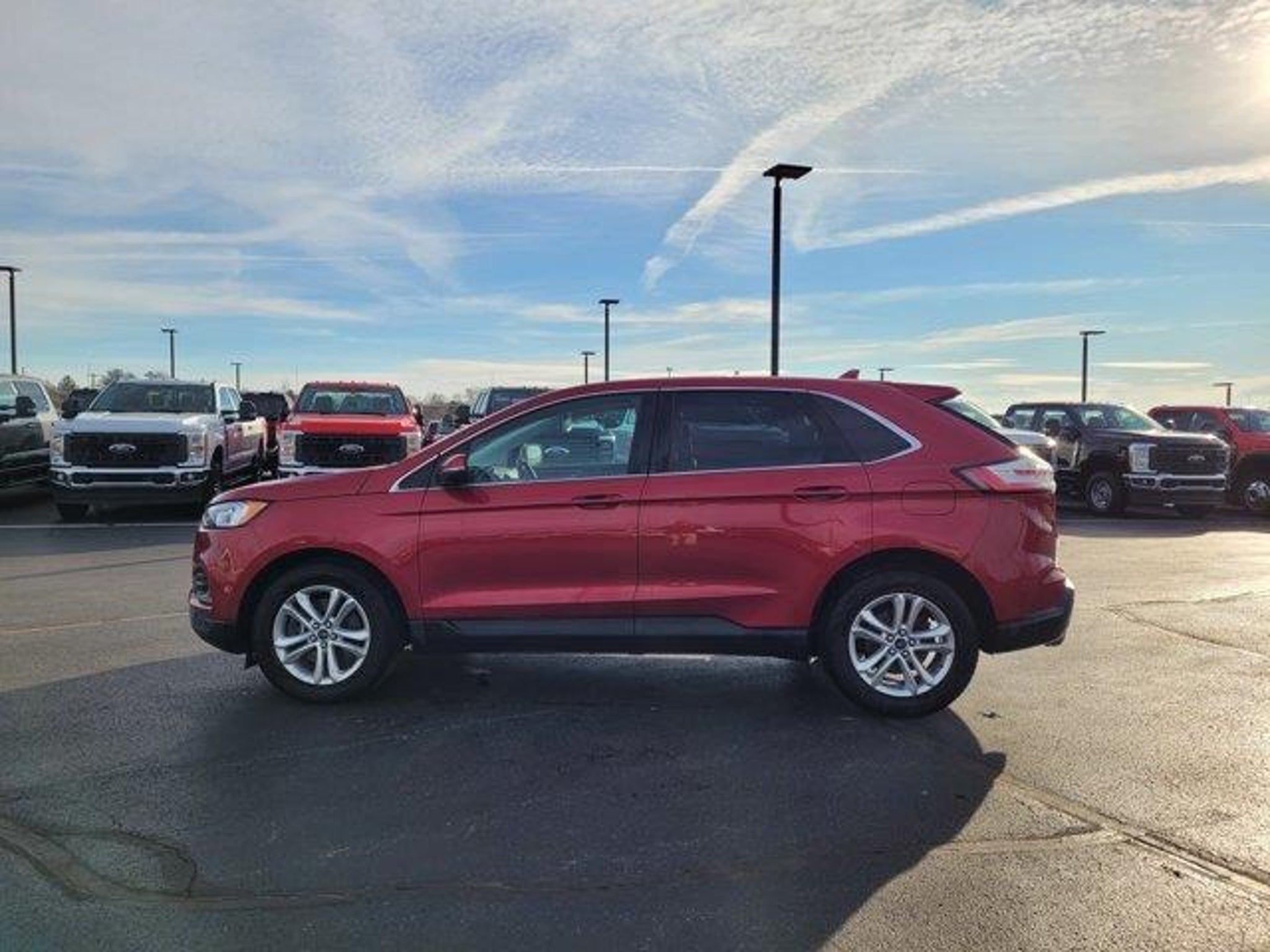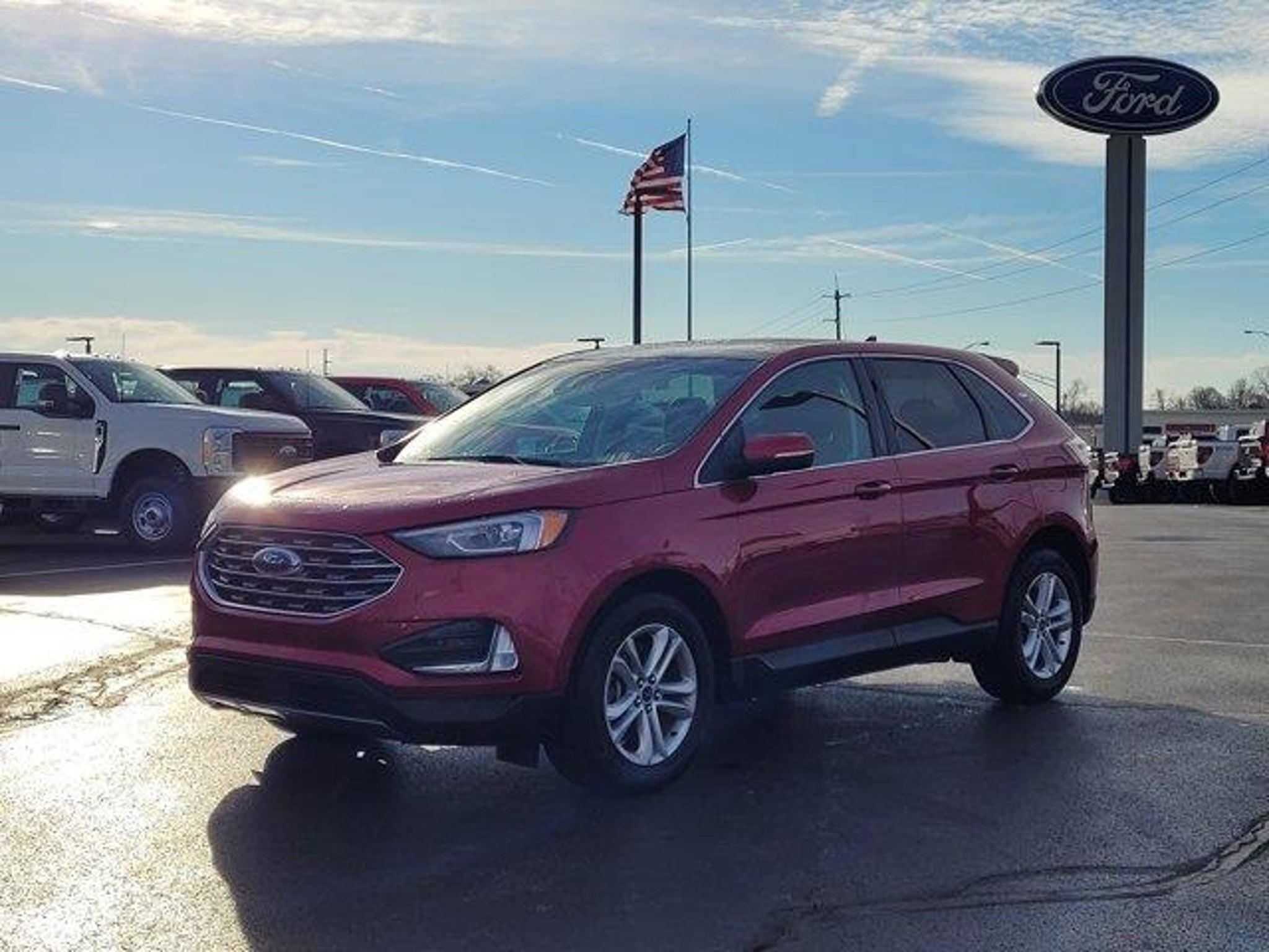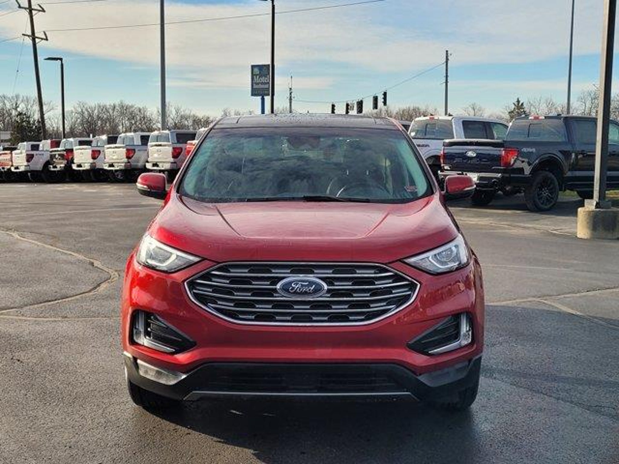 Recent Arrival! Odometer is 24,068 miles below market average!Rapid Red Metallic Tinted Clearcoat 2020 Ford Edge SEL AWDEcoBoost 2.0L I4 Turbocharged with 8-Speed AutomaticONE OWNER and CLEAN AUTOCHECK VEHICLE HISTORY REPORTThis Edge SEL combines comfort, technology, and capability in a stylish all-wheel-drive SUV.Key Packages and Features:Moonroof and Panoramic Vista RoofCold Weather Package Heated front seats and heated steering wheelConvenience Package Voice-activated touchscreen navigation, universal garage door opener, foot-activated hands-free liftgateEquipment Group 201A 18 Sparkle Silver-Painted Aluminum Wheels, 110V/150W AC Power Outlet, wireless charging padFord Co-Pilot360 Assist Adaptive cruise control with Stop & Go, lane centering, evasive steering assist, blind spot monitoring, rear cameraPremium Comfort & Technology Leather/ActiveX heated bucket seats, dual-zone climate control, 9-speaker premium audio system, SiriusXM w/Traffic & Travel LinkAdditional highlights include rear floor liners, roof rails, rain-sensing wipers, and remote start system.This vehicle has gone through a 146-point Mark Williams Auto Group inspection!Stop Searching, Start Calling Today!