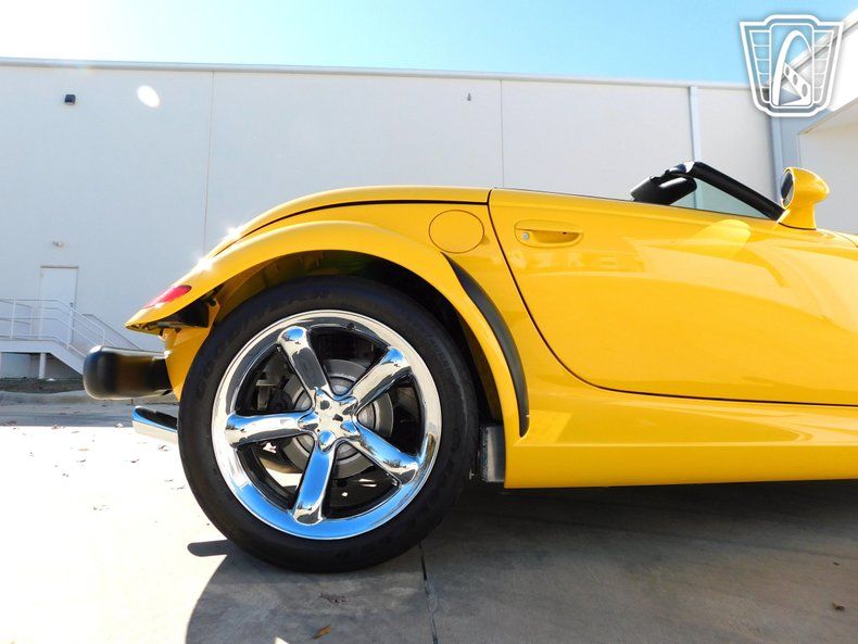 Gateway Classic Cars of Charlotte is excited to digitally present this iconic 2000 Plymouth Prowler, a head-turning masterpiece that blends retro styling with modern performance. This stunning vehicle, with its vibrant yellow exterior, is designed to make a bold statement wherever it goes. The Prowler's sleek and aerodynamic body is complemented by its distinctive aluminum wheels, adding a touch of elegance to its already striking appearance. Under the hood, you'll find a robust 3.5 Liter V6 engine, delivering an impressive 253 horsepower and 255 torque. Paired with a 4-speed automatic transmission with overdrive, this rear-wheel-drive roadster offers a smooth and exhilarating driving experience. Step inside to discover a luxurious black leather interior that exudes sophistication and comfort. The Prowler is equipped with a range of features designed to enhance your driving pleasure. Enjoy the convenience of power windows, power locks, and power steering, making every journey effortless. The air conditioning system ensures a comfortable cabin environment, no matter the weather outside. For those long drives, the cruise control feature allows you to maintain a steady speed with ease. Safety is a priority, with driver and passenger airbags, anti-lock brakes, and seatbelts providing peace of mind on every adventure. The Prowler's entertainment system includes an AM/FM radio, allowing you to enjoy your favorite tunes as you cruise down the road. The manual convertible top lets you embrace the open air, transforming your drive into an unforgettable experience. With its anti-theft system, you can rest assured that your prized possession is protected. The vehicle's radial tires and rear defogger further enhance its practicality and performance, ensuring a confident drive in various conditions. This Plymouth Prowler is engineered with precision, featuring a 24-valve, single overhead cam (SOHC) design and a compression ratio of 9.9:1. The combination of power brakes and a tilt steering wheel ensures responsive handling and control. Whether you're navigating city streets or embarking on a weekend getaway, this Prowler delivers an exhilarating ride that captures the essence of driving excitement. Embrace the spirit of the open road with this remarkable vehicle that continues to captivate enthusiasts and collectors alike.
