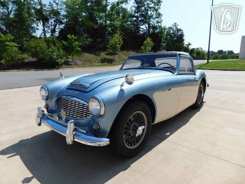 Gateway Classic Cars of Charlotte is proudly to digitally present, a classic icon of British motoring heritage, the 1961 Austin-Healey 3000 BT7, showcasing a striking blue and white exterior that captures attention and admiration on every journey. This automobile is a quintessential example of timeless design and engineering, embodying the spirit of the golden era of roadsters. The sophisticated exterior color combination is complemented by a sleek blue interior, creating a harmonious blend of style and elegance. Under the hood, this Austin-Healey is powered by a robust 2.9L inline-six engine, paired with a 4-speed overdrive manual transmission. This powertrain configuration offers drivers a dynamic and engaging driving experience, reminiscent of the open roads and spirited drives of the 1960s. The manual convertible top provides the flexibility to enjoy the sunshine and fresh air with ease, enhancing the overall driving experience. Inside, the blue vinyl interior presents a classic yet durable finish, maintaining the authentic look and feel that enthusiasts appreciate. The car is equipped with wire wheels, adding a touch of classic sophistication while contributing to the vehicle's distinctive and appealing profile. Each of these elements works in concert to provide an authentic and enjoyable driving experience that recalls the charm and thrill of a bygone era. This 1961 Austin-Healey 3000 BT7 stands as a testament to the enduring allure of vintage British sports cars, offering a unique opportunity to own a piece of automotive history. Whether for leisurely drives or as a prized addition to a collection, this vehicle promises a timeless connection to the elegance and excitement of classic motoring.