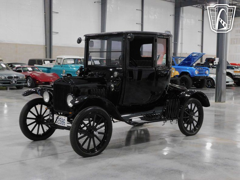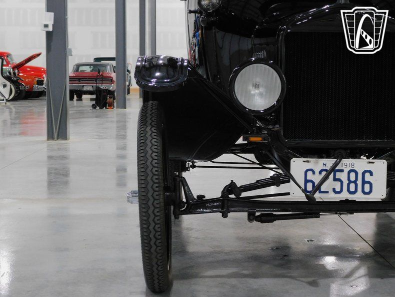 Step back in time with the iconic 1918 Ford Model T, a true testament to the innovation and craftsmanship of the early automotive era. This classic vehicle features a striking black exterior, a color that not only defined the era but also became synonymous with the Model T's timeless appeal. The sleek and understated design of the bodywork is complemented by the subtle elegance of a gray cloth interior, offering a glimpse into the style and comfort preferences of the early 20th century.