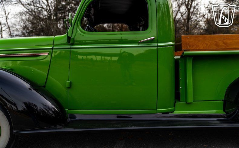 Introducing a classic piece of automotive history, the 1939 Chevrolet Pickup Master, a stunning example of vintage craftsmanship and timeless design. This remarkable vehicle boasts a striking green and black exterior that captures the essence of its era, exuding a sense of nostalgia and elegance.