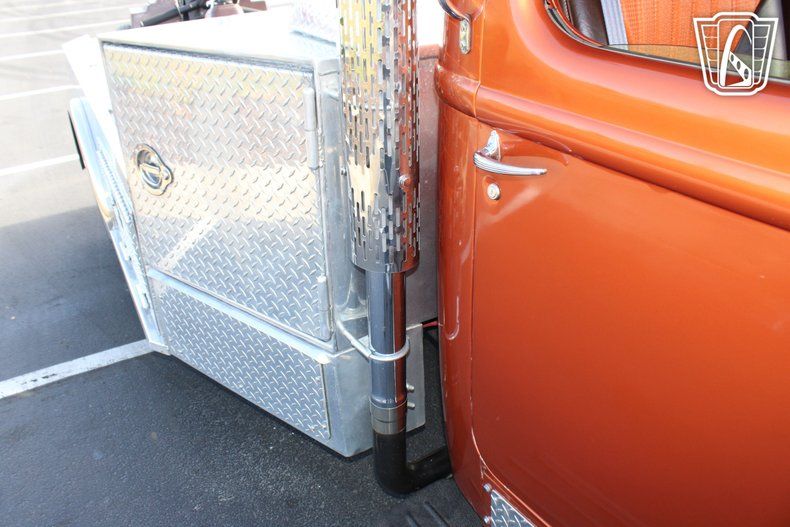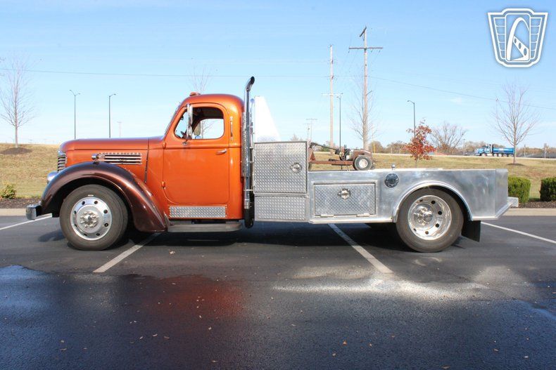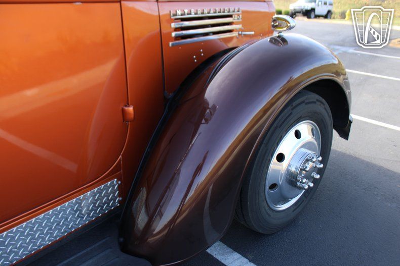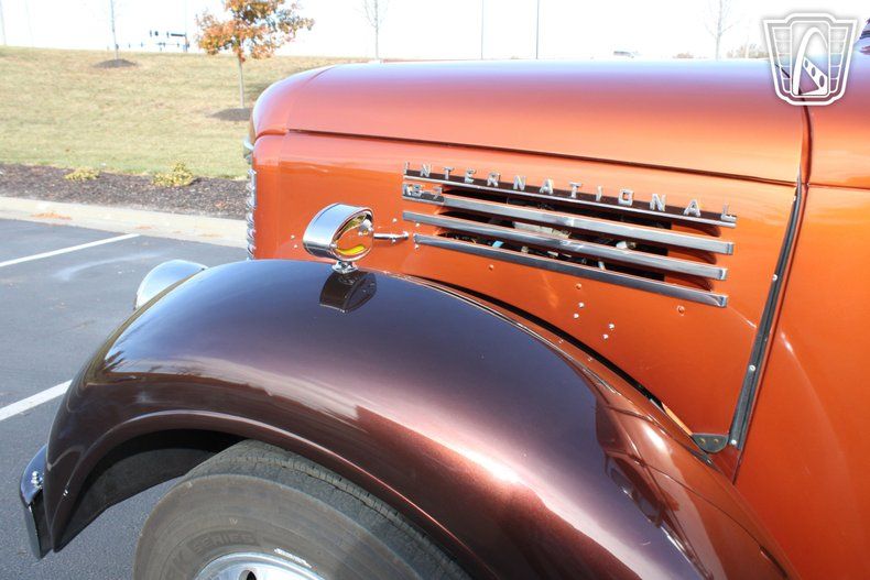 Gateway Classic Cars of Kansas City invites you to step back in time with a modern twist in this stunning 1948 International Harvester KB-7, a true masterpiece of vintage charm and contemporary performance. Drenched in a vibrant orange exterior, this classic truck is an undeniable head-turner, exuding a bold presence that captures the essence of a bygone era while embracing the conveniences of today. The striking color is complemented by a well crafted brown and orange interior, creating a seamless blend of style and comfort that invites you to take the wheel and embark on a journey like no other.