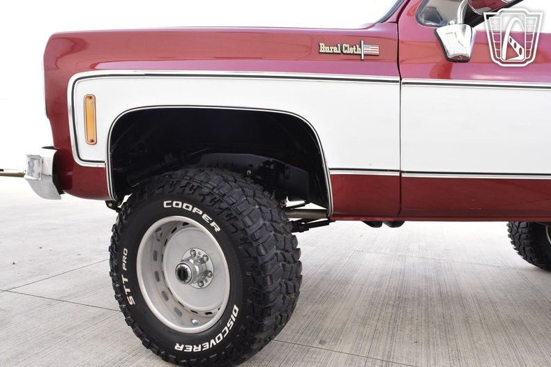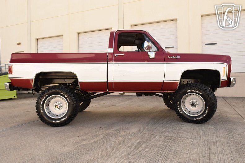 Gateway Classic Cars Houston Showroom is proud to present this 1976 Chevrolet K10. This 1976 Chevrolet K10 is a stunning example of classic American truck design, beautifully finished in a bold red exterior that commands attention. The truck's rugged yet refined appearance is enhanced by a lifted stance, giving it an aggressive and capable look that sets it apart on the road or the trail. This short bed K10 seamlessly captures the timeless appeal of a vintage 4x4 while offering the kind of power and presence that enthusiasts admire.