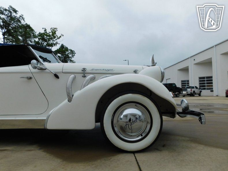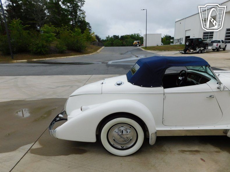 Step into a world of classic elegance and timeless design with this stunning 1976 Auburn Replica. This lovely vehicle boasts a pristine white exterior that exudes sophistication and charm. The striking contrast of the blue leather interior adds a touch of luxury and refinement, making every journey an experience to remember.