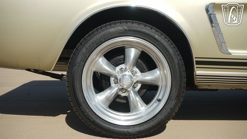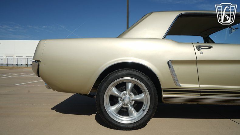 Gateway Classic Cars of Dallas is excited to offer this 1965 Ford Mustang Hardtop Coupe. Finished in Honey Gold exterior paint and paired with a gold vinyl interior. The hardtop body style is complemented by bucket seats with a center console, wheel arch moldings, and aluminum alloy wheels wrapped in radial tires. Seatbelts are present, and the interior is equipped with an AM/FM radio and air conditioning.