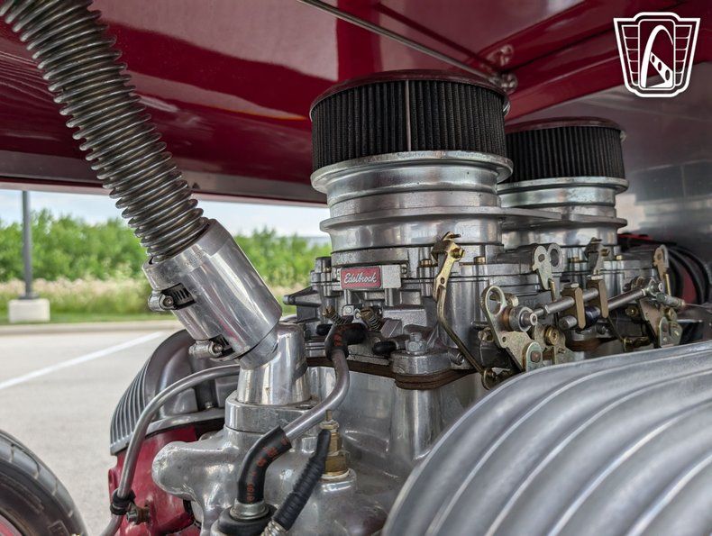 Under the hood, this Ford Roadster is powered by a formidable 409ci big block Chevrolet V8 engine, with dual quad carburetors delivering robust performance and a thrilling driving experience. Paired with a Muncie M22 Rock Crusher 4-speed manual transmission and a Hilibrand quick change differential, this vehicle offers an engaging and authentic connection to the road, allowing drivers to fully appreciate the power and precision of this classic machine.