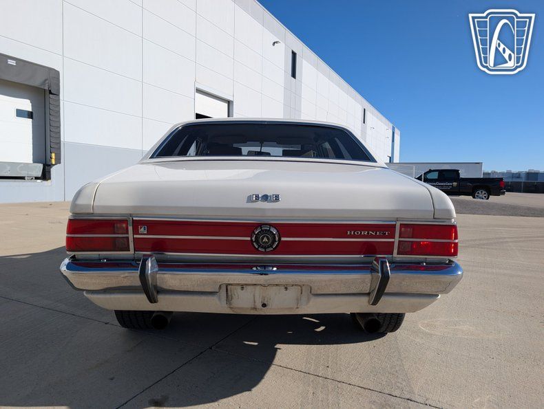 Safety and comfort are further enhanced with the inclusion of seatbelts and radial tires, providing peace of mind on the road. The vinyl interior not only adds to the vehicle's classic charm but also offers durability and ease of maintenance. This tribute to the AMC Hornet SC/360 is a wonderful blend of style, performance, and nostalgia, making it a standout choice for enthusiasts of classic American cars.