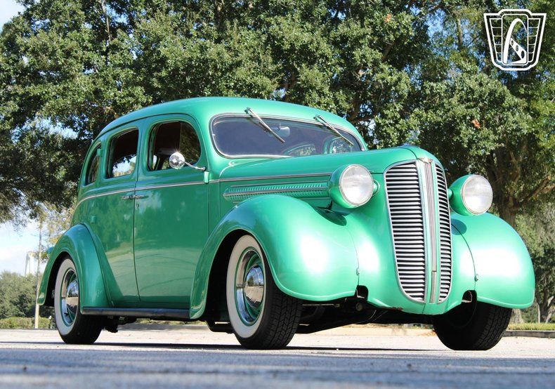 Introducing a classic piece of automotive history, the 1937 Dodge Touring Sedan, in a striking green exterior that captures the essence of its era. This vintage beauty is not just a feast for the eyes but also a testament to the timeless design and engineering prowess of the late 1930s. Complementing its vibrant exterior is a tasteful tan interior, offering a warm and inviting atmosphere that enhances every journey.