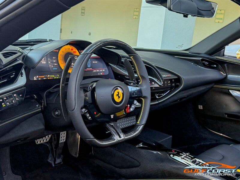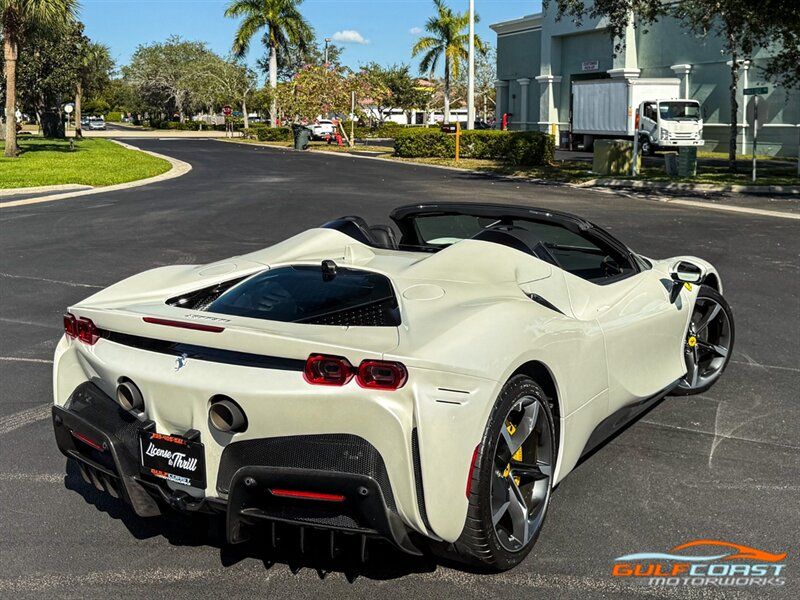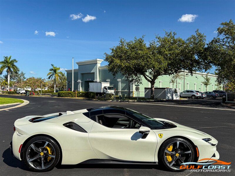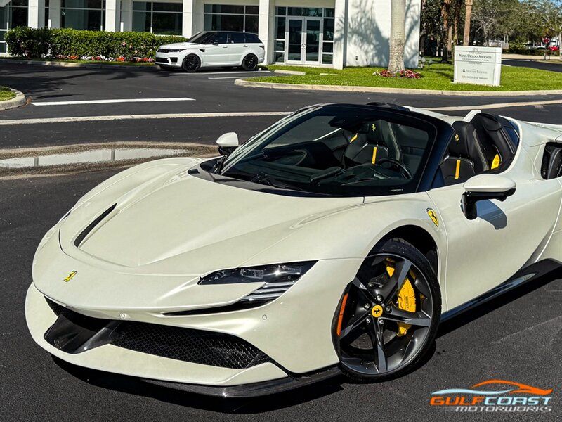 "2024 Ferrari SF90 Spider. Bianco Italia Exterior with Tetto Nero Interior. Features Include: 986 Horsepower Combined Output Twin Turbo 3.9L V8 Engine e4WD PHEV, 7.9 kWh Lithium Ion Battery, Eight-Speed F1 Dual-Clutch Automatic Transmission, F1-TRAC Traction Control/E-Diff 3, SCME-FrS Magnetorheological Dampers, 20"" Diamond Polished Forged Wheels, CCM-Carbon Ceramic Brake System, Yellow Brake Calipers, AFS System America, Back Radar, Carbon Fiber Side Air Splitter, Rear Diffuser In Carbon Fiber, Carbon Fiber Under Door Cover, Suspension Lifter, Full LED Headlights, LED Tail Lights, LED DRLs, Front & Rear Parking Sensors, Rear Parking Camera, Advanced Front Driving Camera, Keyless Access & Ignition with Push To Start, Carbon Fiber Driver Zones+LEDS, Carbon Fiber Door Panels, Carbon Fiber Upper Tunnel Trim, Colored Inner Details, CLDT With Special Leather, Colored Safety Belts, Carbon Fiber Dashboard Inserts, Leather Wrapped Multifunctional Steering Wheel, SiriusXM Radio Capable, Smartphone Integration, Bluetooth Phone & Audio, Navigation, Dual Zone Automatic Climate Control. Priced at Only $609,995. Financing and leasing available. We ship worldwide. We pay top dollar for lightly used sports cars, Call or text Our Product Specialists today at 239-522-2262 or email at sales@gcmworks.com. Fees and Taxes: $1199.00 Doc Fee on all Purchases. Out of state buyers are responsible for all state, county, city taxes and fees, as well as title/registration fees in the state that the vehicle will be registered."