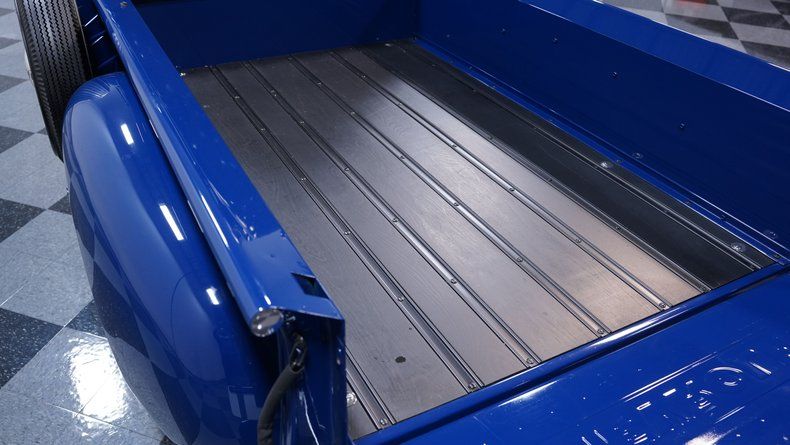 The interior is in very clean condition and echoes the same optimized vintage theme shown outside the doors. You'll find no signs of wear on the burgundy vinyl bench seat, and the door panels sit nicely against their surrounding steel. Up front, the instrument panel has also been revitalized while retaining its convincingly original appearance, with clear, easily readable gauges standing by to broadcast their readings. An AM/FM stereo with an auxiliary port and Bluetooth connectivity, one of the few other deviations from stock configuration, has been seamlessly recessed into the dash to provide a wider range of audio options.