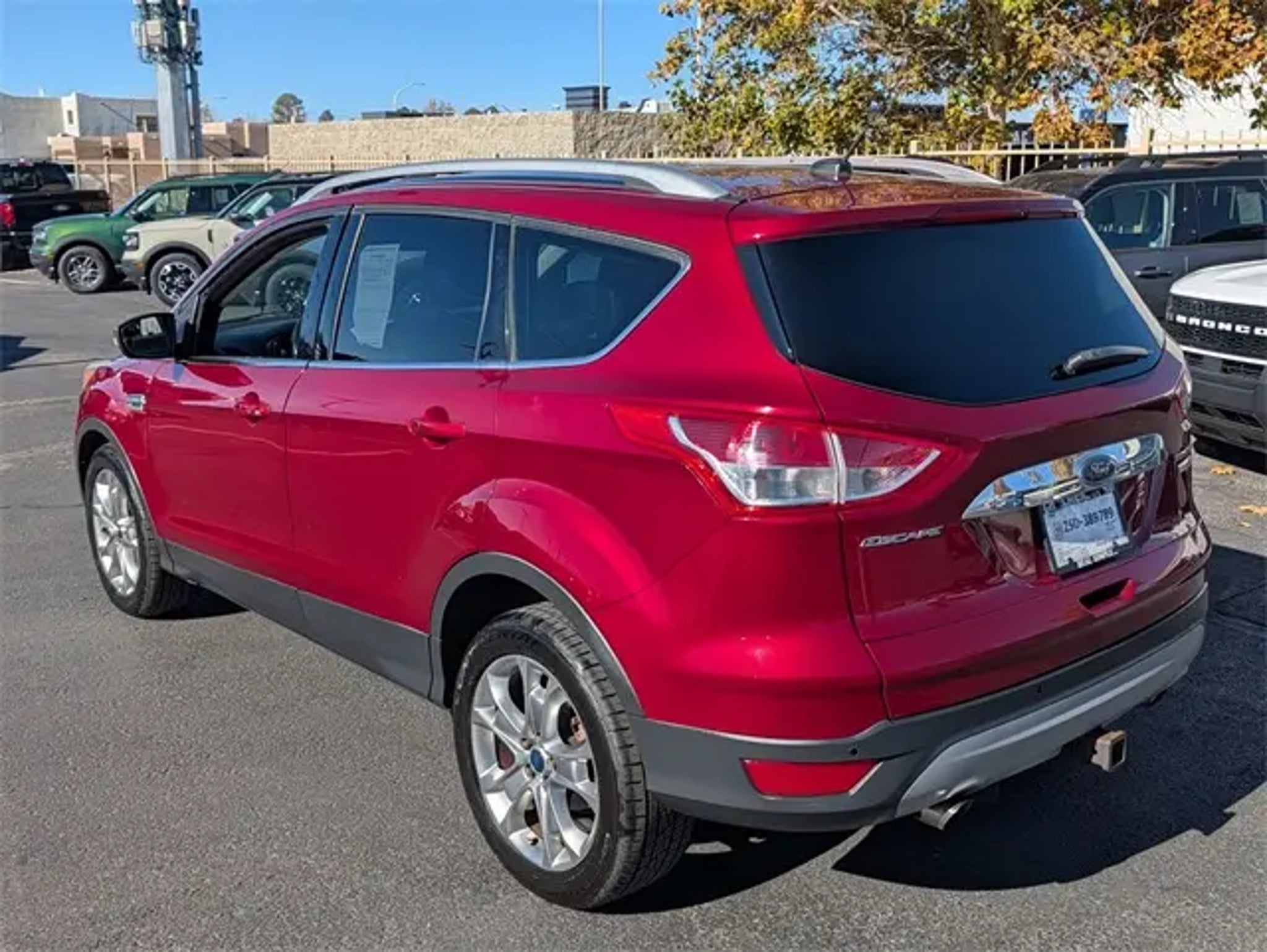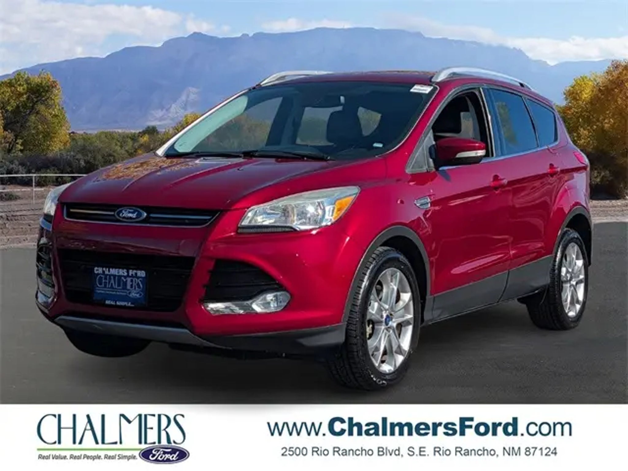 2014 Ford Escape Titanium Ruby Red Tinted Clearcoat Clean CARFAX. FWD 6-Speed Automatic EcoBoost 2.0L I4 GTDi DOHC Turbocharged VCT FRESH SERVICE, PASSED DEALER INSPECTION, RECENT OIL CHANGE, VEHICLE DETAIL, LEATHER, Keyless Entry, Bluetooth, Titanium!, Local Trade-in, Escape Titanium, 4D Sport Utility, EcoBoost 2.0L I4 GTDi DOHC Turbocharged VCT, 6-Speed Automatic, FWD, Ruby Red Tinted Clearcoat, Charcoal Black w/Heated Leather-Trimmed Buckets w/60/40 Rear Seat, Equipment Group 400A, Navigation System. Recent Arrival! 22/30 City/Highway MPG http://www.realdeal.com/gzu31 Awards: * 2014 KBB.com 10 Best SUVs Under $25,000 * 2014 KBB.com Brand Image Awards Located in Rio Rancho New Mexico, and also serving Farmington, Santa Fe, Las Cruces, Los Lunas, Grants, Gallup and the greater Albuquerque Area.