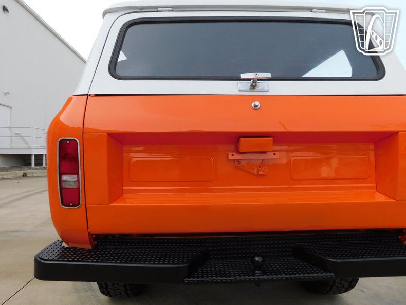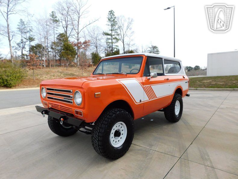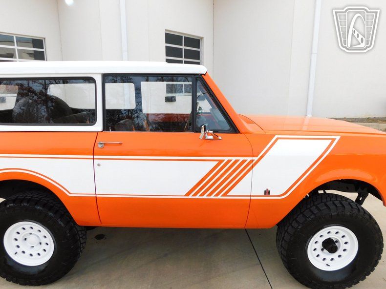 Introducing a striking 1972 International Harvester Scout II, a classic embodiment of rugged style and timeless design. This vintage vehicle boasts an eye-catching orange exterior that totally complements its adventurous spirit. The bold color is matched with a unique black and orange plaid interior, creating a distinctive look that is sure to turn heads wherever you go. Under the hood, this Scout II is powered by a robust 345 cubic inch V8 engine, providing the strength and reliability that International Harvester is known for. Coupled with a 4WD system, this vehicle is equipped to handle a variety of terrains, making it an ideal choice for those who seek adventure off the beaten path. The 3-speed manual transmission offers a hands-on driving experience, allowing you to fully engage with the road ahead. Inside, the Scout II features a practical vinyl interior, designed for durability and ease of maintenance. The inclusion of seatbelts ensures a level of safety for all passengers. For entertainment, an AM/FM radio is installed, providing a touch of nostalgia and functionality for your journeys. This classic vehicle rides on distinctive white nomad convoy rims, paired with rugged Mickey Thompson tires that enhance its off-road capabilities while maintaining a stylish appearance. The removable hardtop adds versatility, allowing you to enjoy open-air driving when desired, or secure protection from the elements when needed. Overall, this 1972 International Harvester Scout II is a remarkable blend of vintage charm and functional design, ready to deliver a memorable driving experience. Whether you're cruising through the city or exploring the great outdoors, this Scout II stands ready to accompany you on your next adventure.