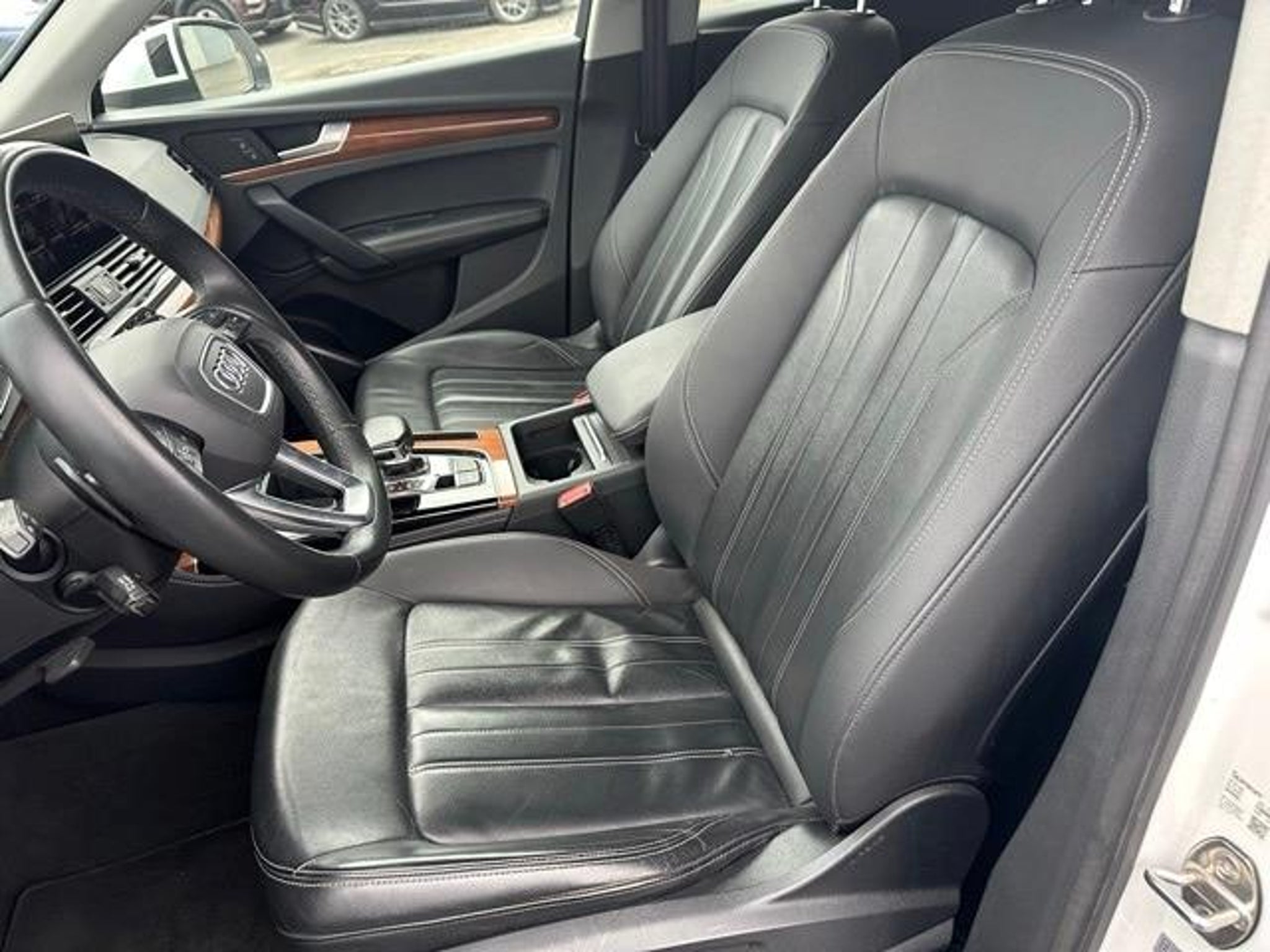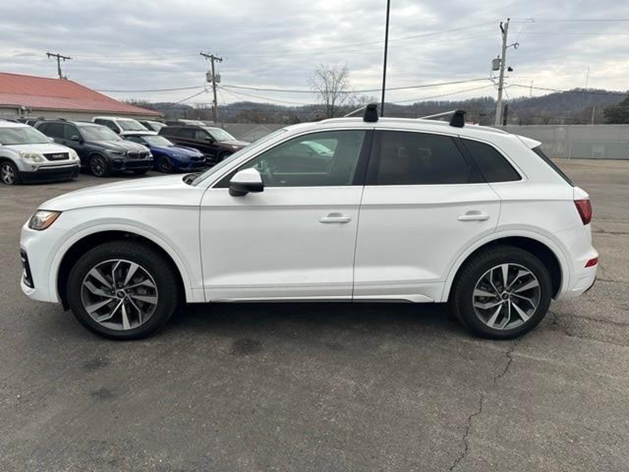 Recent Arrival! Priced below KBB Fair Purchase Price! 23/28 City/Highway MPG Clean CARFAX. Q5 45 Premium Plus quattro, 4D Sport Utility, 2.0L Turbocharged, 7-Speed Automatic S tronic, quattro, White, Black Leather. Moses Auto Group utilizes MARKET VALUE PRICING on all the vehicles in our inventory. We use real-time market data to ensure that all our customers enjoy a hassle-free buying experience and the best value possible. That, along with the largest selection of over 3500 quality cars, trucks, and SUVs in the tristate WV, KY, and OH area (as well as the surrounding cities of Charleston, Huntington, and Morgantown), has our loyal client base coming back again and again. Come to Moses today and experience the car-buying process as it should be- Driven By You. 2021 Audi Q5 45 Premium Plus quattro This 2021 Audi Q5 is well equipped with the following equipment...Q5 45 Premium Plus quattro, 4D Sport Utility, 2.0L Turbocharged, 7-Speed Automatic S tronic, quattro, White, Black Leather, 10 Speakers, 4-Wheel Disc Brakes, 5.302 Axle Ratio, ABS brakes, Air Conditioning, Alloy wheels, AM/FM radio, Auto High-beam Headlights, Auto-dimming Rear-View mirror, Automatic temperature control, Brake assist, Bumpers: body-color, Compass, Delay-off headlights, Driver door bin, Driver vanity mirror, Dual front impact airbags, Dual front side impact airbags, Electronic Stability Control, Emergency communication system: Audi connect CARE, Exterior Parking Camera Rear, Four wheel independent suspension, Front anti-roll bar, Front Bucket Seats, Front Center Armrest, Front dual zone A/C, Front fog lights, Front reading lights, Garage door transmitter: HomeLink, Genuine wood console insert, Genuine wood dashboard insert, Genuine wood door panel insert, Heated 8-Way Power Front Bucket Seats, Heated door mirrors, Heated front seats, Illuminated entry, Leather Seating Surfaces, Leather Shift Knob, Low tire pressure warning, Occupant sensing airbag, Outside temperature display, Overhead airbag, Overhead console, Panic alarm, Passenger door bin, Passenger vanity mirror, Power door mirrors, Power driver seat, Power Liftgate, Power passenger seat, Power steering, Power windows, Radio data system, Radio: Audi Sound System, Rain sensing wipers, Rear air conditioning, Rear anti-roll bar, Rear fog lights, Rear reading lights, Rear seat center armrest, Rear window defroster, Rear window wiper, Remote keyless entry, Roof rack, Security system, Speed control, Speed-sensing steering, Speed-Sensitive Wipers, Split folding rear seat, Spoile