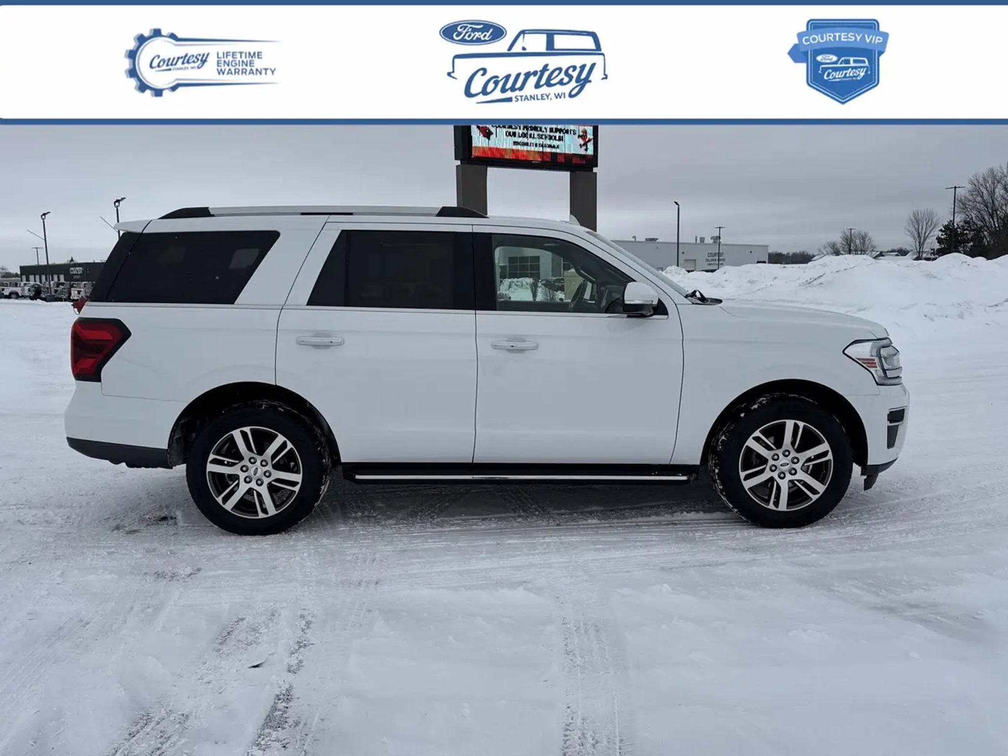 2023 Ford Expedition Limited WHITE is Certified, and we would love the opportunity to speak more about the advantages of our certification. Please reference 15100T and call us at . Why Buy From Courtesy Auto & Truck Center, Inc. VIP Pricing representspremium quality of service tothe customer. With all premium,economy, and utility brands thecustomer has a guarantee theycan lean on."¢ Custom vehicle ordering and delivery"¢ Service pick-up and drop-off"¢ Mobile service vehicle"¢ Courtesy vehicle or shuttle"¢ Rewards program for service New Vehicles (under factory warranty)Lifetime Engine Limited Warranty. 1-Year Zurich Shield Limited Warranty. Courtesy Certified (under 85,000 miles)Lifetime Engine Limited Warranty 1-Year Zurich Shield Limited Warranty Courtesy Certified (85,001-100,000 miles)6-Month/6,000 Mile Limited Warranty 1-Year Zurich Shield Limited Warranty *Some exclusions apply. See dealer for details. *Some exclusions apply.This Limited Warranty does not provide coverage if your vehicle:A. Is equipped to plow snow, whether or not the plow blade is attached to your vehicle.B. Is used for commercial hauling, delivery, or limousine service.C. Is used for hauling or towing in excess of the manufacturer's limitations and specifications.D. Is used for rental, racing, speed contest or other competiton, police car, security vehicle, emergency vehicle, shuttle service, taxi or commercial towing.E. Has been declared a total loss or has been inssued a salvaged or branded title. *needs to be less that 15 years old and under 85k miles. All internally lubricated parts contained within the engine block and cylinder head(s). Cylinder head, engine block. and rotor housings when damaged as a result of the failure of a covered internally lubricated part. Coolant, fluids, lubricants, and filters when required in connection with the repair and replacement of a covered part. Important Package Information Engine Block Heater ($100 value) Safety and Security With this system the driver's hands must remain on the wheel at all times but can be removed briefly (for a few seconds), otherwise the vehicle will prompt the driver to put their hands back on the wheel. With this system the driver's hands must remain on the wheel at all times but can be removed briefly (for a few seconds), otherwise the vehicle will prompt the driver to put their hands back on the wheel. The vehicle constantly monitors the roadway in front of the vehicle and identifies and tracks pedestrians on an interior display. If the system determines a likely impact, it will automatically take preventative steps to avoid hitting the pedestrian. Technology and Telematics SYNC 4 AppLink/Apple CarPlay/Android Auto smart device wireless mirroring Mobile devices can wirelessly connect to the internet through the vehicle's private mobile network. Our Dealership We look forward to doing business with you! Give us a call at and schedule a test drive. We are located at 409 Junction Avenue Stanley, WI 54768.