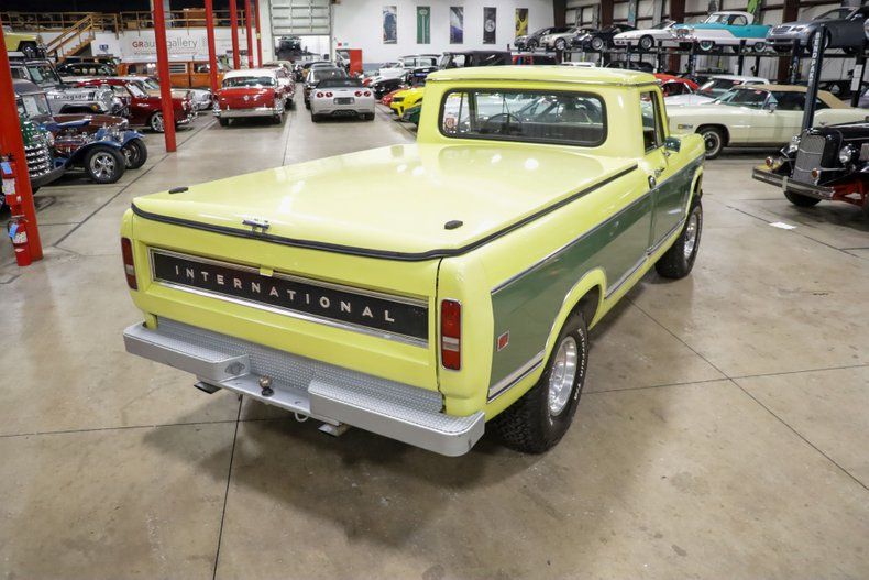 The exterior is finished in a striking Canary Yellow, complemented by subtle Willow Green accents, making it a standout on the road or trail. This unique color combination enhances the truck's vintage appeal while paying homage to the bold styling of the era. The body is straight and solid, with clean lines that reflect the craftsmanship of International Harvester's design philosophy.