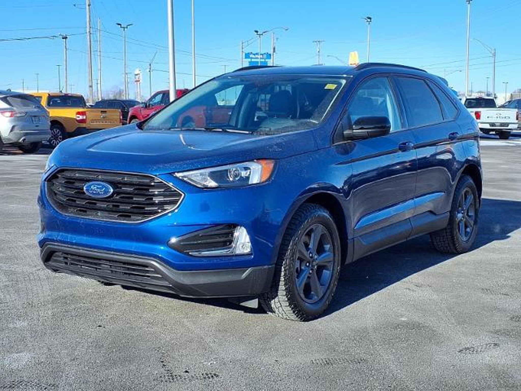 This vehicle is a 2024 Ford Edge SEL Crossover all wheel drive with low mileage of 18,960 miles. It has an atlas blue exterior and an ebony interior, offering a luxurious feel. It has a 2.0 liter 4 cylinder engine with turbocharged capabilities, providing an impressive 21 mpg in the city and 28 mpg on the highway. The vehicle also has an impressive crash test rating of 5 out of 5 stars, making it a safe and reliable choice for drivers. It also comes with a number of features such as touch screen display, Bluetooth audio connection, blind spot sensor, hill start assist, on demand four wheel drive, Bluetooth phone connectivity, leather seats, and more. This car has been meticulously maintained and is sure to provide many years of reliable service. Our motto - Where Friends Send Friends!!! Come visit our showroom today. We are located at 885 Hagerty Drive, Fremont, OH, 43420. Is this the car you've been looking for Contact Debby at (419) 334-9751 or by e-mail at debbyg@advantagefordlincolnsales.com.